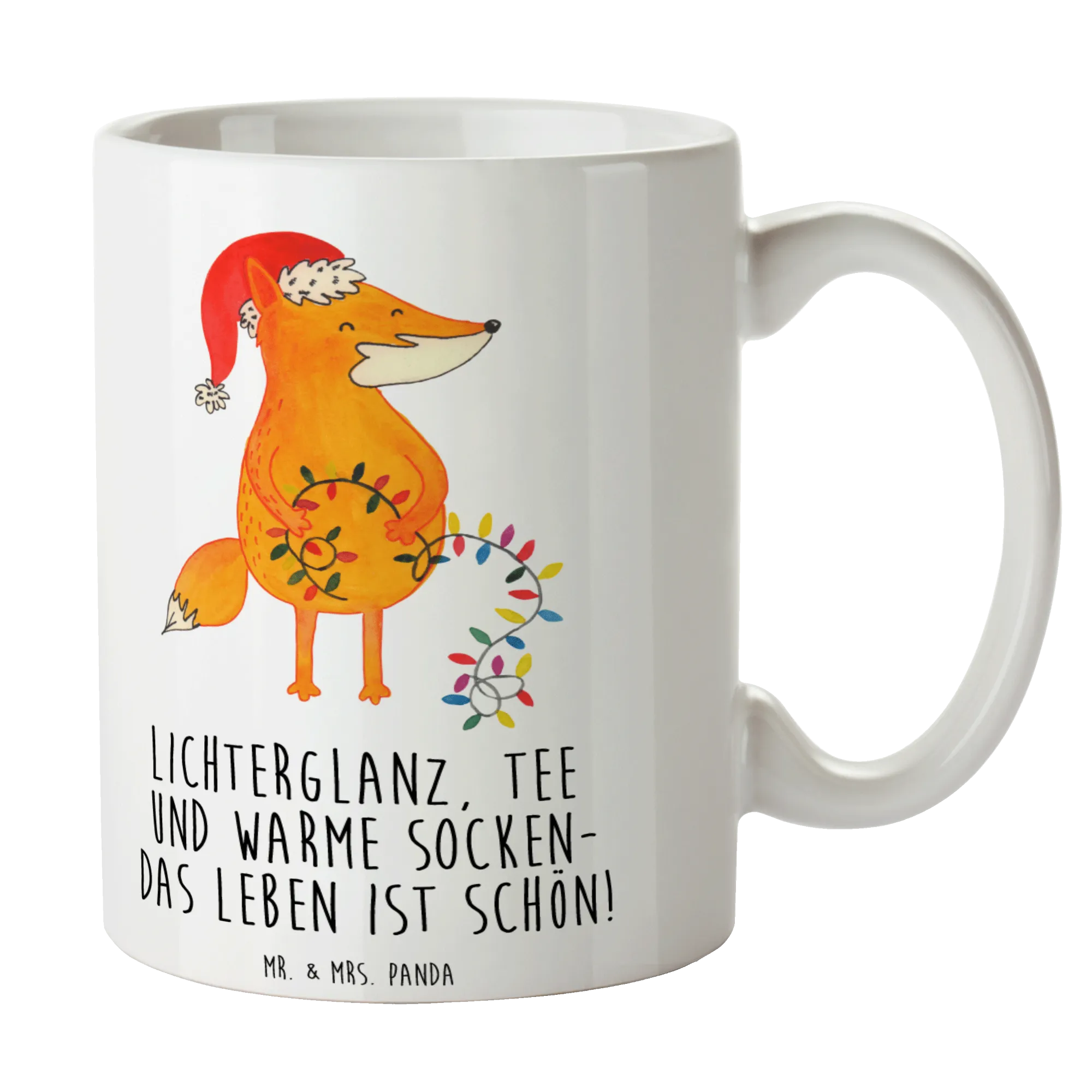 Mit einem Spruch wie 'Lichterglanz, Tee und warme Socken – das Leben ist schön!' kommt die echte Weihnachtsstimmung auf! Die Tasse Fuchs Weihnachten ist mehr als nur Geschirr: Sie ist ein Stück Behaglichkeit und sorgt dafür, dass die kalte Jahreszeit ein Stück wärmer wird.