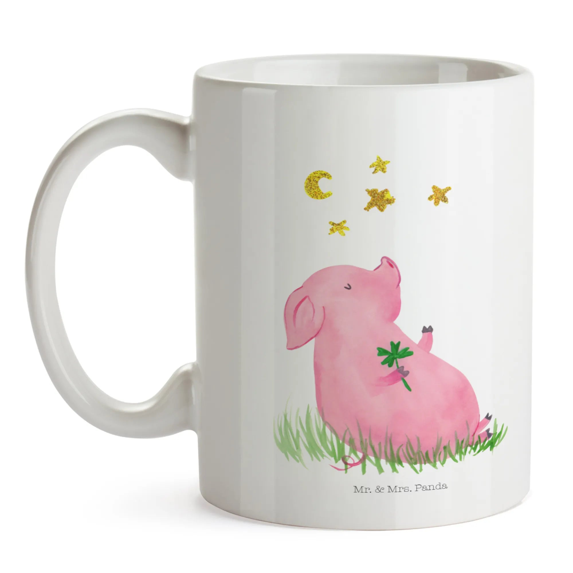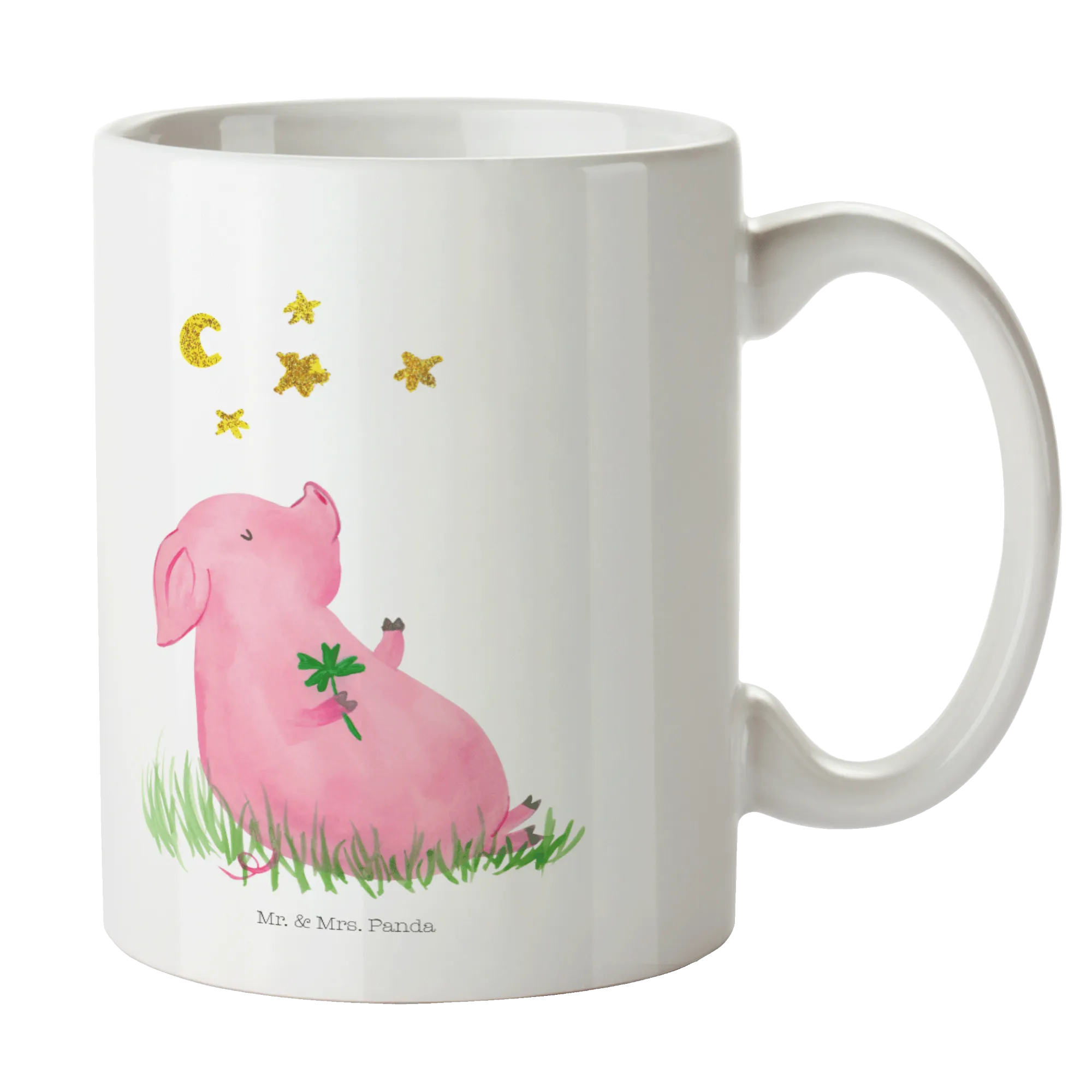 Tasse Schwein Glück - mit Spruch - Keramik - Weiß