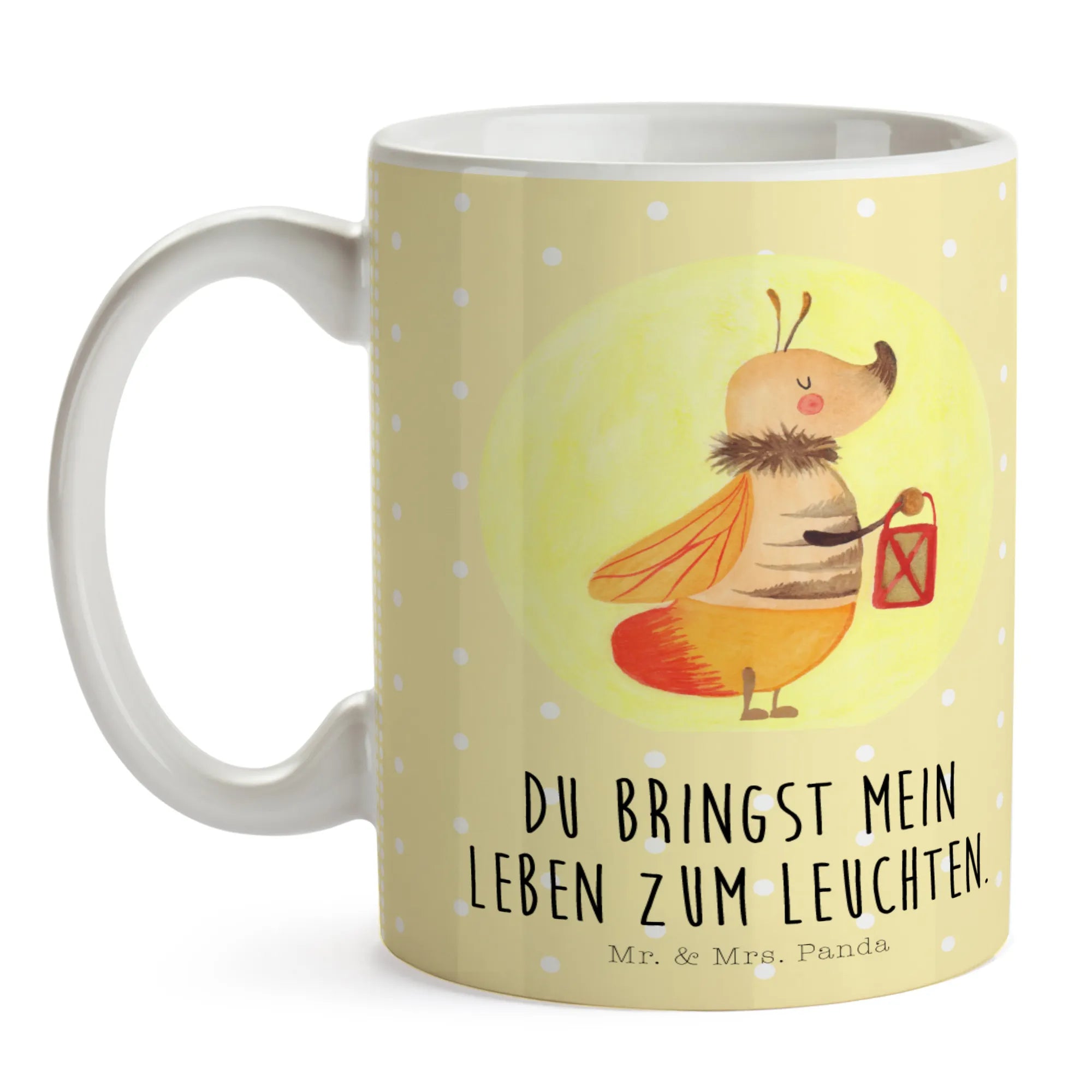 Du suchst nach dem perfekten Geschenk für deinen Lieblingsmenschen? Die wunderschöne spülmaschinenfeste Keramiktasse mit dem zauberhaften Glühwürmchen-Motiv aus der Small World Kollektion von Mr. & Mrs. Panda ist genau das Richtige! Diese Tasse bringt nicht nur Freude, sondern auch eine Portion gute Laune in den Alltag. Das niedliche Glühwürmchen, das mit seiner Laterne für ein magisches Licht sorgt, ist ein emotionales Symbol für Liebe und Hoffnung. Egal ob als Geschenke zur Verlobung, zum Jahrestag oder einfach nur so – mit dem Spruch "Du bringst mein Leben zum Leuchten" wird sie zum absoluten Liebesbeweis.
