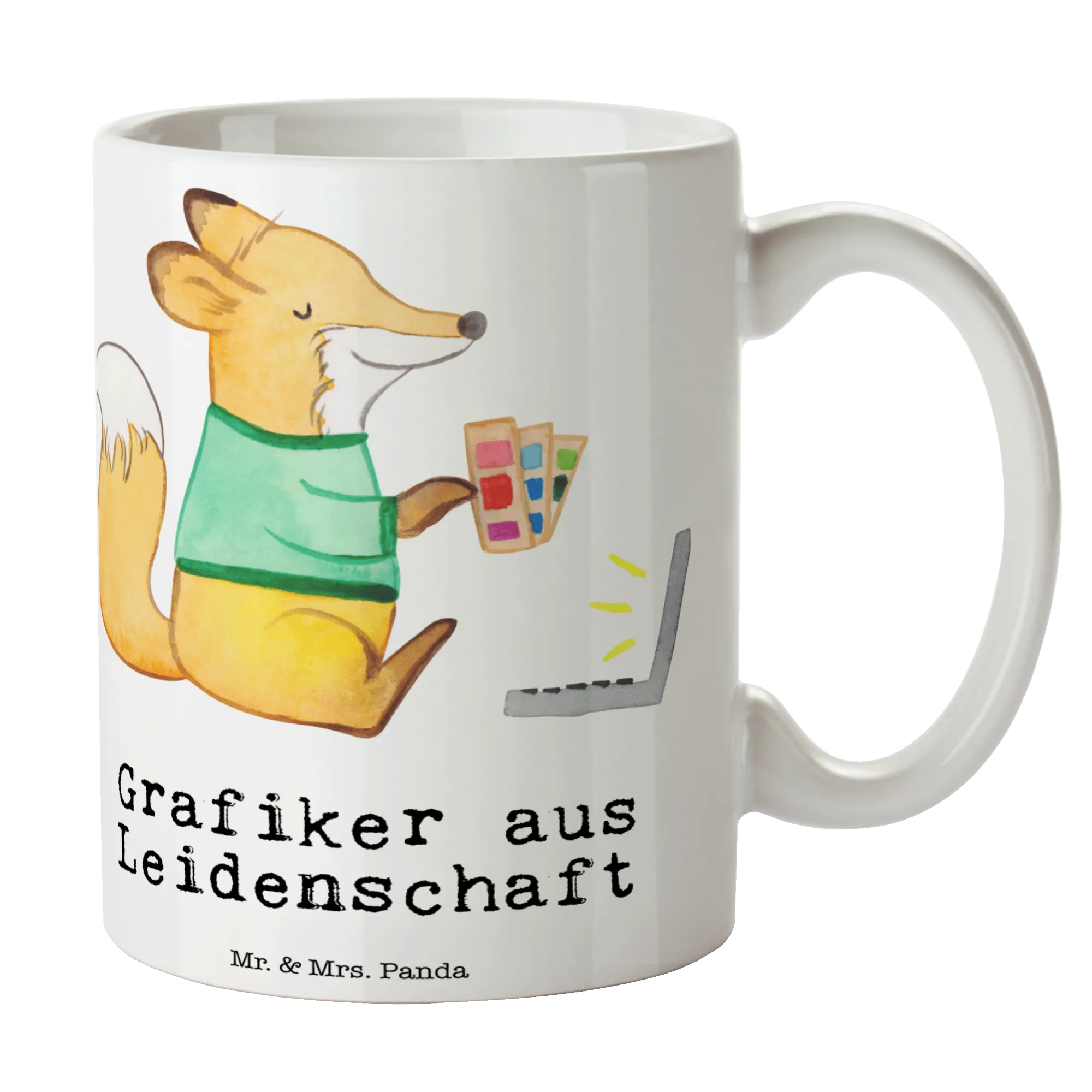 Grafiker aus Leidenschaft – Süßer Fuchs mit Farbpalette und Laptop für kreative Köpfe