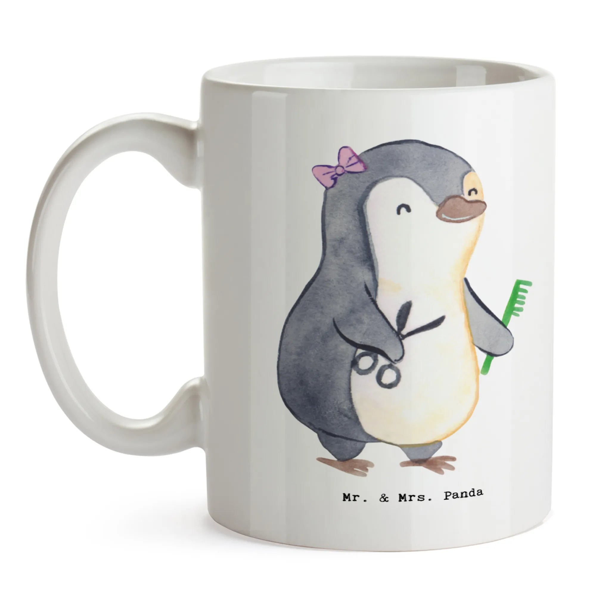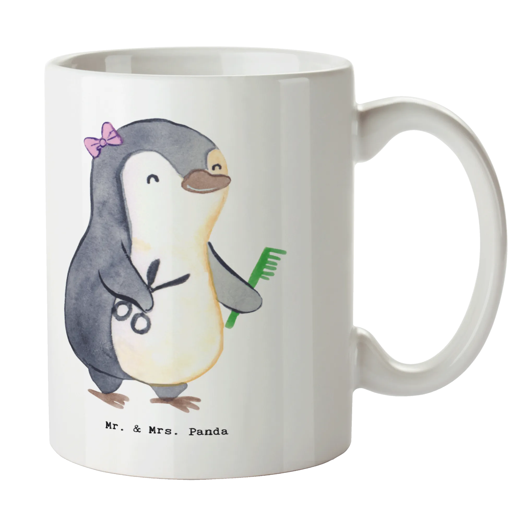 Bist du auf der Suche nach dem perfekten Geschenk für die talentierte Hairstylistin in deinem Leben? Dann habe ich genau das Richtige für dich: unsere wunderschöne Keramiktasse "Hairstylistin mit Herz" aus der einzigartigen Kollektion Berufe von Mr. & Mrs. Panda!