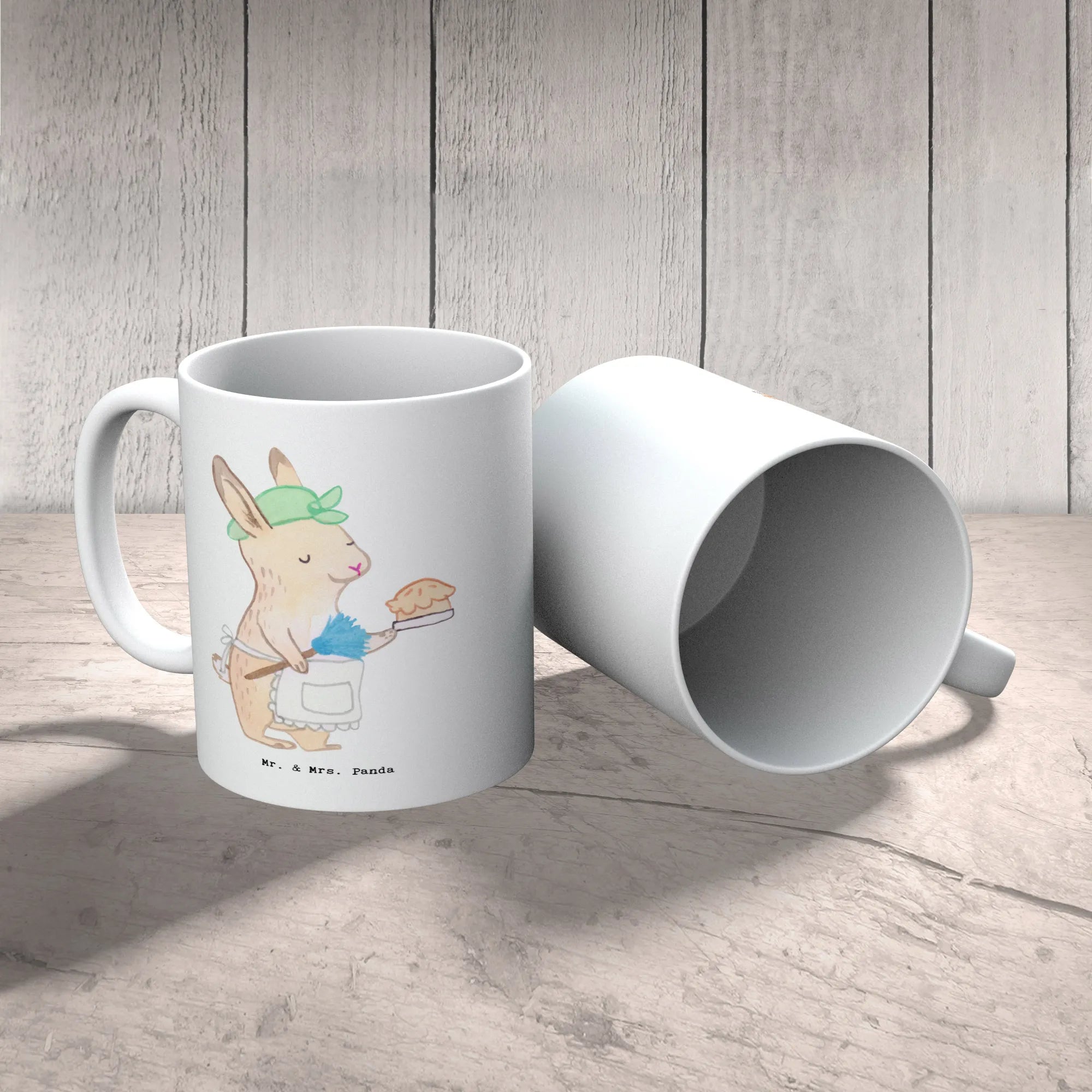 Die Tasse "Haushaltshilfe mit Herz" von Mr. & Mrs. Panda ist das perfekte Geschenk für all jene, die in unserem Alltag für Ordnung und Sauberkeit sorgen! Ob zur Verabschiedung, zum Jubiläum oder einfach nur als kleines Dankeschön – diese wunderschöne Keramiktasse bringt ein Lächeln in das Gesicht jeder Reinigungskraft. Mit einem süßen Hasenmotiv, der mit einem Staubwedel und einer Schürze ausgestattet ist, drückt diese Tasse aus, wie wichtig Haushaltshilfen für uns sind. Schließlich sind sie die heimlichen Helden, die uns eine Menge Arbeit abnehmen.