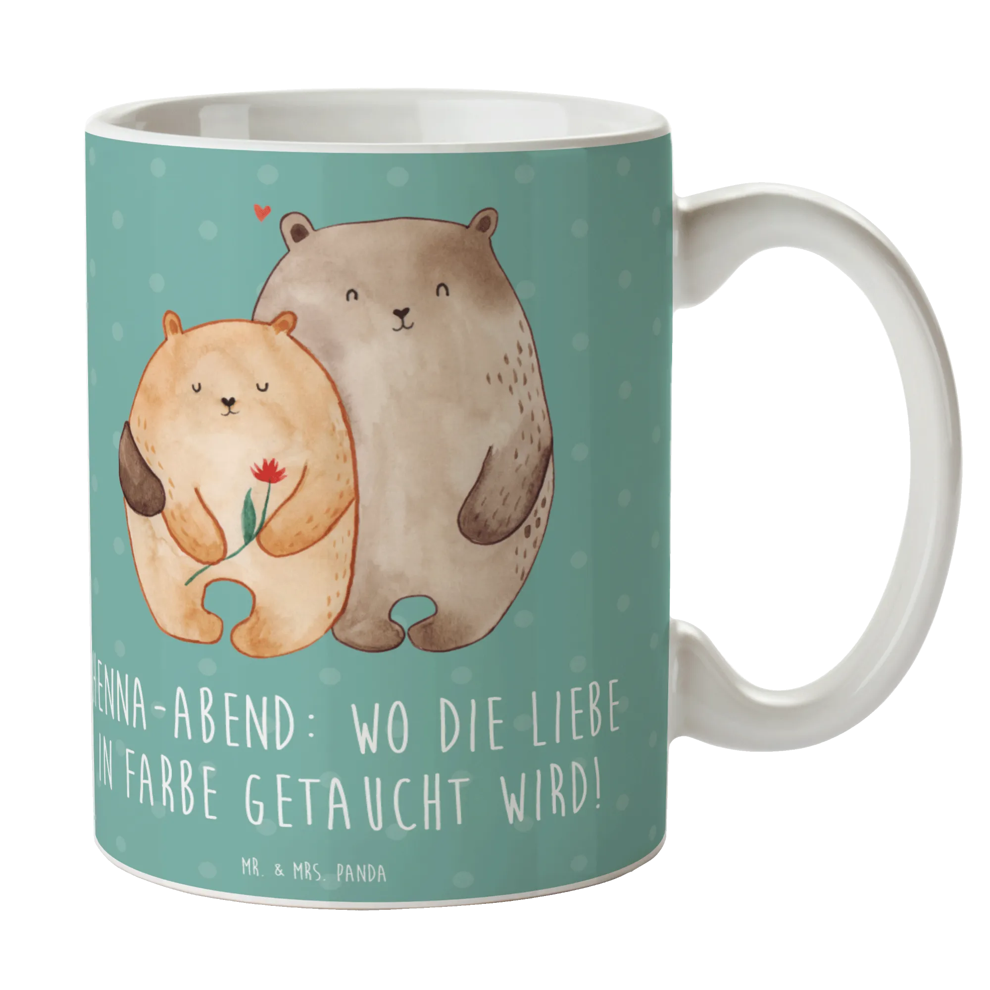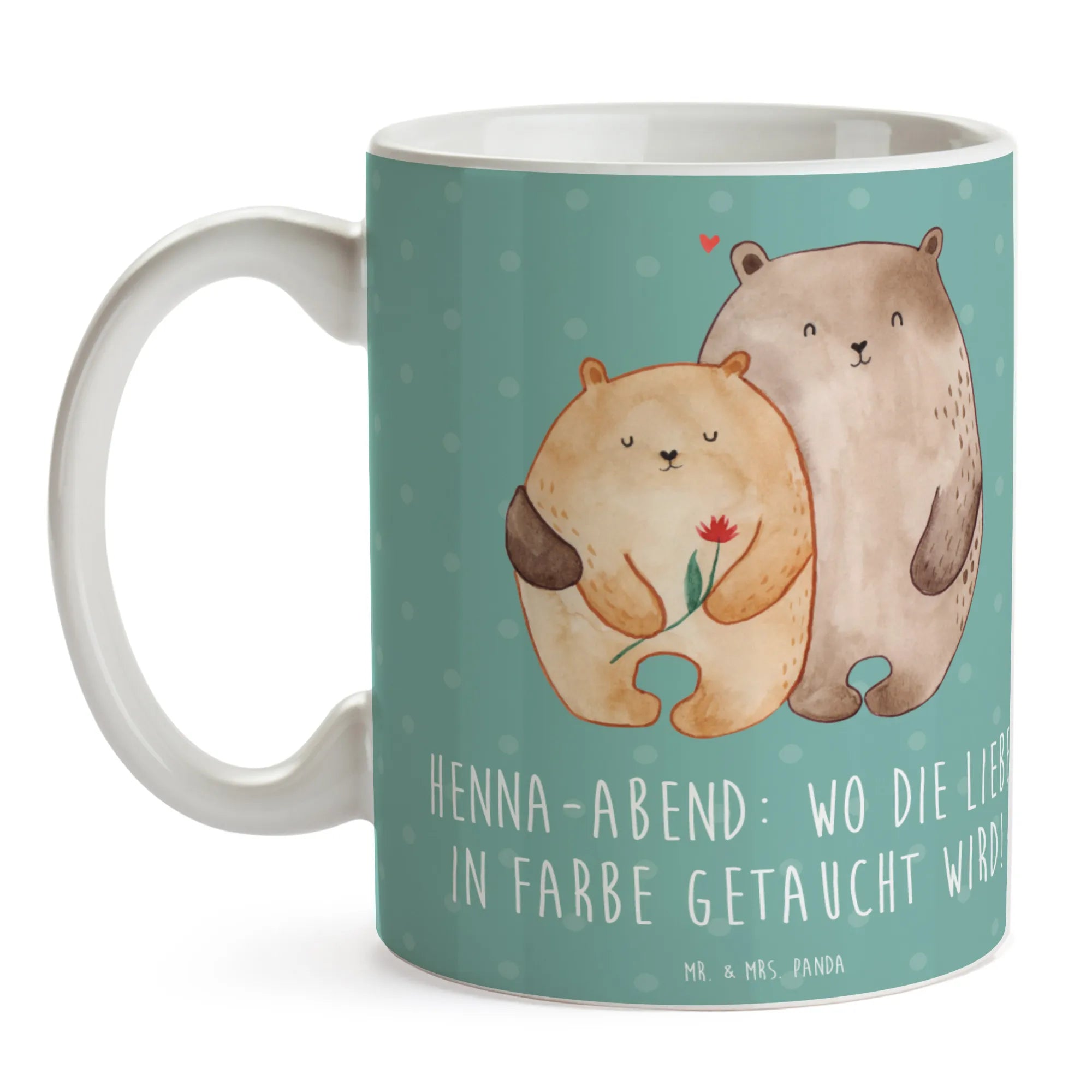 Entdecke die bezaubernde Henna-Abend Tasse von Mr. & Mrs. Panda, die nicht nur als Kaffeetasse oder Teetasse perfekt ist, sondern auch ein wunderschönes Hochzeitsgeschenk darstellt. Mit ihrem einzigartigen Design und dem liebevollen Slogan "Henna-Abend: Wo die Liebe in Farbe getaucht wird!" wird sie zu einem Highlight auf jedem Tisch und zaubert jedem ein Lächeln ins Gesicht. Diese Keramiktasse ist ideal für den romantischen Brunch nach der Trauung oder für einen gemütlichen Abend mit Freunden und Familie, die den besonderen Tag mit dir feiern.