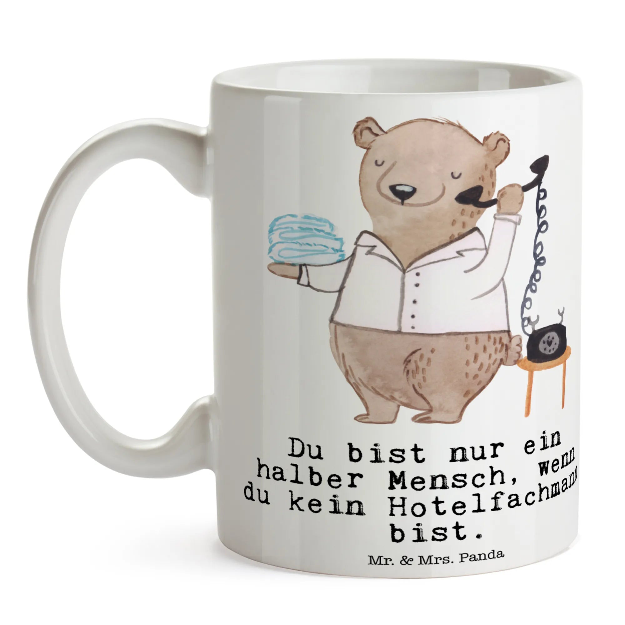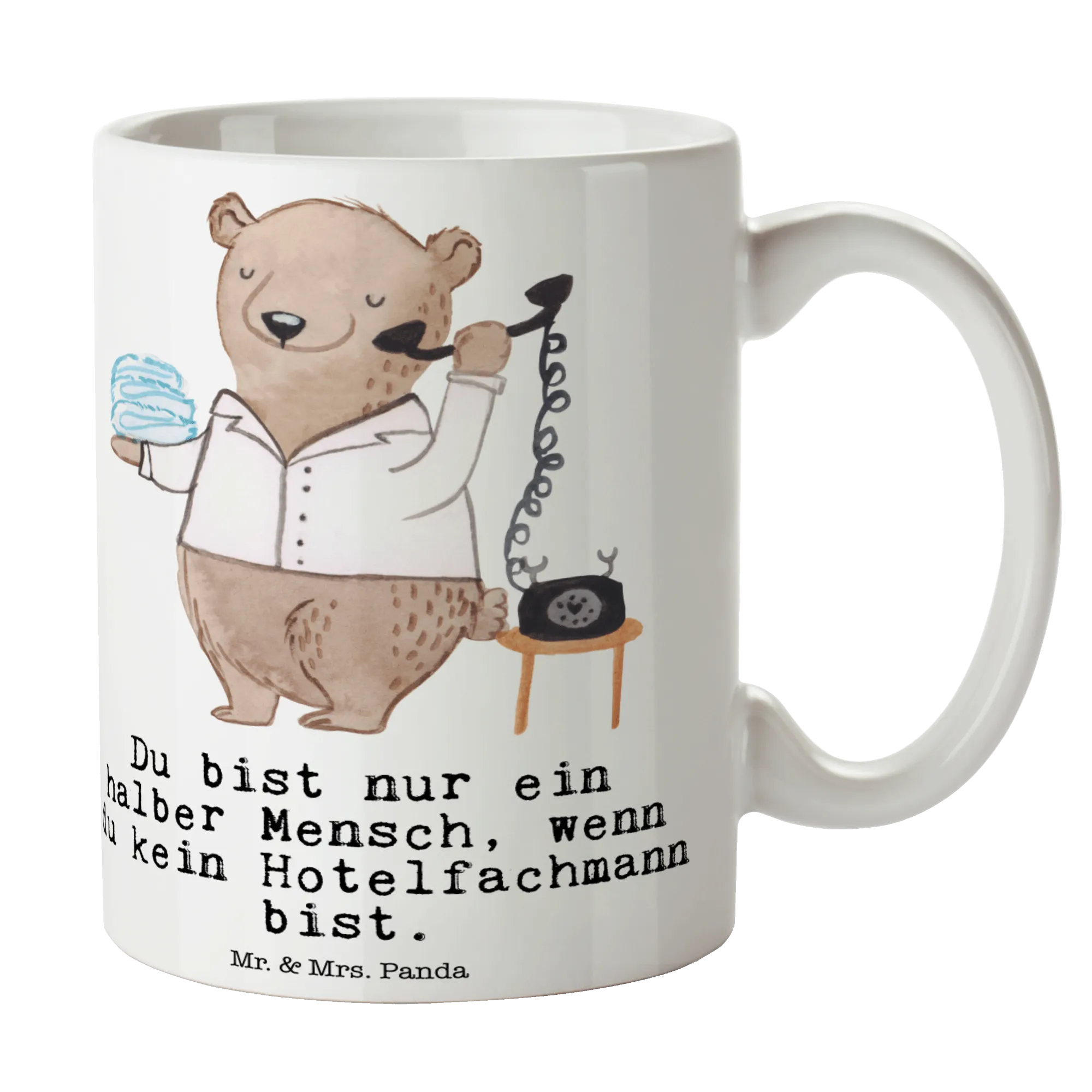 Mr. & Mrs. Panda Motiv "Hotelfachmann mit Herz" – Geschenk für Hotelkaufmann, Bär mit Telefon & Handtüchern