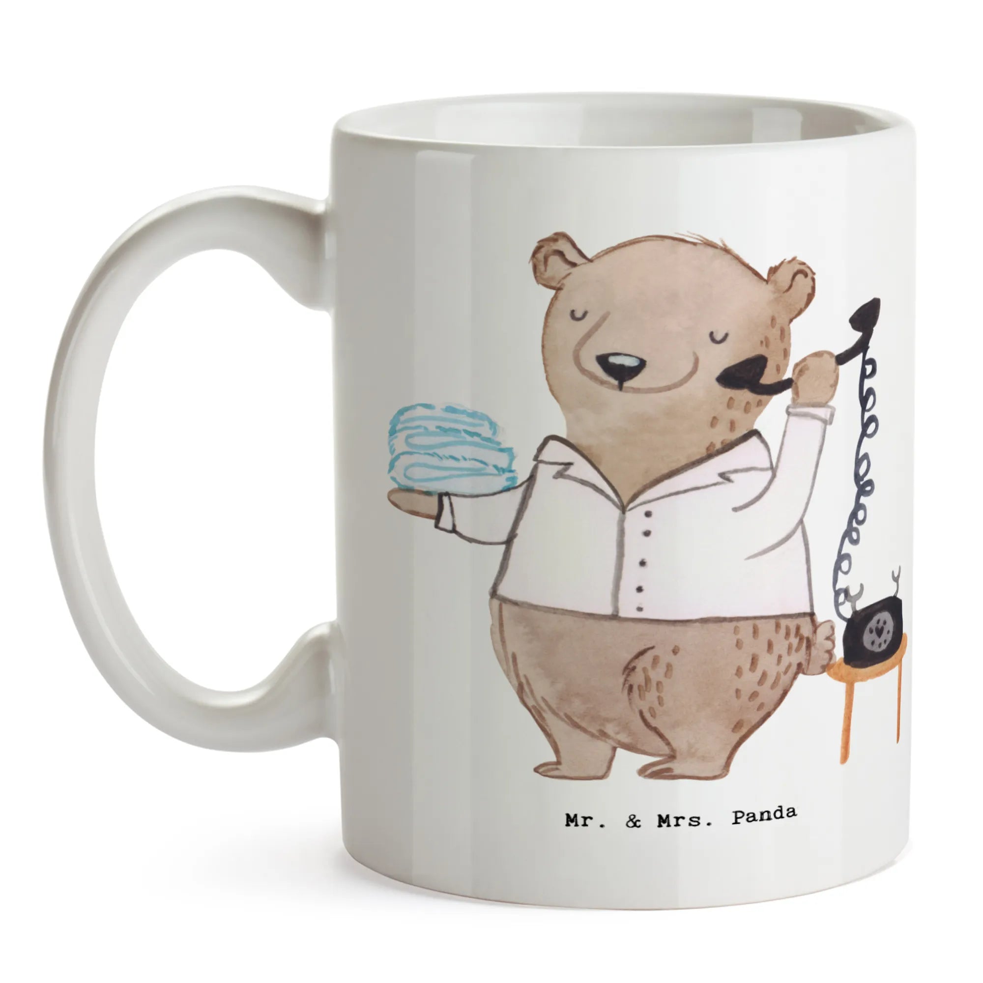 Mr. & Mrs. Panda Motiv ‚Hotelfachmann mit Herz‘ – Geschenkidee für Hotelfachmann, niedlicher Bär mit Telefon