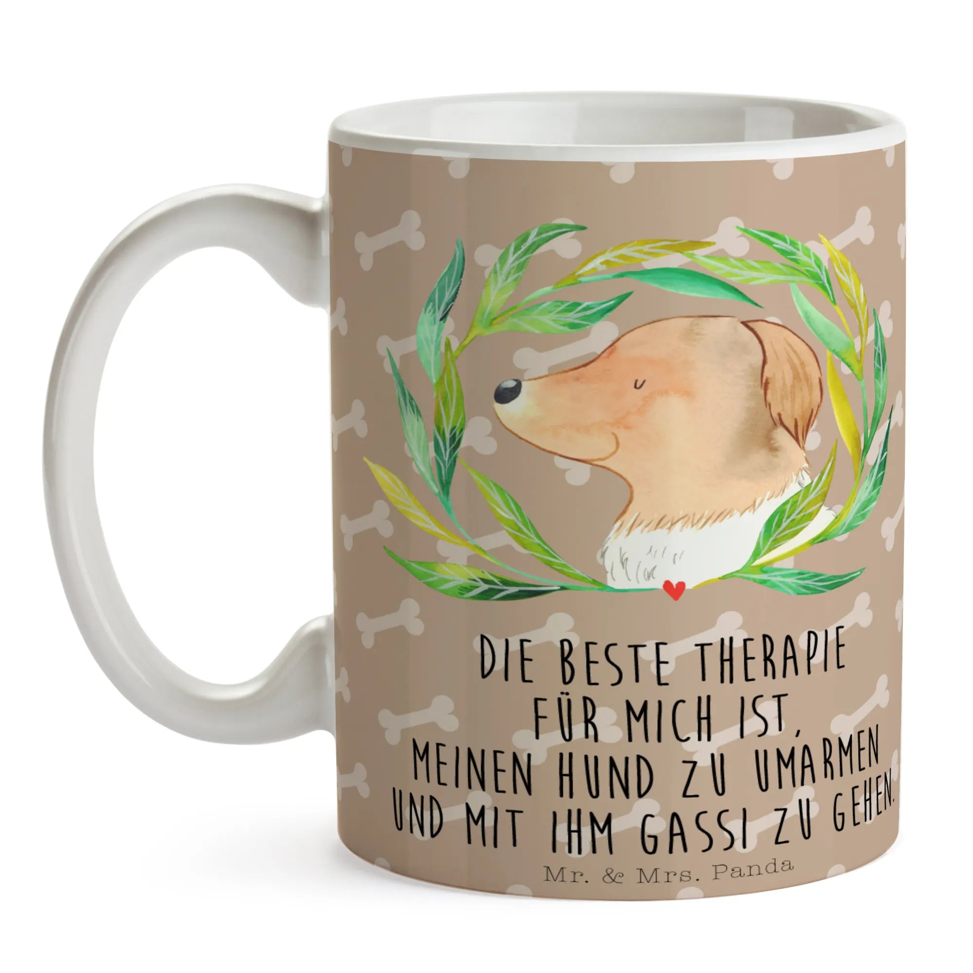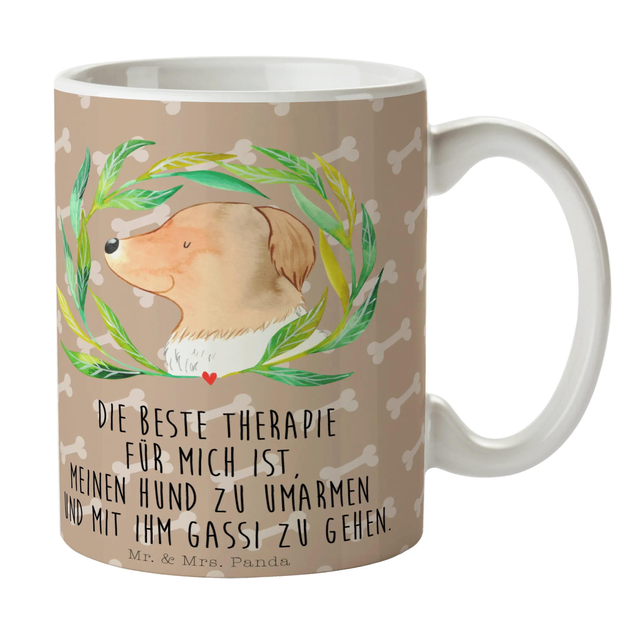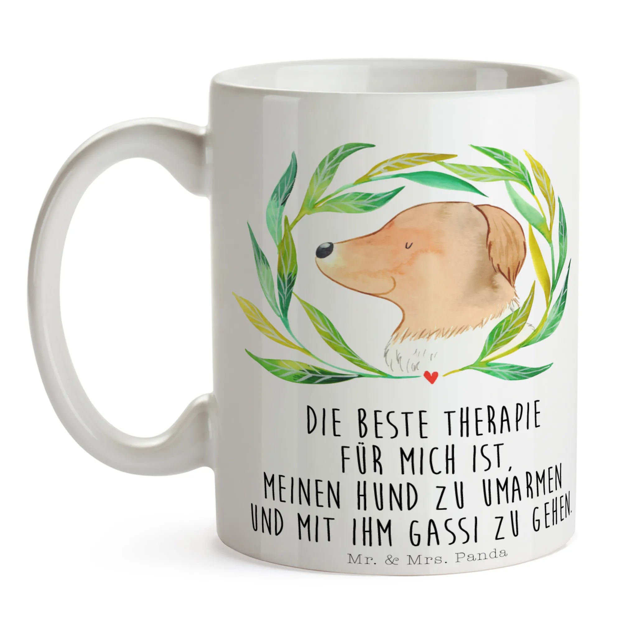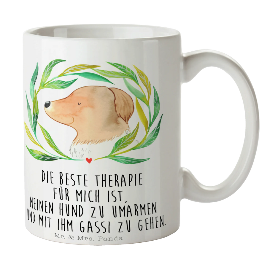 Hund Ranke – Selbsttherapie Motiv | Kleiner Hund mit Blume für Achtsamkeit von Mr. & Mrs. Panda