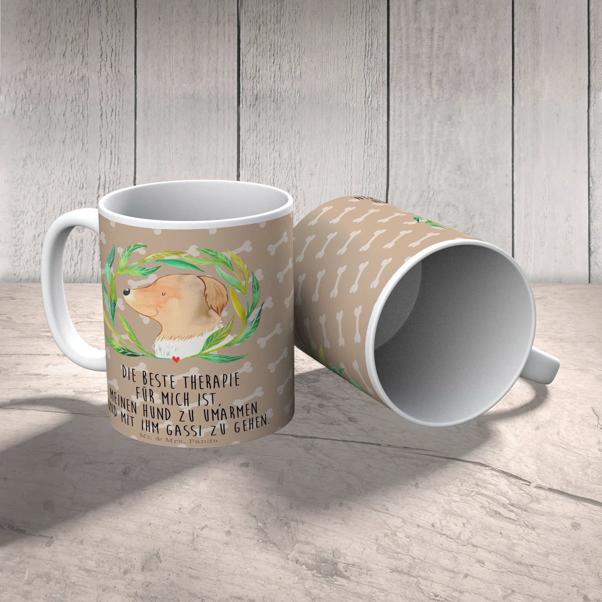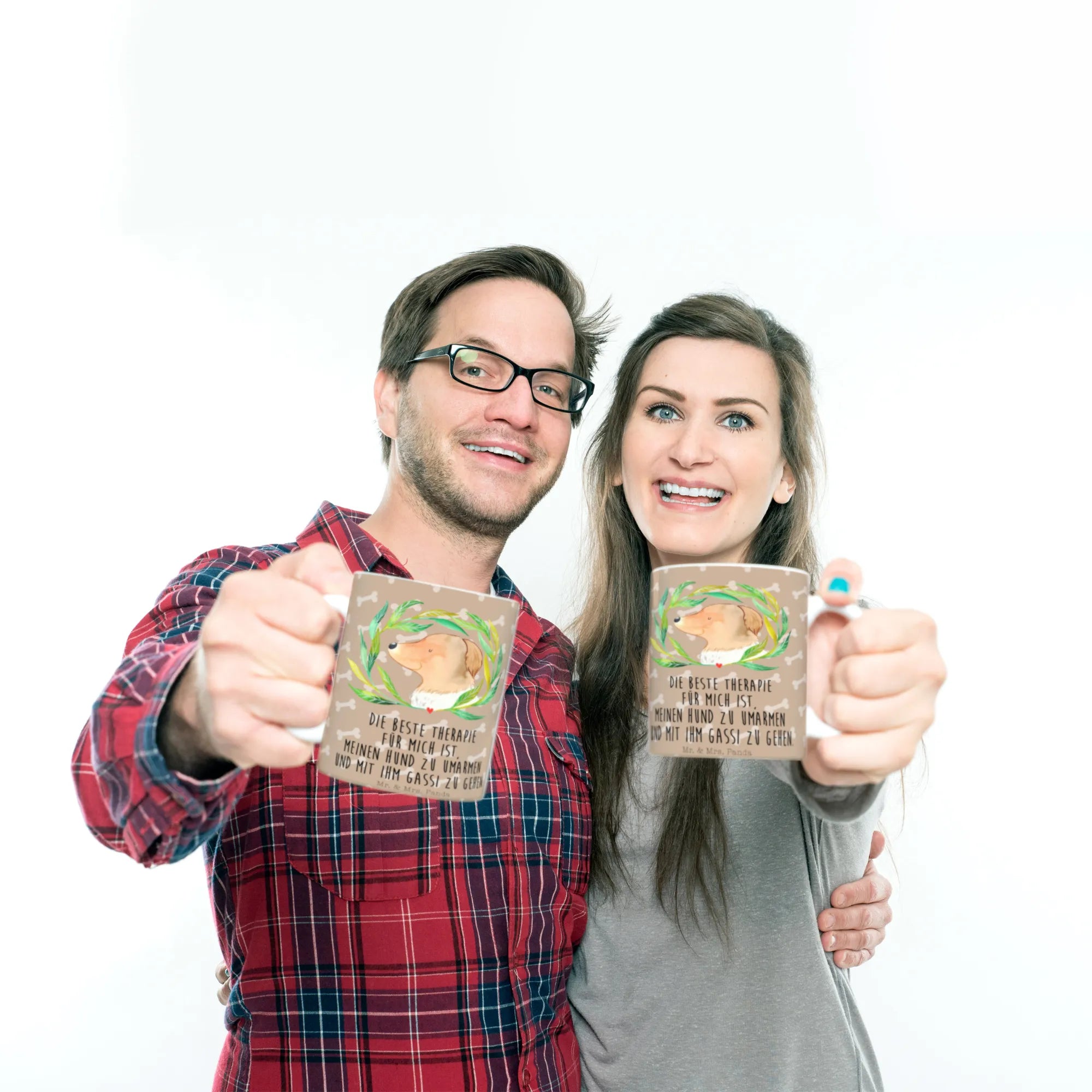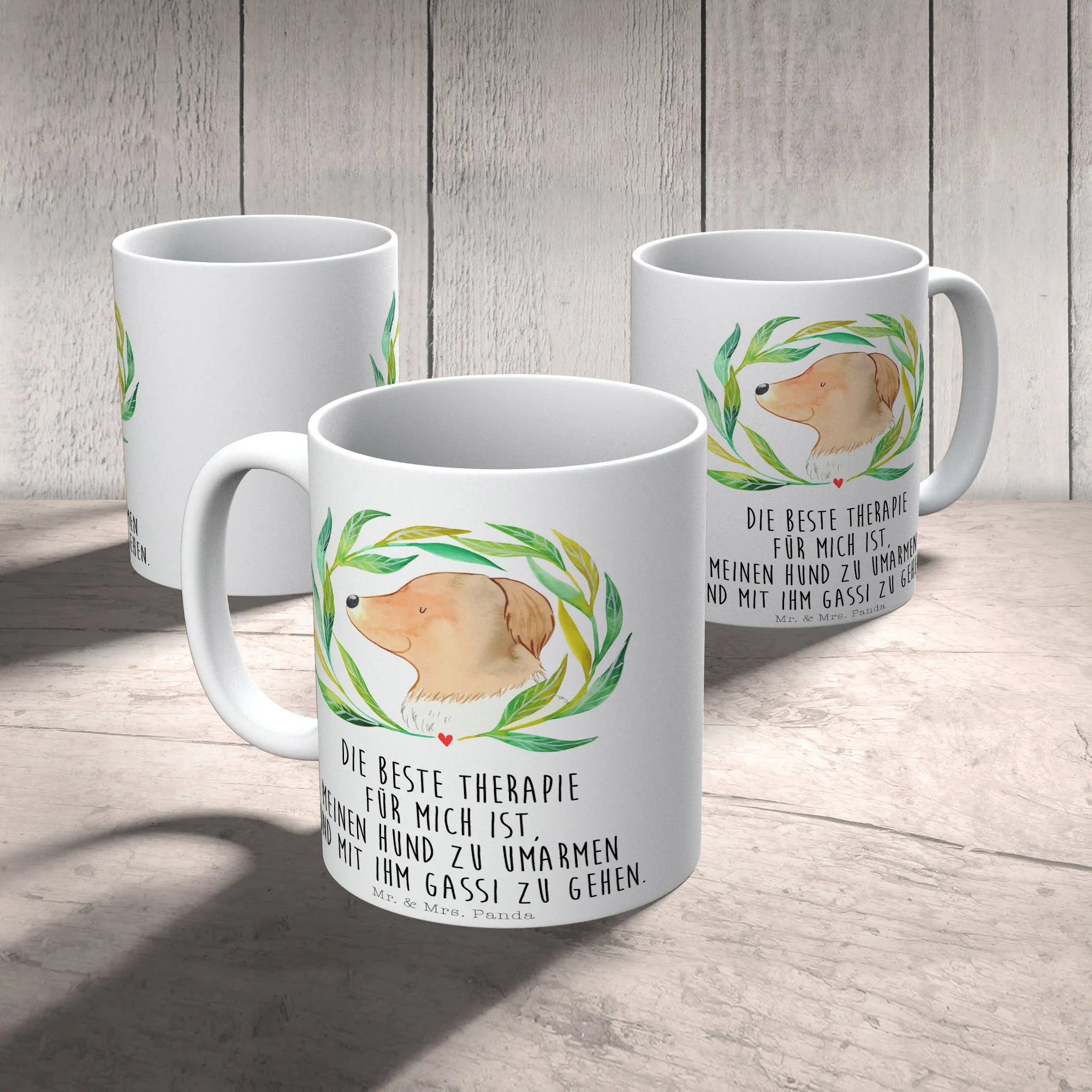 Hund Ranke – Selbsttherapie Motiv | Kleiner Hund mit Blume für Achtsamkeit von Mr. & Mrs. Panda