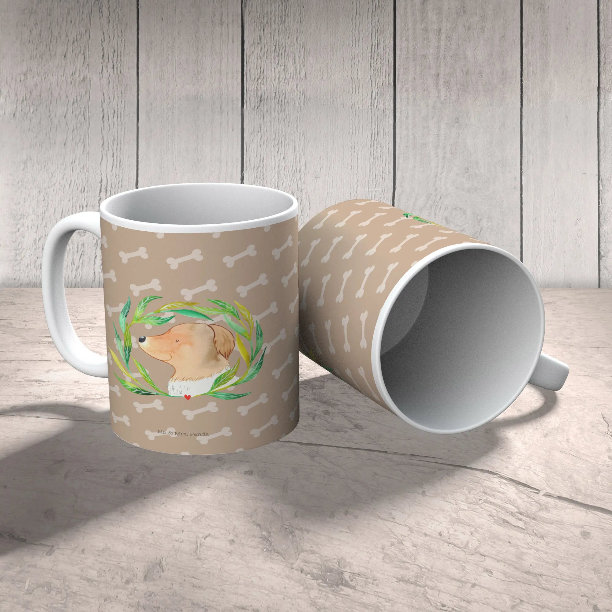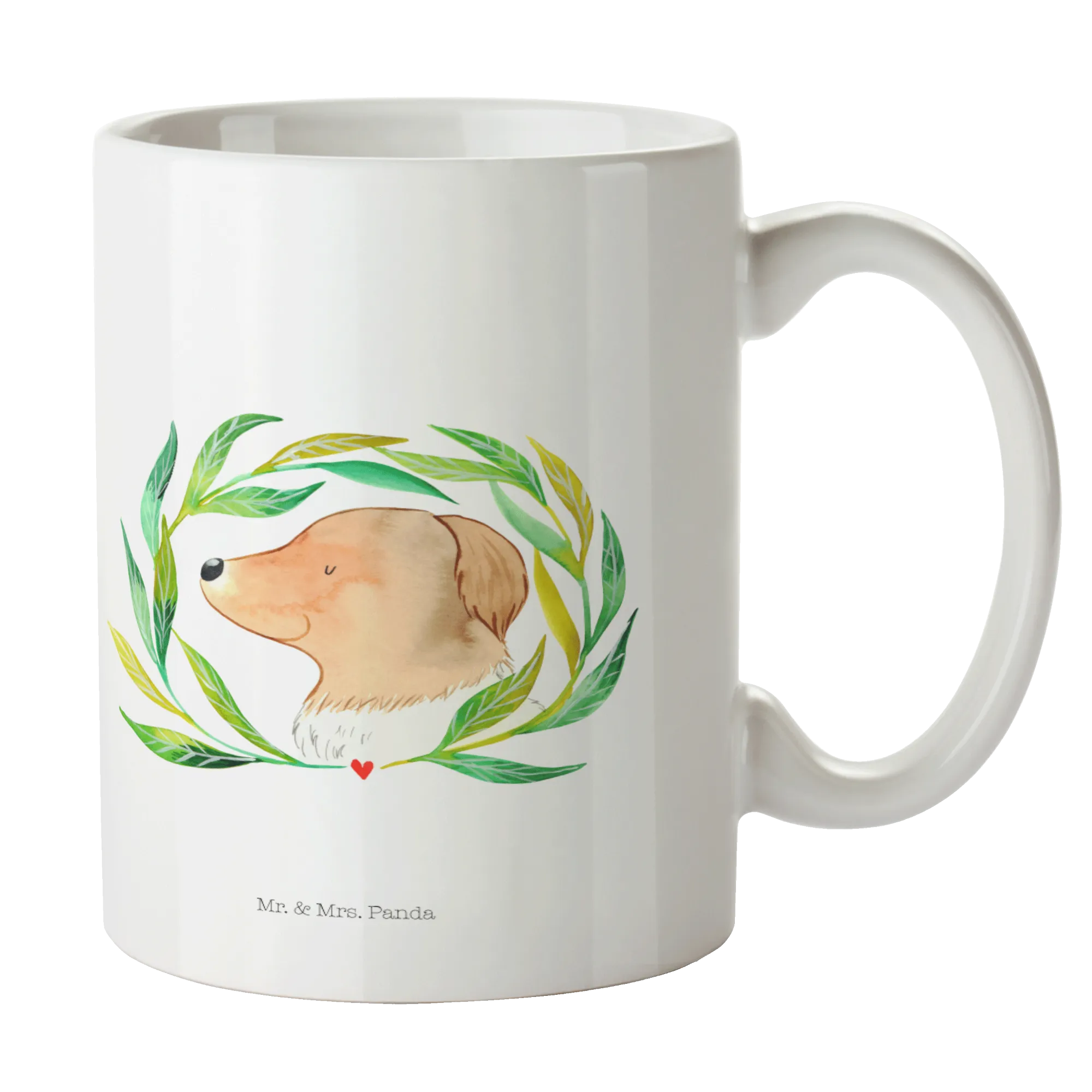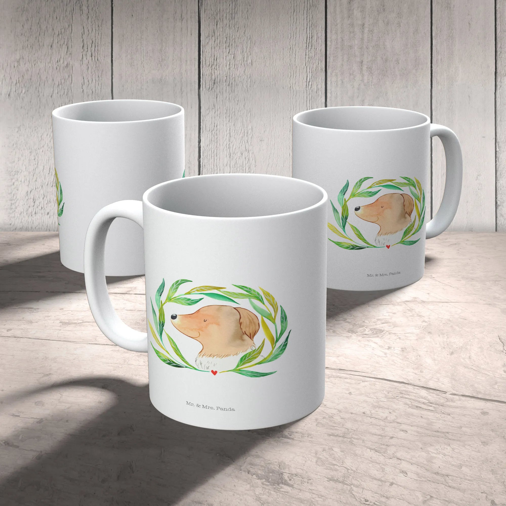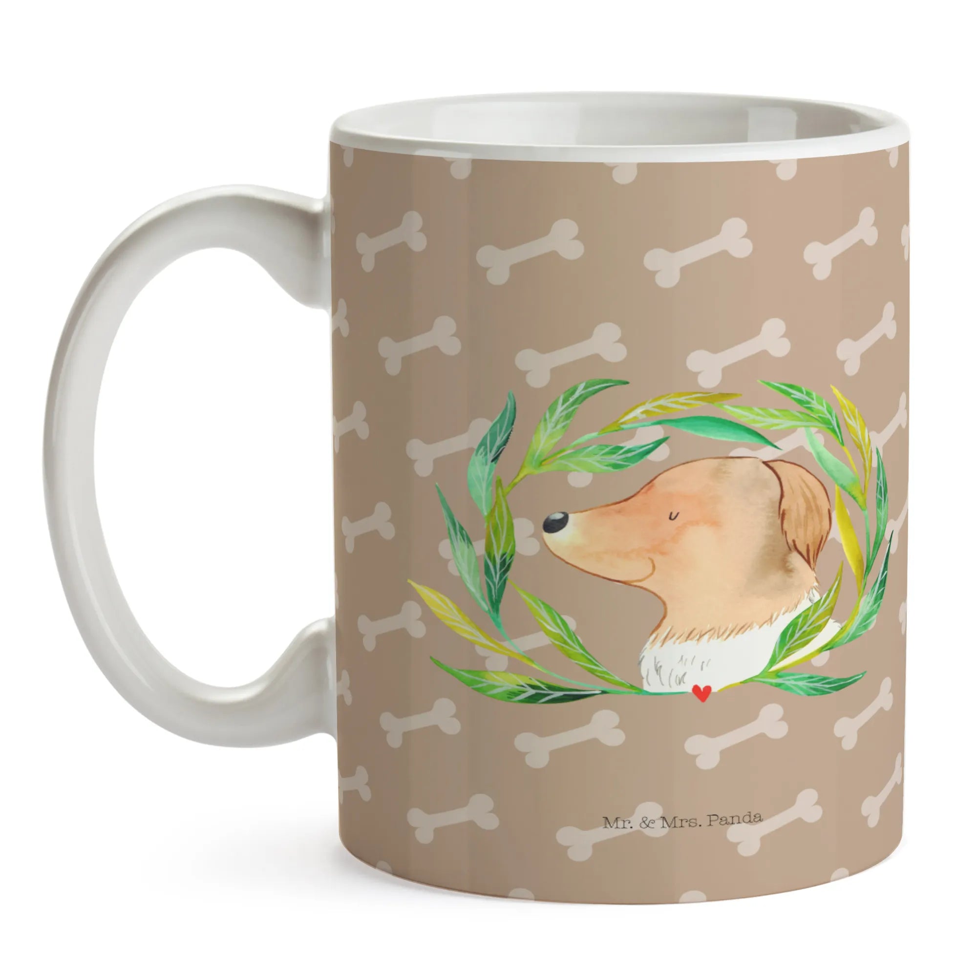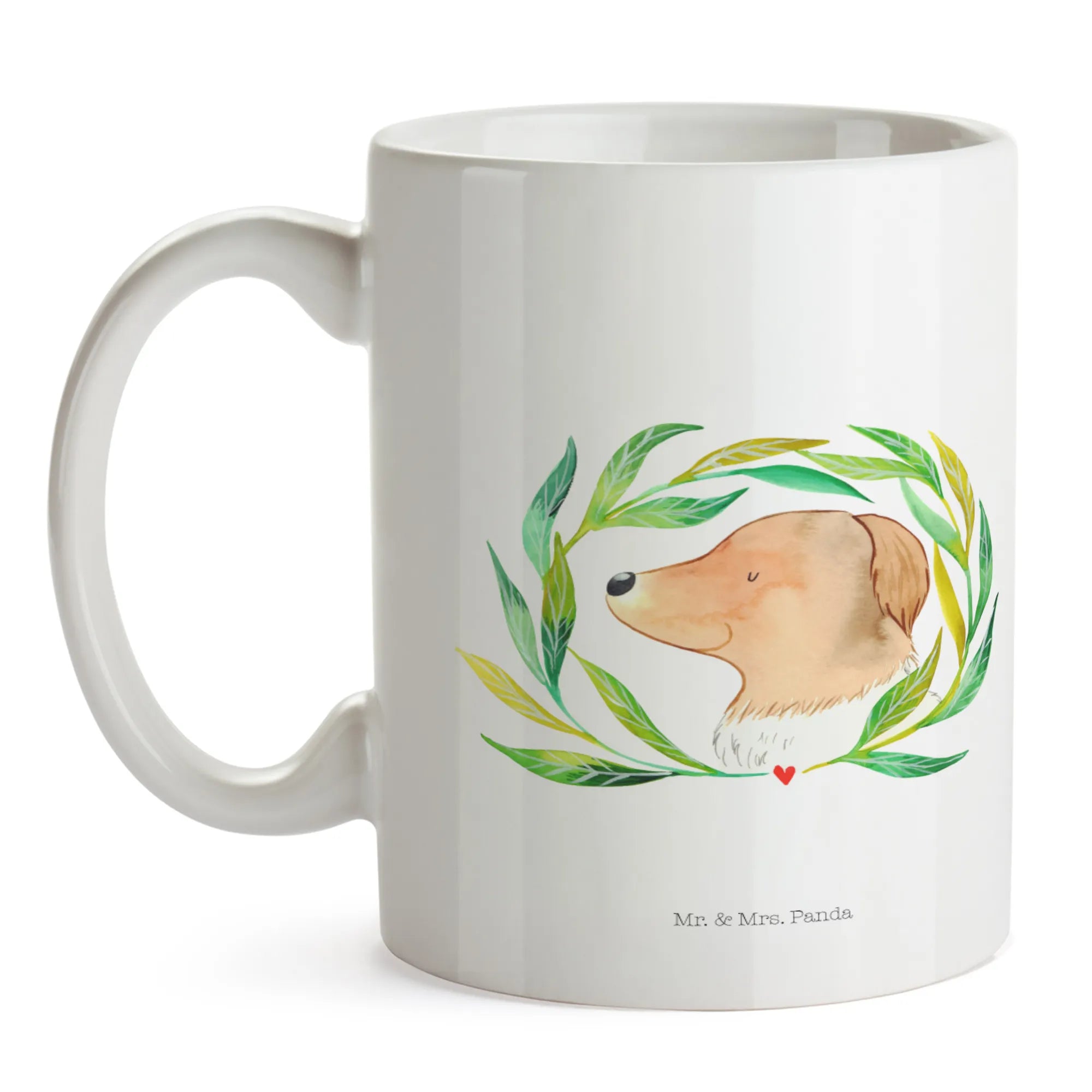Tasse Hund Blumen - mit Spruch - Keramik - Weiß