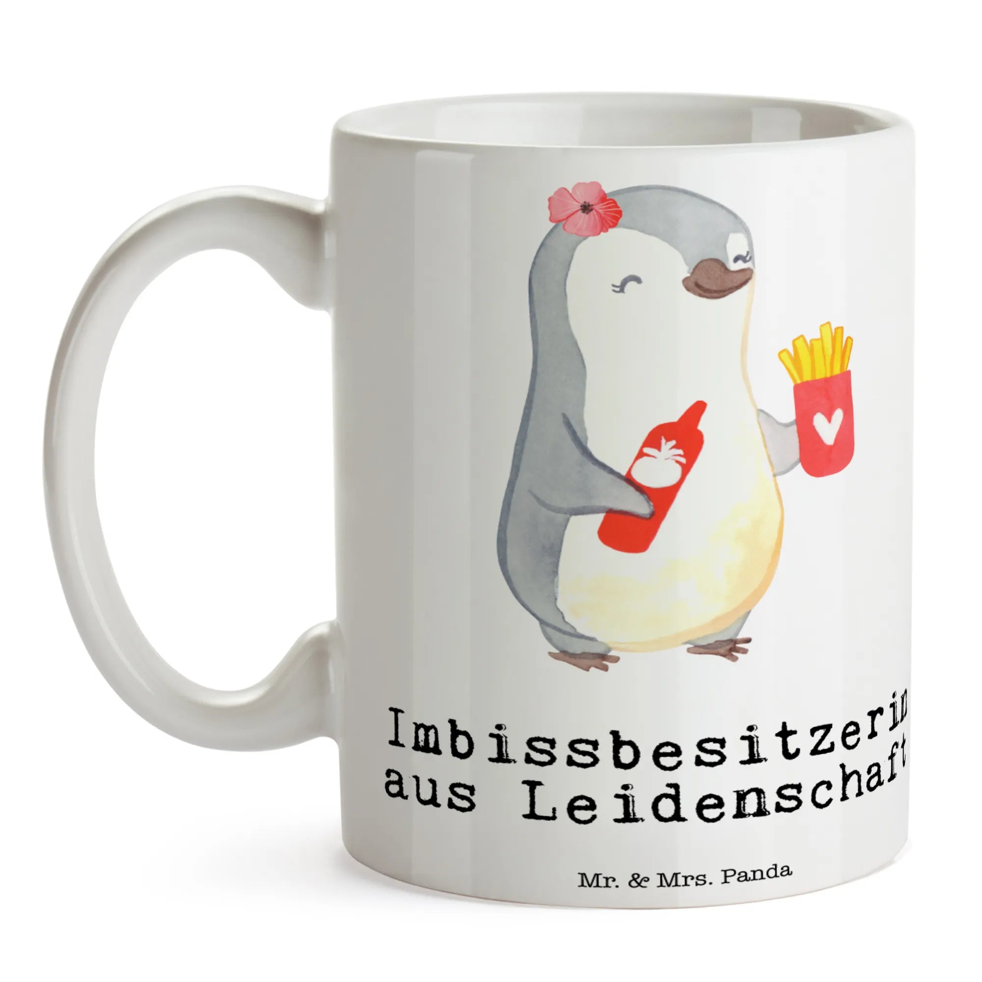 Die Tasse "Imbissbesitzerin aus Leidenschaft" von Mr. & Mrs. Panda ist das perfekte Geschenk für alle, die mit Herz und Seele in der Gastronomie tätig sind. Diese liebevoll gestaltete Keramiktasse spiegelt die Leidenschaft wider, mit der Imbissbesitzerinnen täglich ihre Gäste verwöhnen. Mit einem köstlichen Kaffee oder einem beruhigenden Tee aus dieser Tasse startest Du jeden Tag mit einem Lächeln!