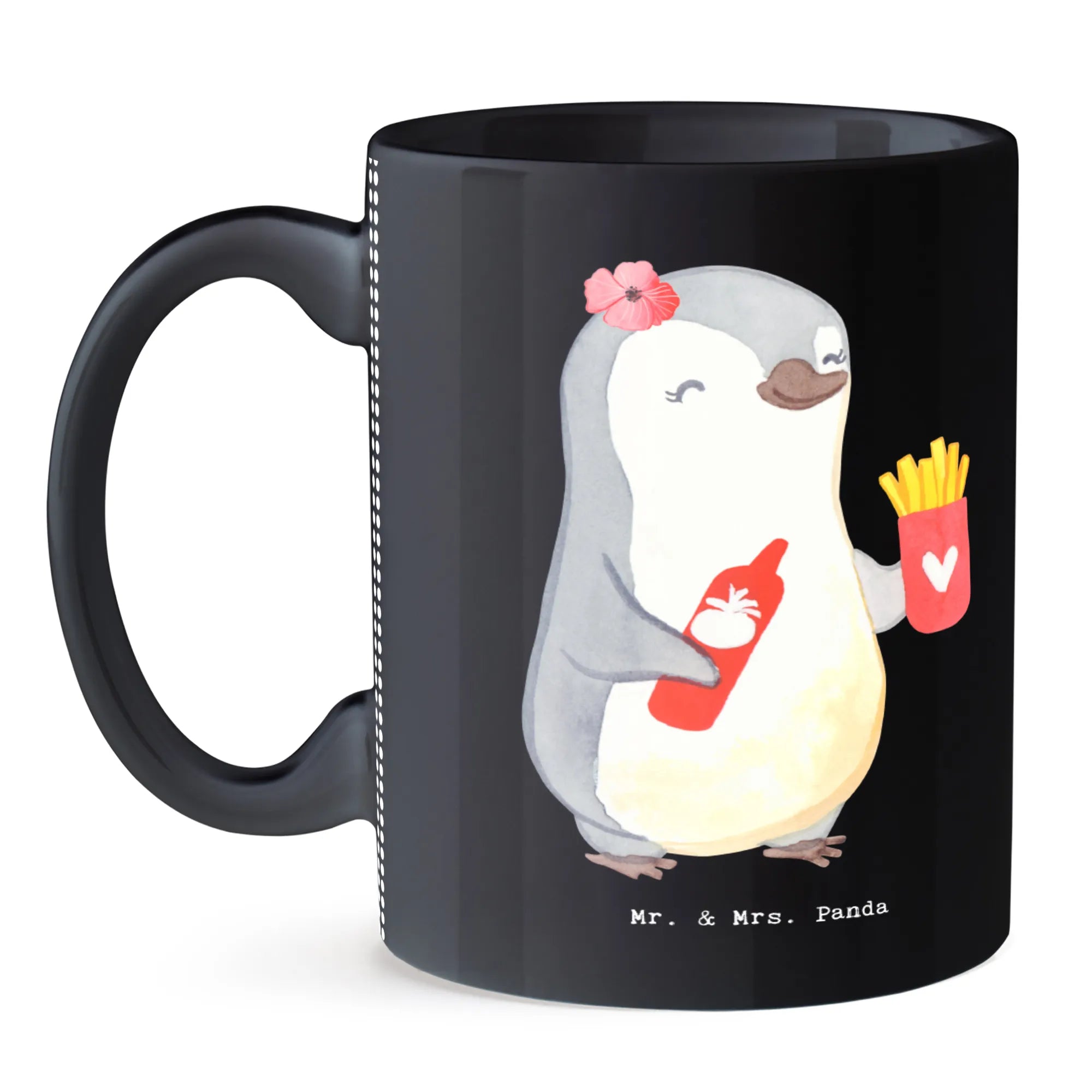 Wenn Du Deiner Lieblings-Imbissbesitzerin eine Freude machen möchtest, dann ist diese hochwertige Keramiktasse mit einem süßen, handgezeichneten Pinguin-Motiv genau das Richtige! Die Tasse hat die perfekte Größe von 325 ml und eignet sich ideal für den köstlichen Kaffee am Morgen oder den entspannenden Tee am Nachmittag.