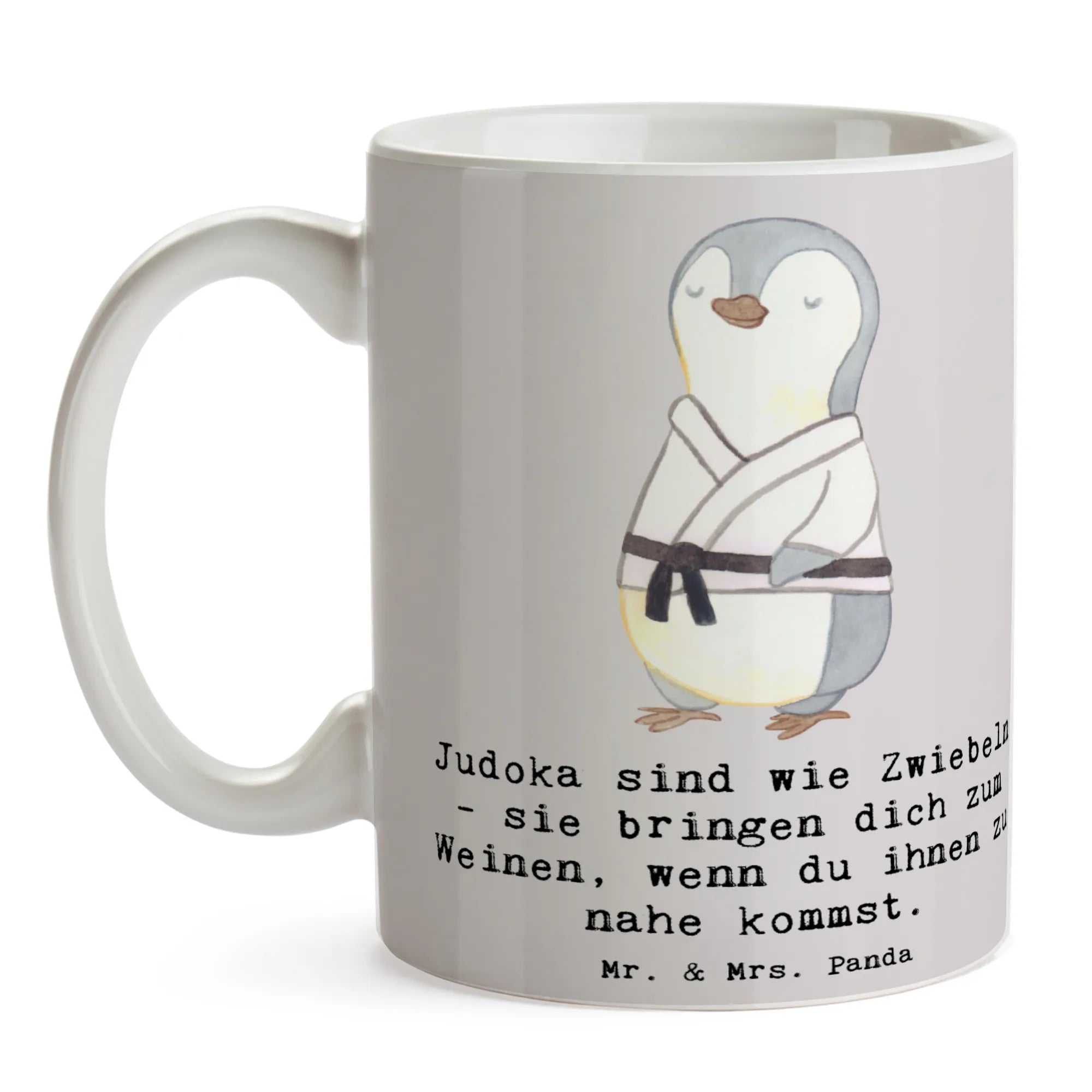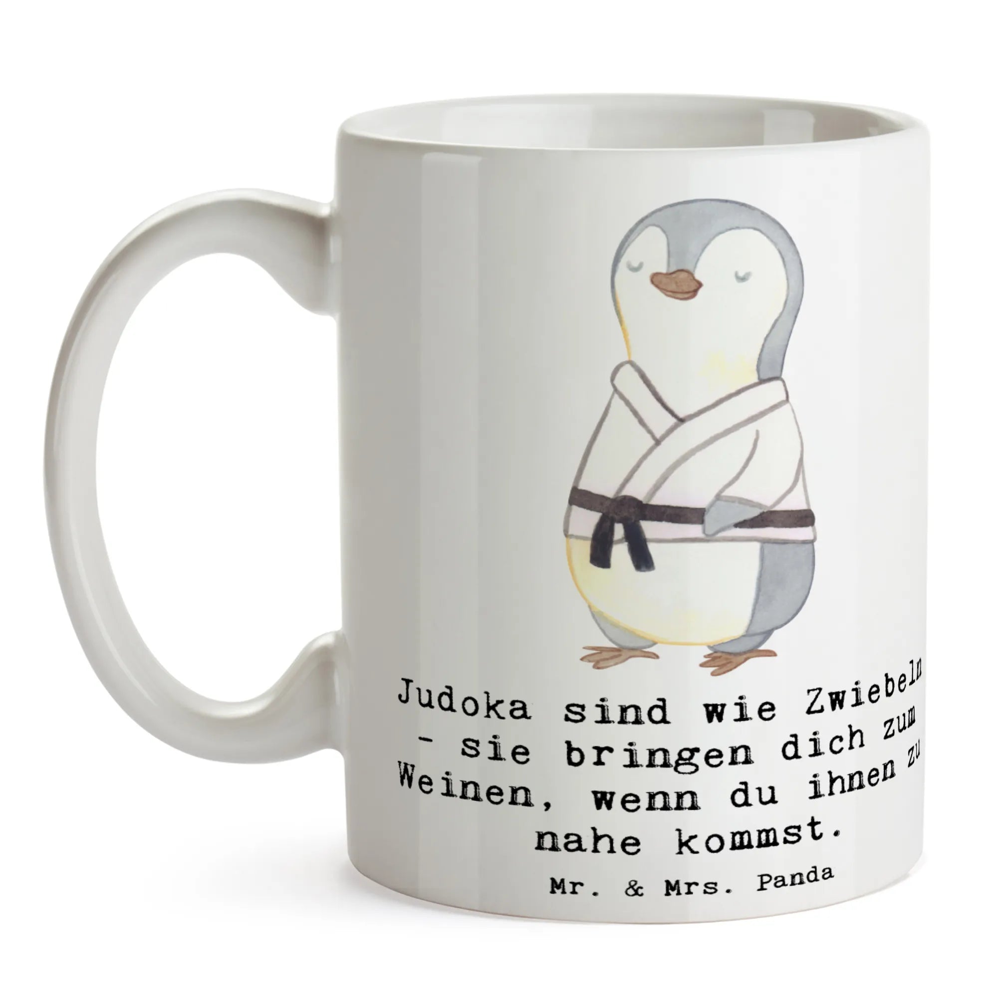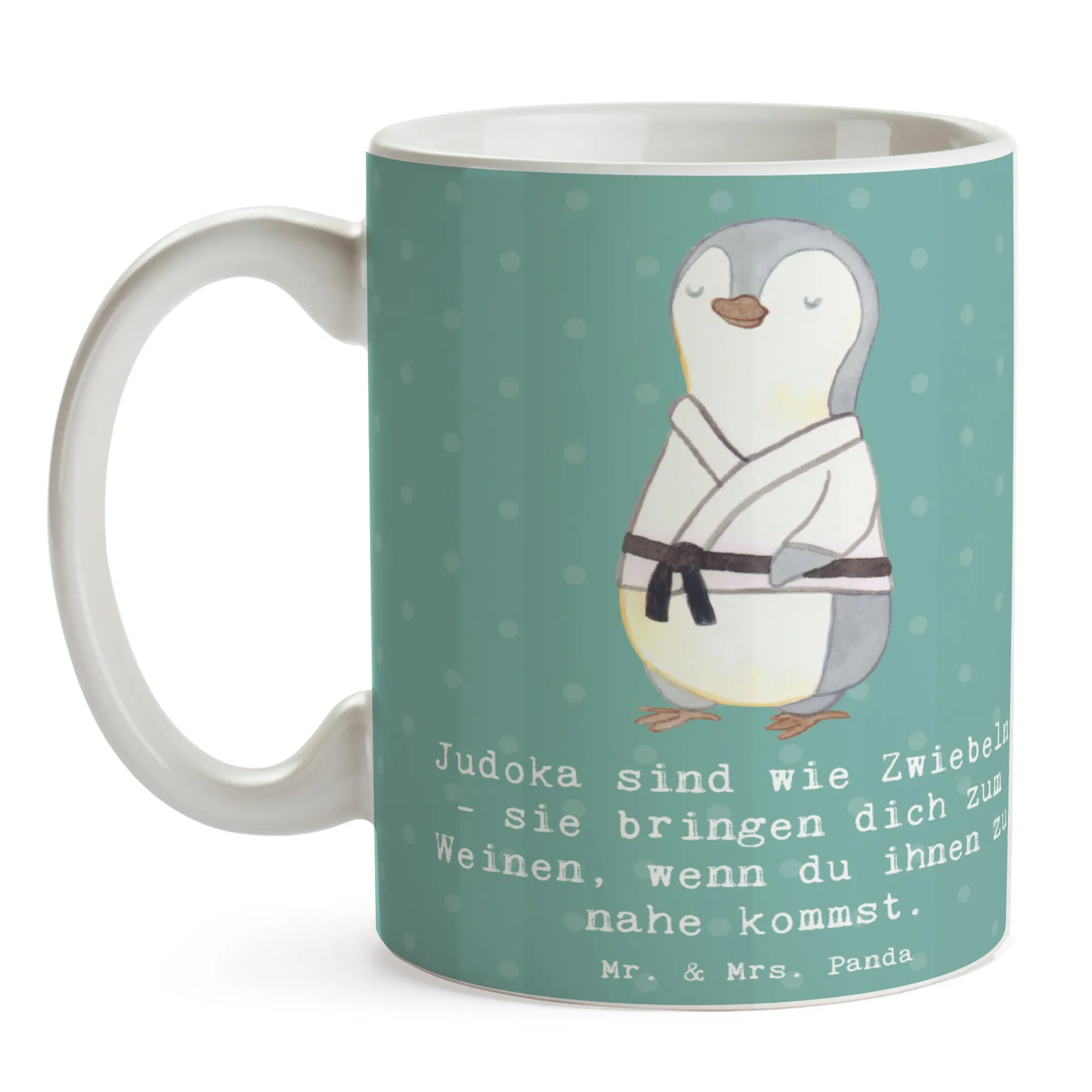Du liebst Judo und suchst nach dem perfekten Begleiter für Deine Kaffeepause? Unsere wunderschöne Keramiktasse mit dem liebevollen Motiv "Judo" von Mr. & Mrs. Panda ist genau das Richtige für Dich! Mit einem witzigen Spruch: "Judoka sind wie Zwiebeln - sie bringen dich zum Weinen, wenn du ihnen zu nahe kommst" bringt diese Tasse nicht nur ein Lächeln auf Deine Lippen, sondern auch das richtige Maß an Motivation für Dein Training. Ob im Büro, beim gemütlichen Tee zu Hause oder während des Wettkampfs, diese Tasse ist ein echter Hingucker und ein praktischer Begleiter.
