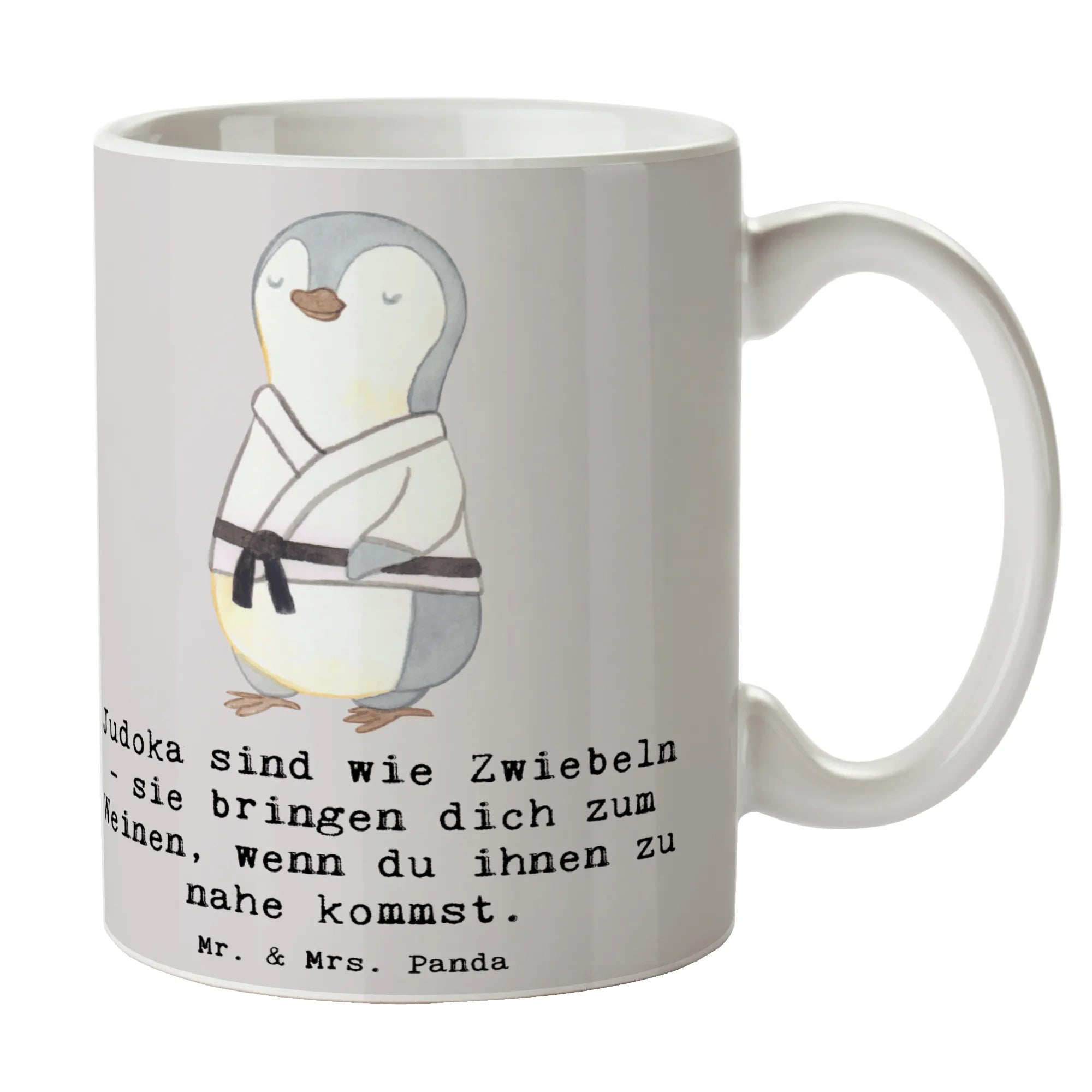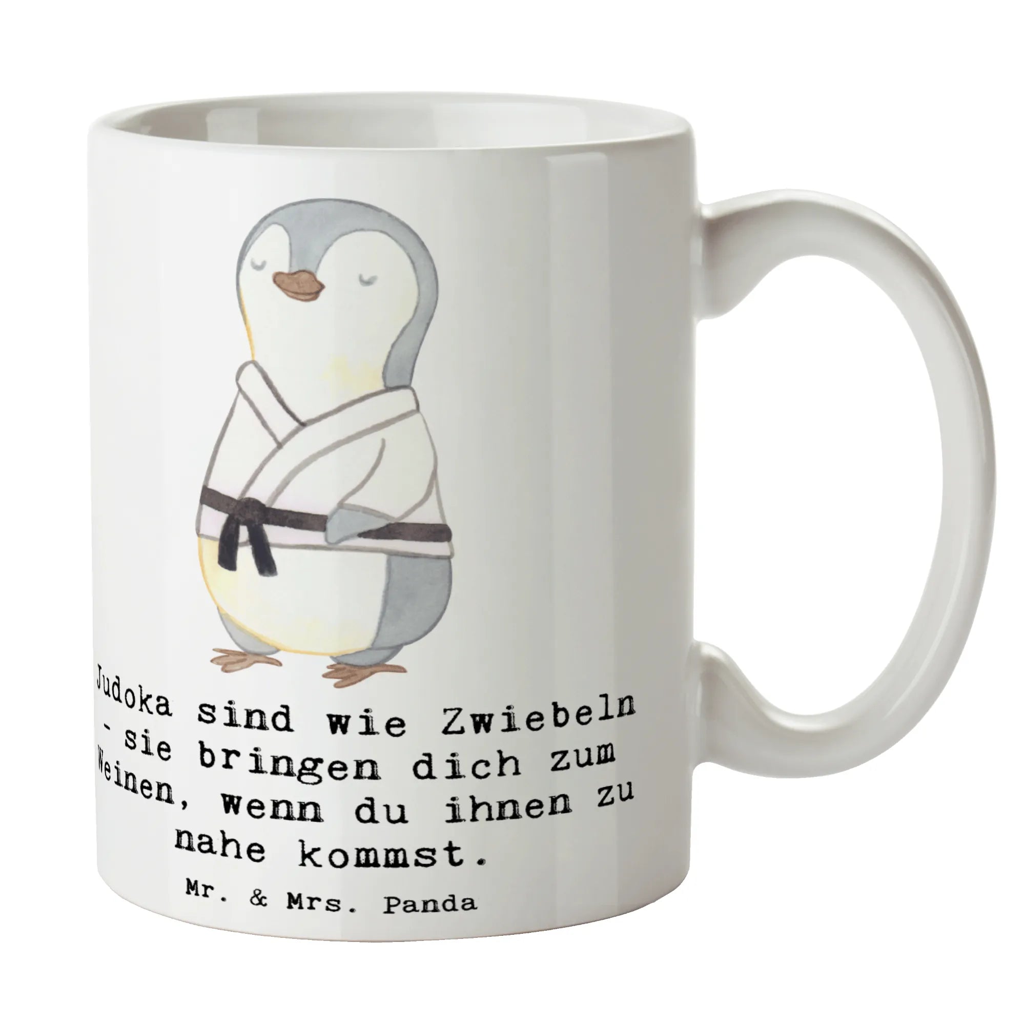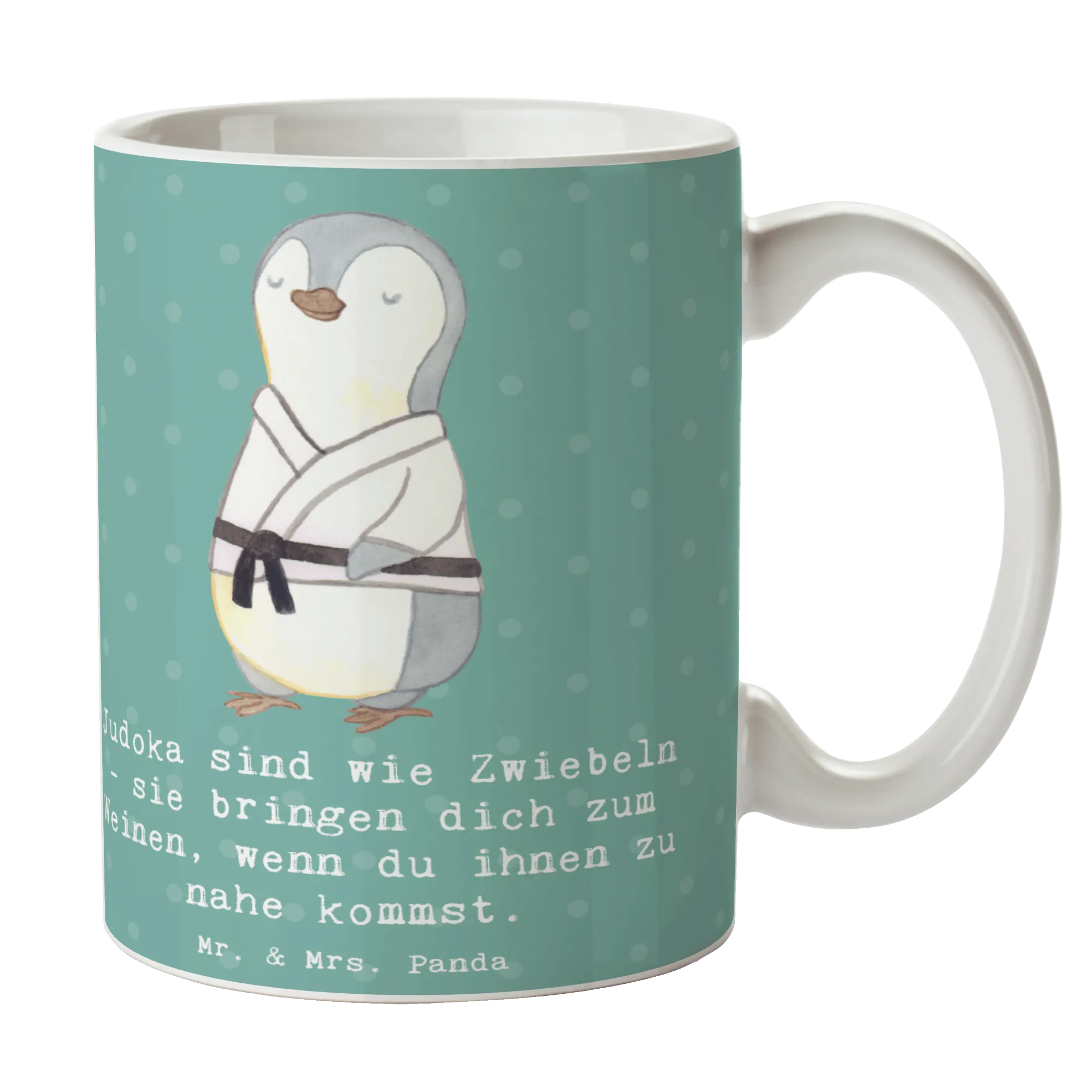 Du liebst Judo und suchst nach dem perfekten Begleiter für Deine Kaffeepause? Unsere wunderschöne Keramiktasse mit dem liebevollen Motiv "Judo" von Mr. & Mrs. Panda ist genau das Richtige für Dich! Mit einem witzigen Spruch: "Judoka sind wie Zwiebeln - sie bringen dich zum Weinen, wenn du ihnen zu nahe kommst" bringt diese Tasse nicht nur ein Lächeln auf Deine Lippen, sondern auch das richtige Maß an Motivation für Dein Training. Ob im Büro, beim gemütlichen Tee zu Hause oder während des Wettkampfs, diese Tasse ist ein echter Hingucker und ein praktischer Begleiter.