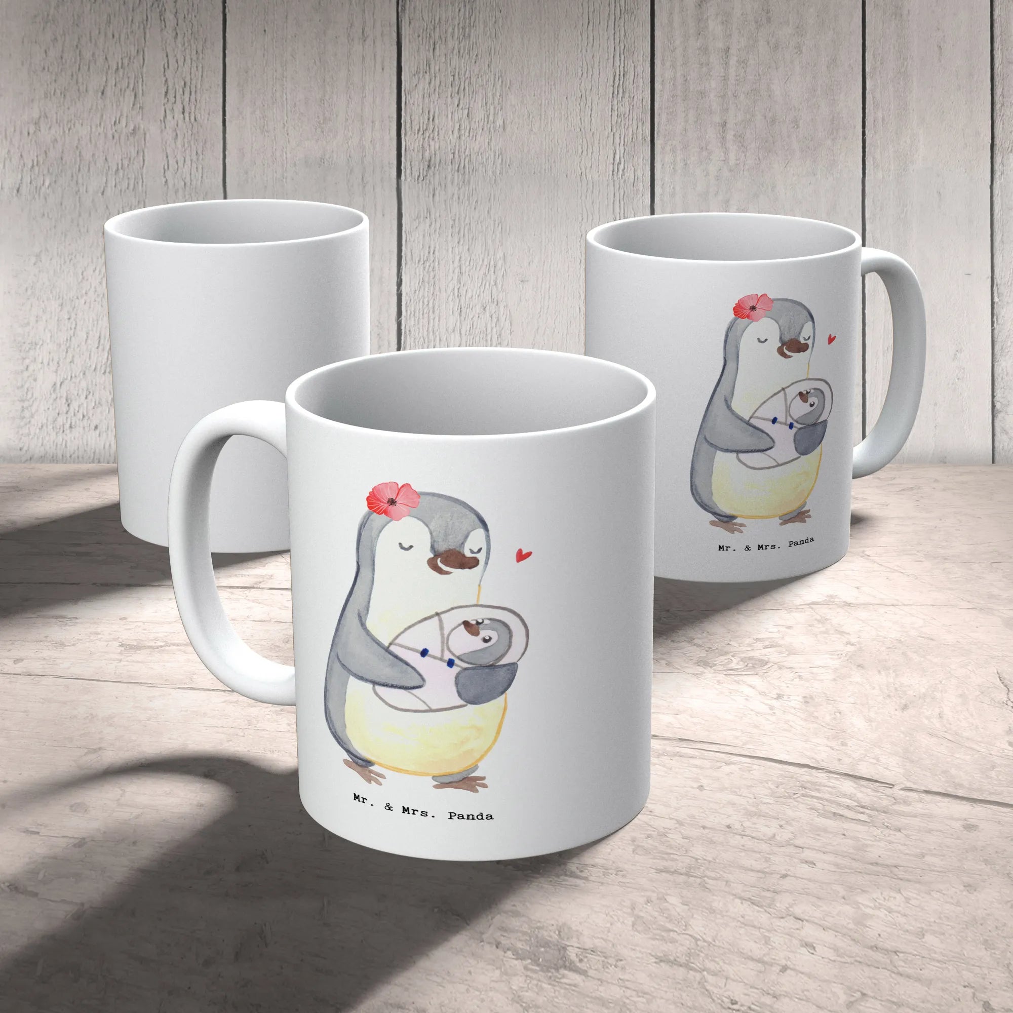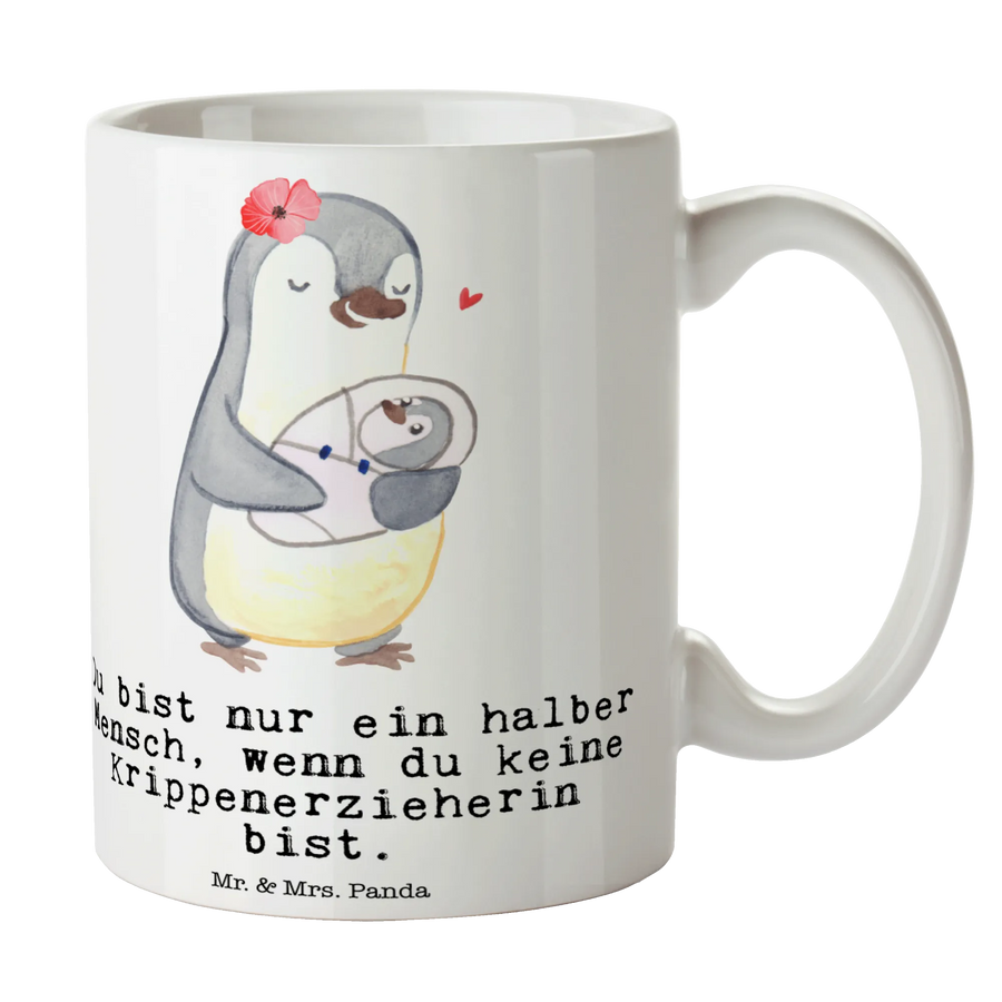 Die Krippenerzieherin mit Herz Tasse von Mr. & Mrs. Panda ist nicht nur eine wunderschöne spülmaschinenfeste Keramiktasse, sondern auch ein zauberhaftes Geschenk für all jene großartigen Menschen, die in Krippen und Kitas arbeiten. Mit ihrem süßen Motiv eines weiblichen Pinguins, der ein Baby-Pinguin im Arm hält, und dem liebevollen Spruch „Du bist nur ein halber Mensch, wenn du keine Krippenerzieherin bist“, ist diese Tasse ein echter Hingucker und bringt Freude in den Alltag einer Krippenerzieherin.
