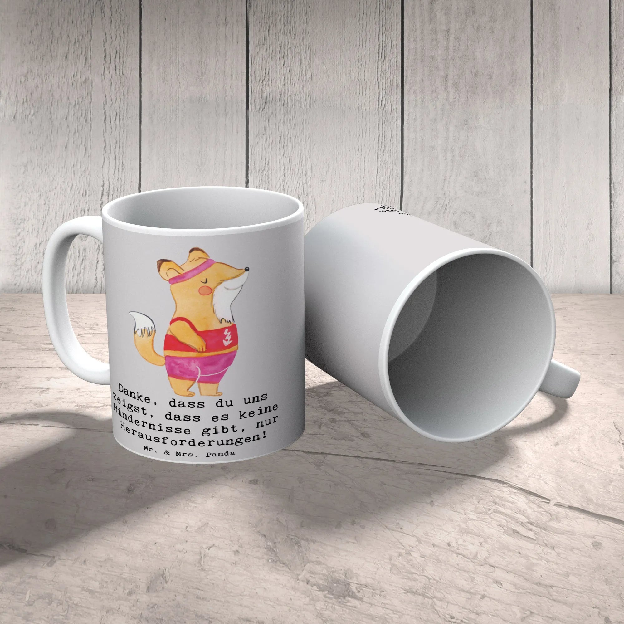 Die Tasse wird mit dem liebevollen Spruch "Danke, dass du uns zeigst, dass es keine Hindernisse gibt, nur Herausforderungen!" verziert und erinnert jeden Tag daran, wie wichtig diese Person für dich und dein Team ist. Egal ob als Dankeschön, Abschiedsgeschenk oder einfach nur als kleine Aufmerksamkeit – diese Tasse ist ideal für jeden Anlass.