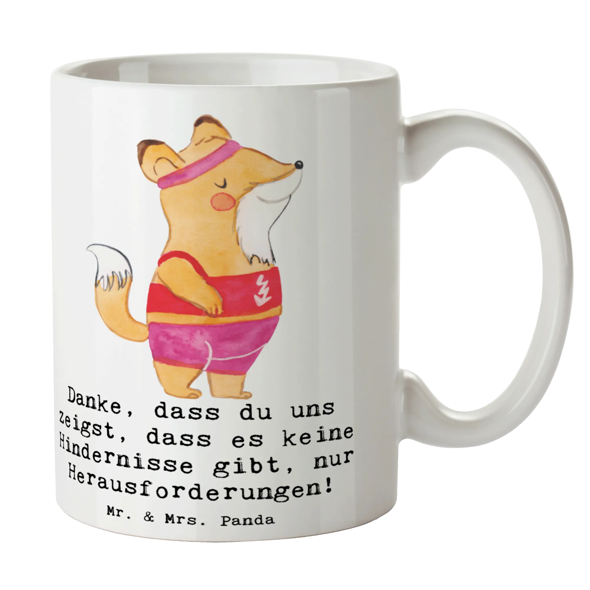Die perfekte Tasse für deine Leichtathletik Trainerin! Unsere hochwertige Keramiktasse von Mr. & Mrs. Panda ist nicht nur ein funktionales Accessoire, sondern auch ein einzigartiges Dankeschön für all die harte Arbeit und Hingabe, die Trainerin in die Entwicklung ihrer Athleten steckt. Auf der Tasse prangt der liebevoll gestaltete Spruch 'Danke, dass du uns zeigst, dass es keine Hindernisse gibt, nur Herausforderungen!'. Damit zeigst du deiner Trainerin, wie sehr du ihre Motivation und ihren Spirit schätzt.