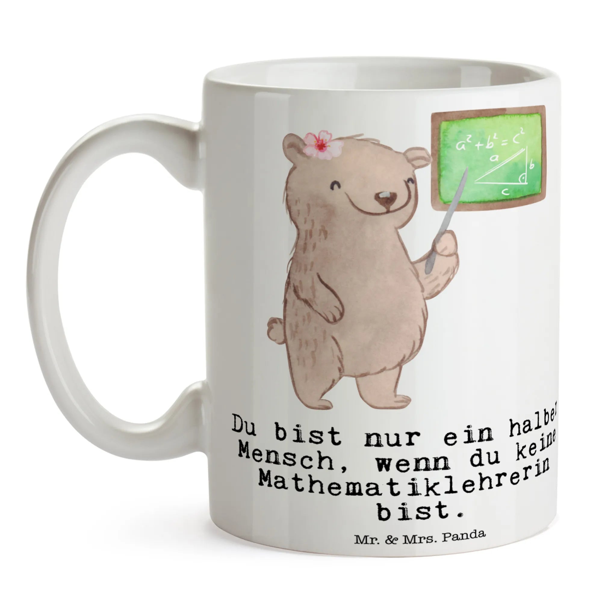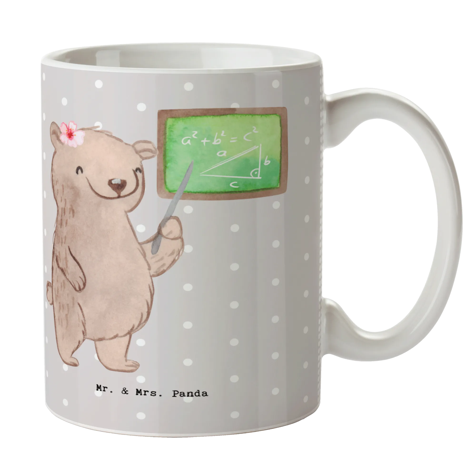 Bringe Freude in den Alltag deiner liebsten Mathematiklehrerin oder Mathelehrer und mache den nächsten Kaffeeklatsch zu einem besonderen Ereignis. Die Mathematiklehrerin mit Herz Tasse macht's möglich! Setze selbst ein Zeichen als Mathelehrer und zeige, dass der Mathematikunterricht nicht nur trocken und theoretisch ist, sondern auch viel Humor und Liebe enthalten kann. Jeder Schluck aus dieser Tasse wird zum Erinnerungsstück voller schöner Gedanken. Schenke Freude und Kreativität – denn das ist es, was Mr. & Mrs. Panda in jedes Produkt hineinstecken!