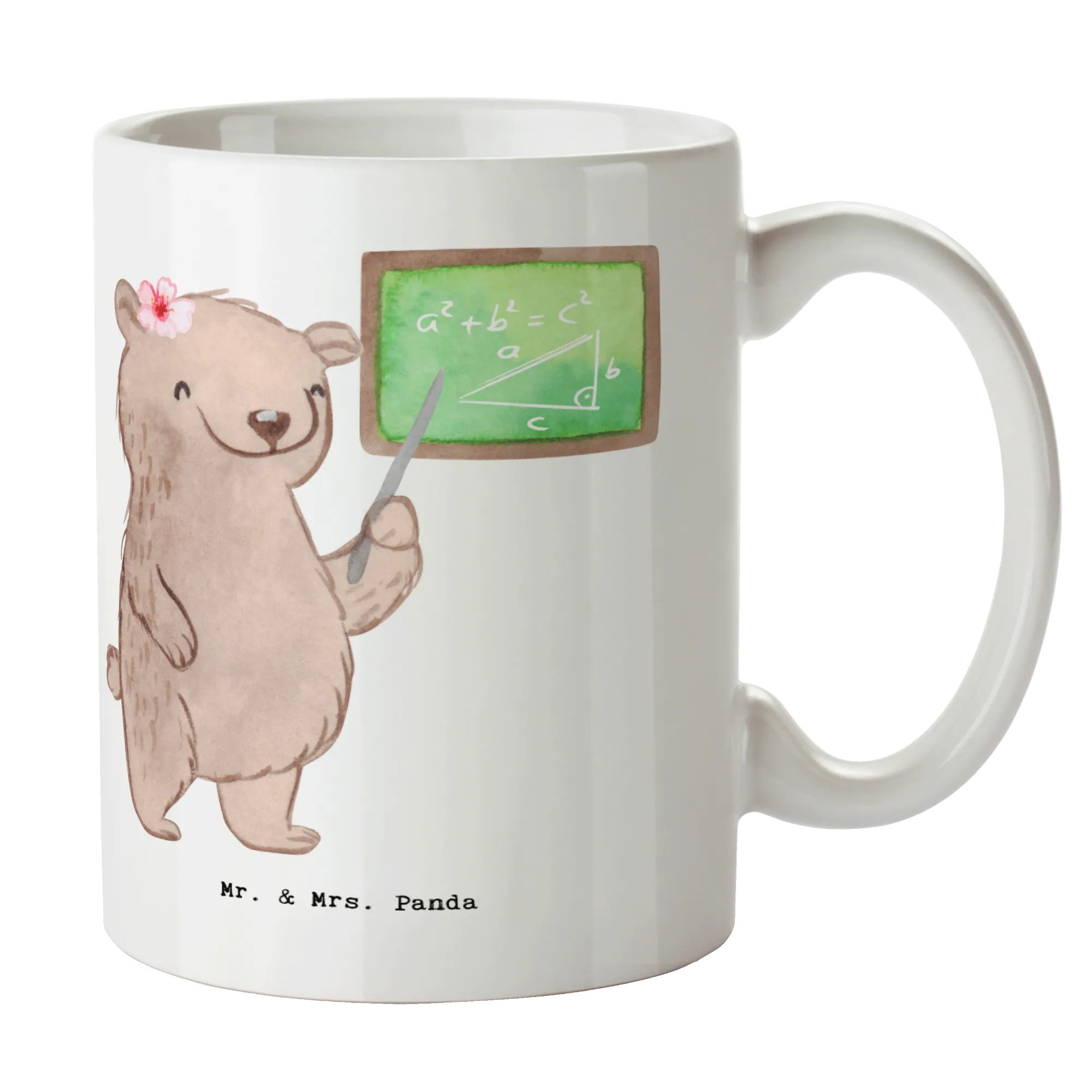 Mit einem niedlichen Bären, der vor einer Schultafel steht und eine Rechnung durchführt, zaubert diese Tasse jedem Mathematiklehrer ein Lächeln ins Gesicht. Die liebevoll handgezeichnete Aquarellgrafik ist ein echter Hingucker und macht die Tasse zu einem Unikat!