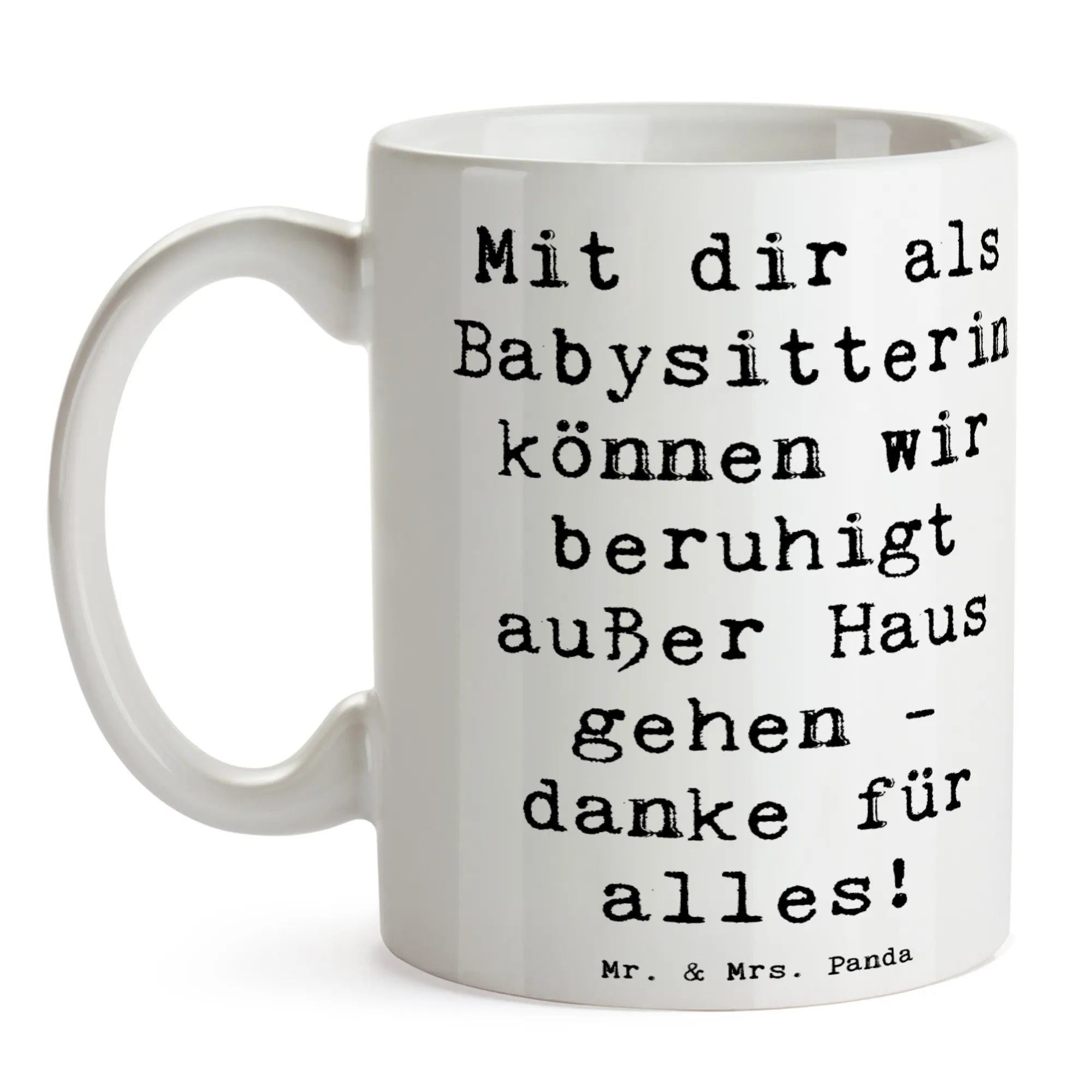 Tasse Mit dir als Babysitterin können wir beruhigt außer Haus gehen - danke für alles! - Weiß