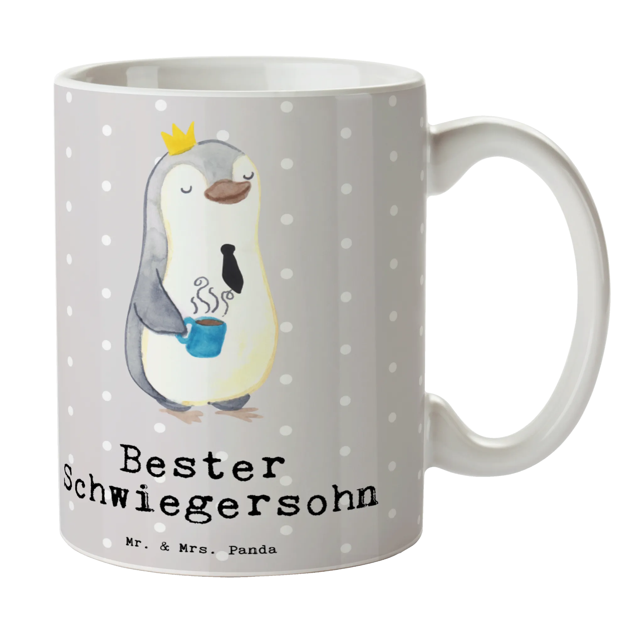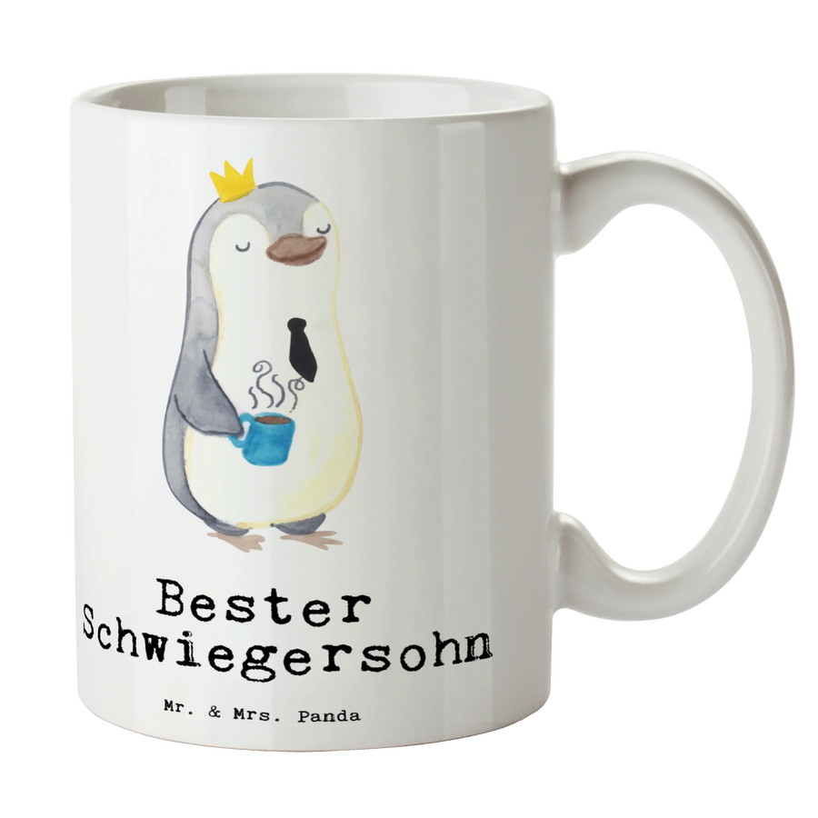 Auf der Suche nach dem perfekten Geschenk für deinen Schwiegersohn? Unsere Tasse „Pinguin – Bester Schwiegersohn" von Mr. & Mrs. Panda ist ein liebevolles und zugleich freches Mitbringsel, das sofort Freude macht 😊. Der niedliche Pinguin mit Krönchen und Kaffee in der Hand und der freche Spruch „Bester Schwiegersohn" sagen mehr als 1000 Worte – und sorgen für Lacher am Frühstückstisch oder im Büro.