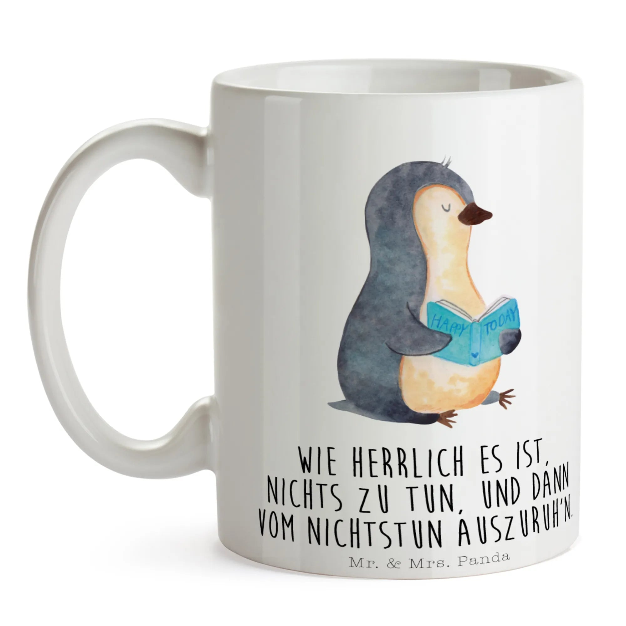 Entdecke die zauberhafte Tasse mit dem tollen Pinguin-Motiv aus der Pinguin-Kollektion von Mr. & Mrs. Panda! Diese wunderschöne spülmaschinenfeste Keramiktasse ist nicht nur ein echter Hingucker, sie ist auch dein idealer Begleiter für entspannte Kaffeepausen oder gemütliche Teestunden. Der süße Pinguin, der mit seinem geliebten Buch abtaucht, wird dich jeden Tag daran erinnern, dass Lesen die beste Art ist, um vom Alltag zu entspannen. Perfekt für Bücherwürmer, die die kleinen Freuden des Lebens schätzen!
