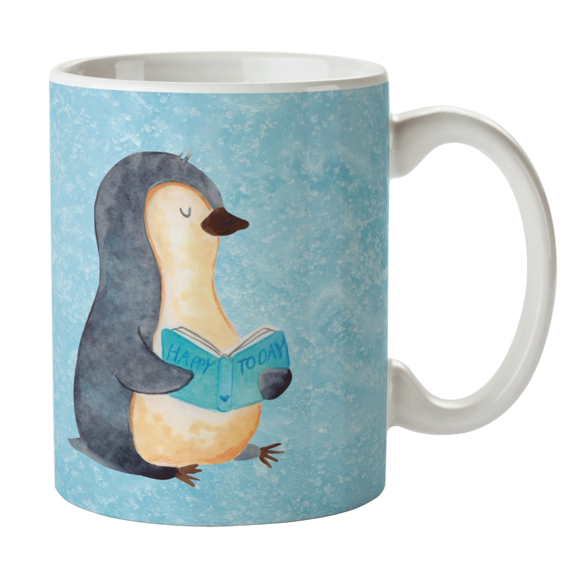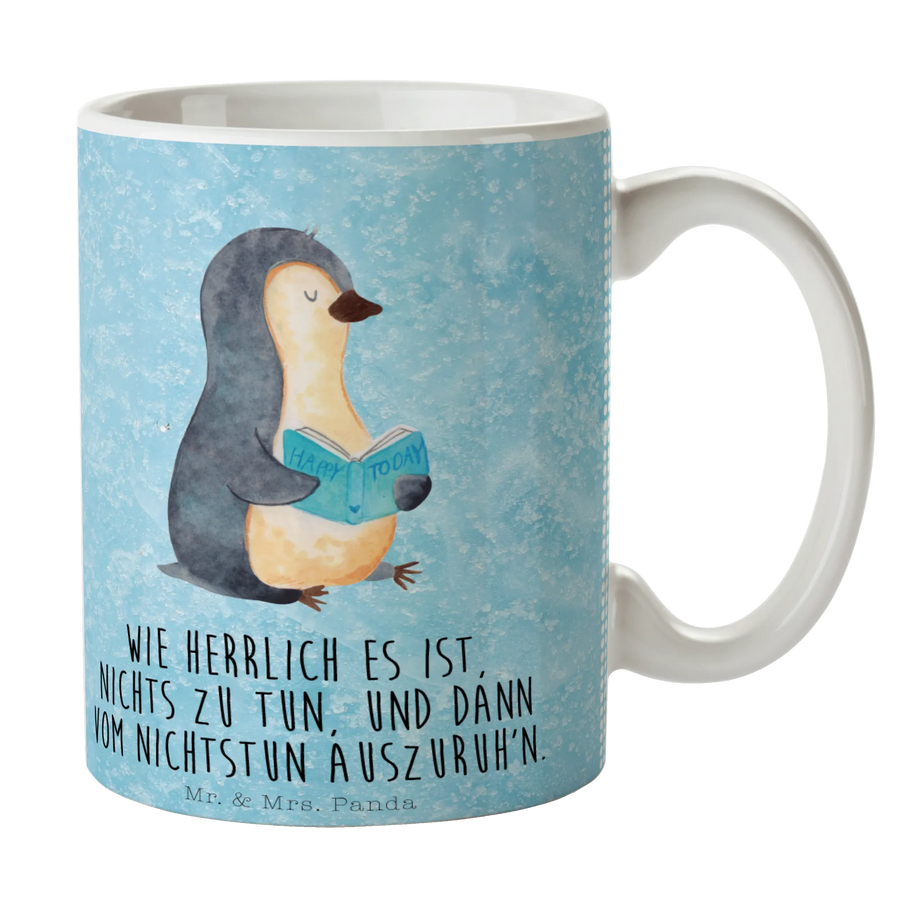Tasse Pinguin Buch - mit Spruch - Keramik - Eisblau