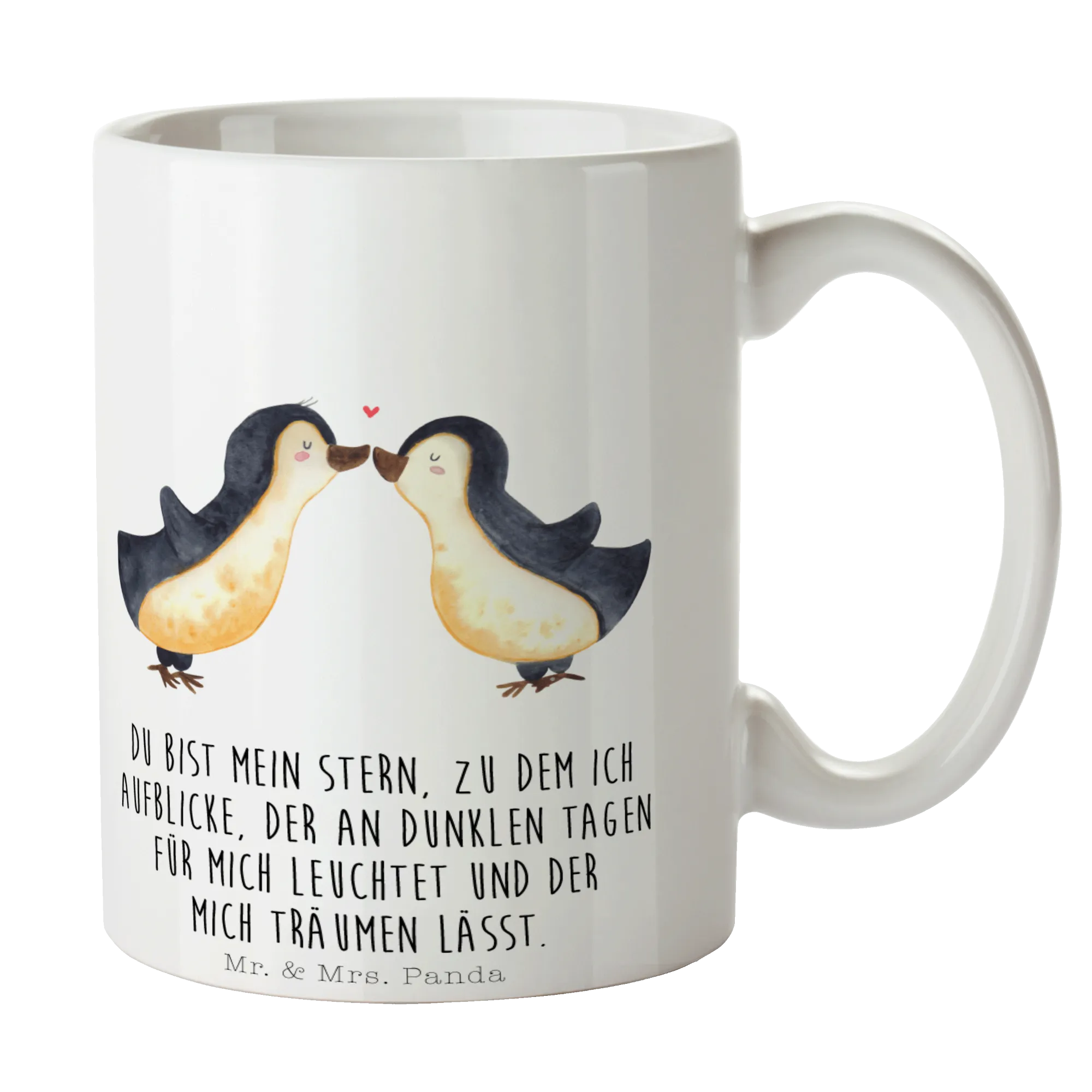 Suchst Du nach dem perfekten Geschenk für Deine große Liebe? Die Tasse Pinguin Liebe aus der lieben Kollektion von Mr. & Mrs. Panda kommt wie gerufen! Diese wunderschöne, spülmaschinenfeste Keramiktasse ist nicht nur ein praktisches Geschenk, sondern auch ein wahrer Liebesbeweis.