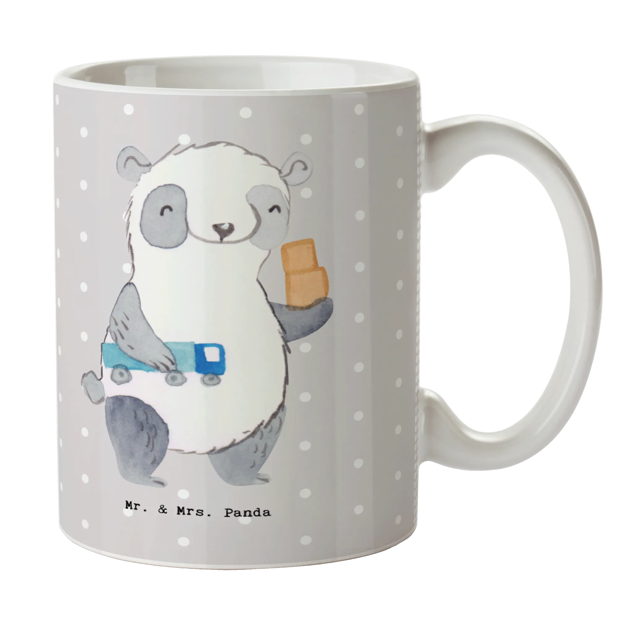 Mit einem liebevoll gezeichneten süßen Panda, der einen kleinen Spielzeug-Lkw in der einen Hand hält und in der anderen Hand ein paar Mini-Kartons, zaubert sie jedem ein Lächeln ins Gesicht. Sie ist nicht nur ein praktischer Begleiter im Büro, sondern auch ein liebevolles Dankeschön für die harte Arbeit deiner Kollegen oder Mitarbeiter.