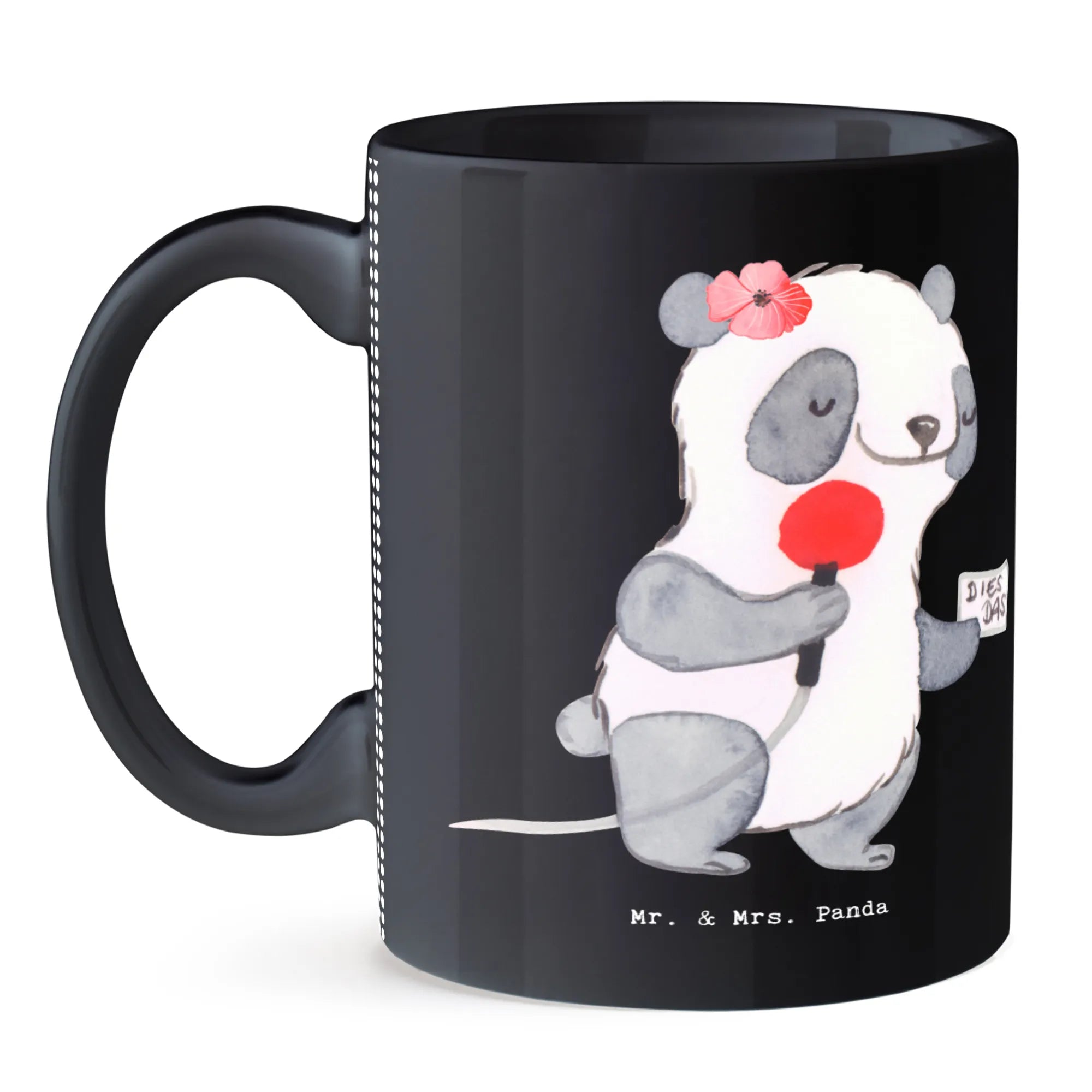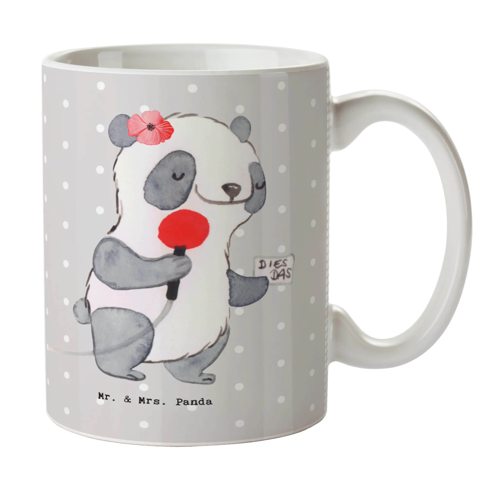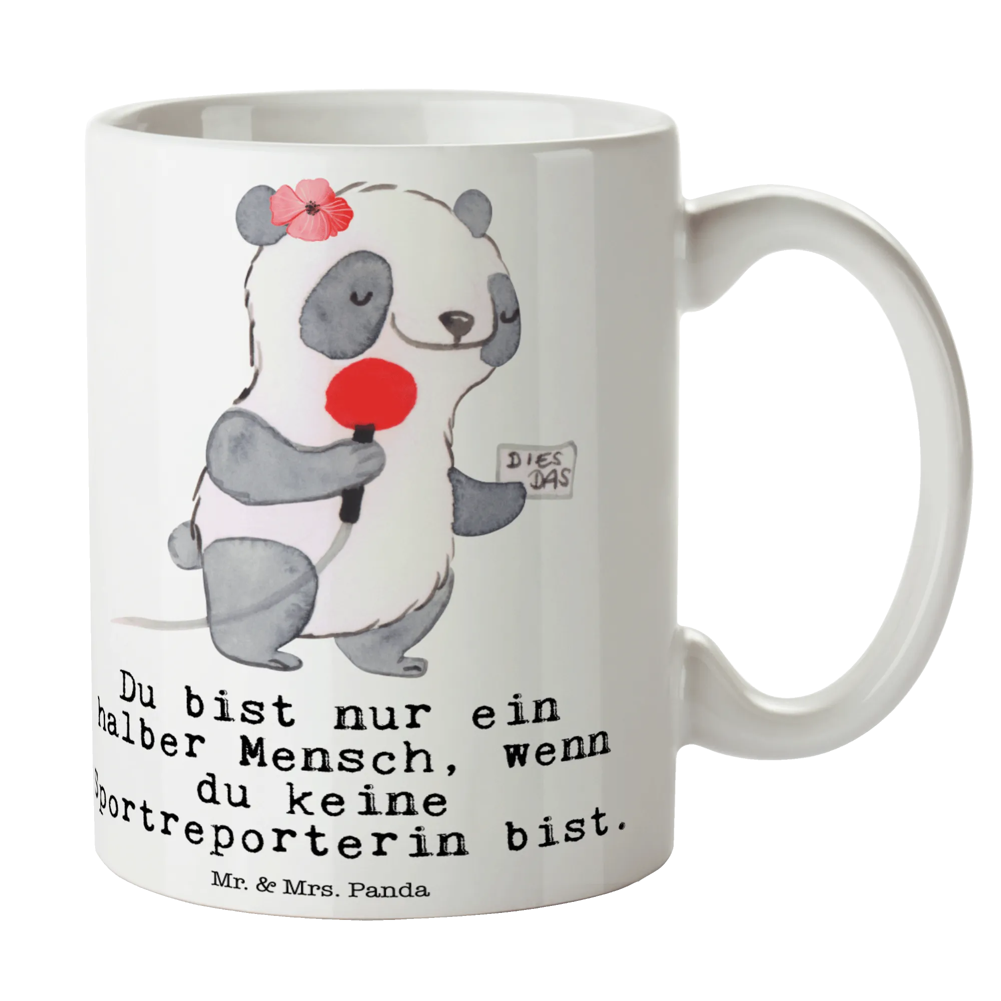 Sportreporterin mit Herz – süßer Panda als Reporter mit Mikrofon & Notizen, perfektes Geschenk