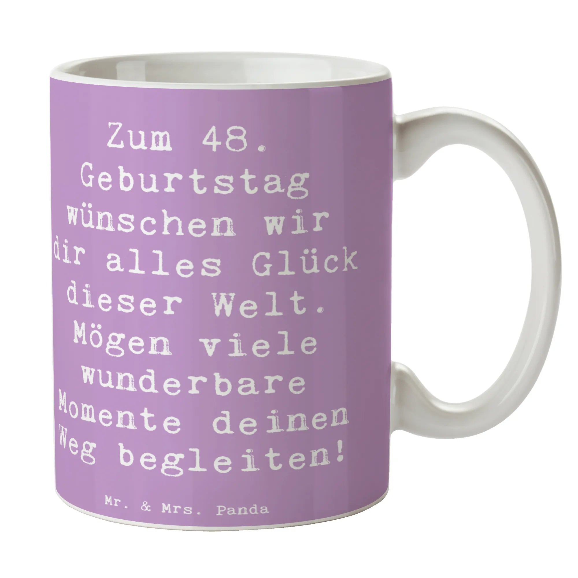 Suchst du das perfekte Geschenk für jemanden, der seinen 48. Geburtstag feiert? Unsere wunderschöne Tasse von Mr. & Mrs. Panda, die speziell für diesen Anlass entworfen wurde, ist die ideale Wahl! Mit dem liebevollen Spruch "Zum 48. Geburtstag wünschen wir dir alles Glück dieser Welt. Mögen viele wunderbare Momente deinen Weg begleiten!" ist diese Tasse eine herzliche Geste, die jeden Beschenkten erfreuen wird.