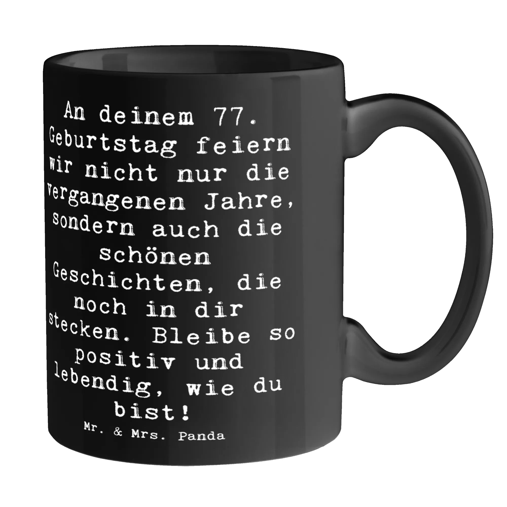 Mit dem liebevollen Spruch "An deinem 77. Geburtstag feiern wir nicht nur die vergangenen Jahre, sondern auch die schönen Geschichten, die noch in dir stecken. Bleibe so positiv und lebendig, wie du bist!" trägst du dazu bei, die Freude an diesem Tag zu verstärken! Die Tasse ist nicht nur ein praktisches Geschenk, sondern auch ein emotionales Präsent, das beim Beschenkten für ein Lächeln sorgt.