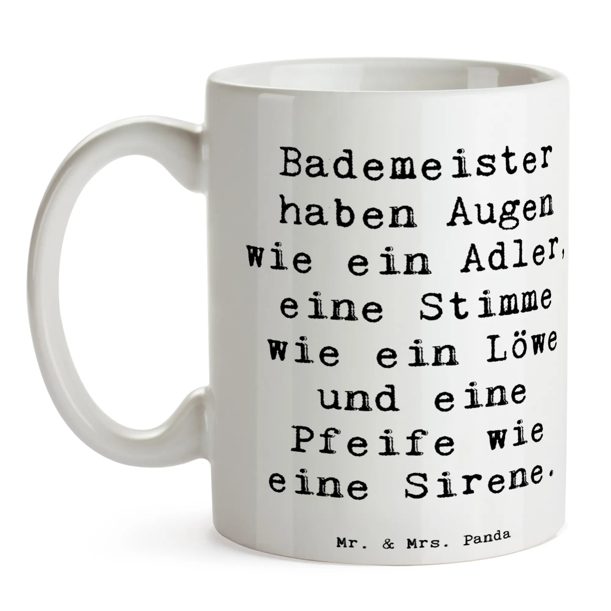 Die Tasse ist Teil der Berufe-Kollektion von Mr. & Mrs. Panda, die mit viel Herz und Kreativität verschiedene Berufe darstellt. Ob zum Berufsabschied, als kleines Dankeschön für die engagierte Arbeit oder einfach nur so – diese Tasse ist ein liebevolles Geschenk für jeden Bademeister in deinem Leben.