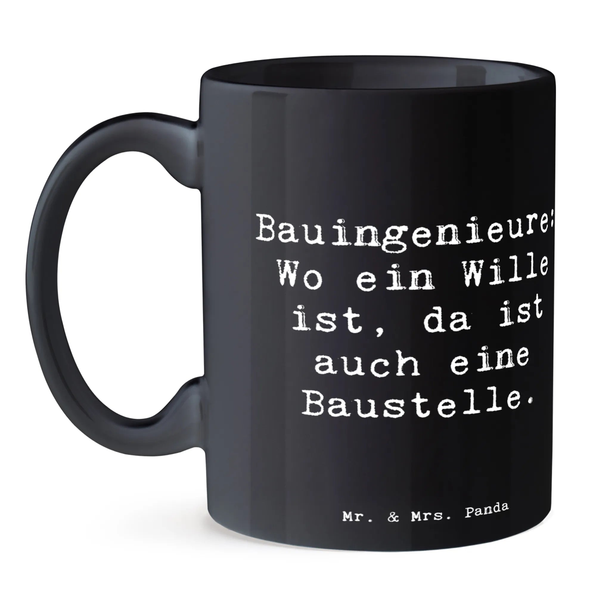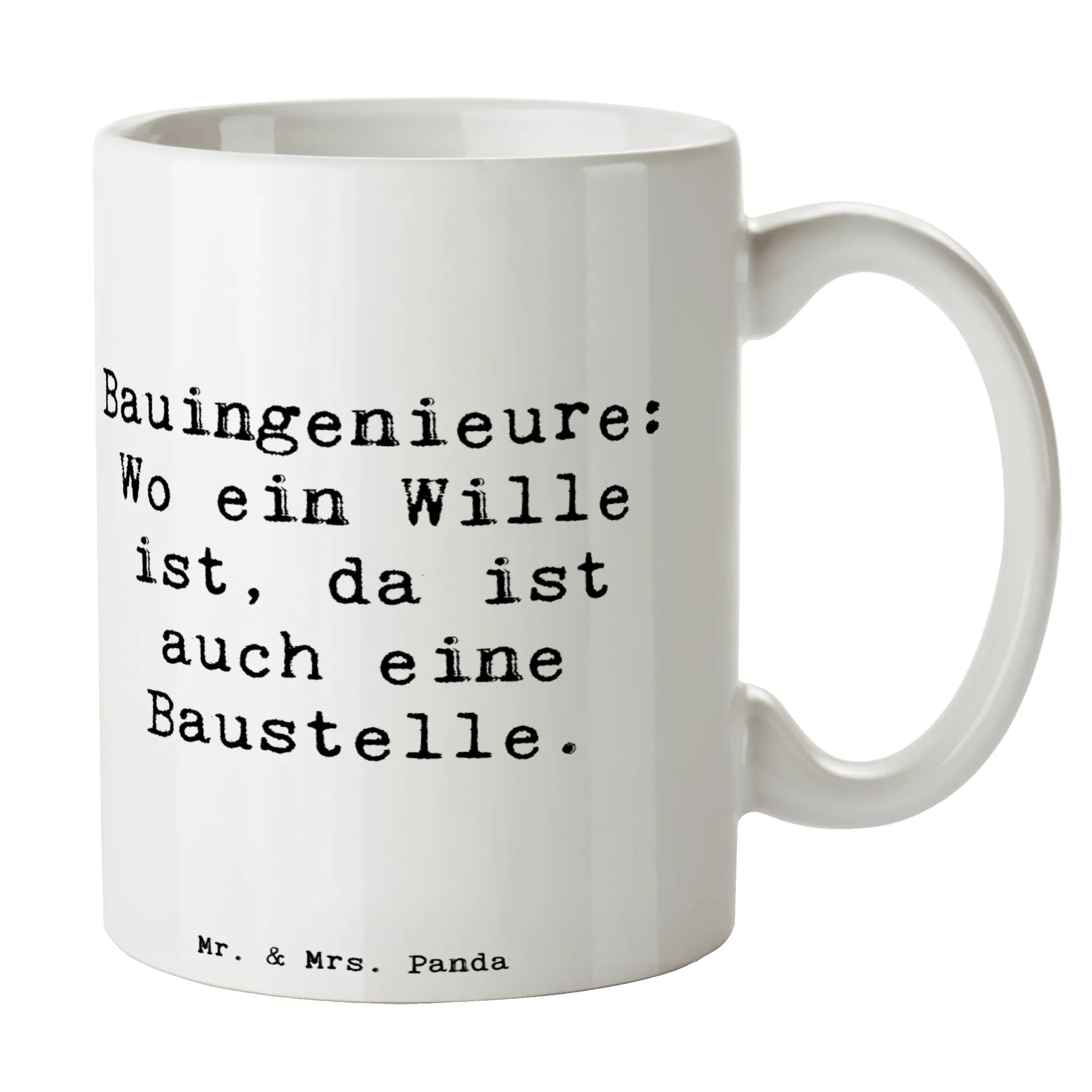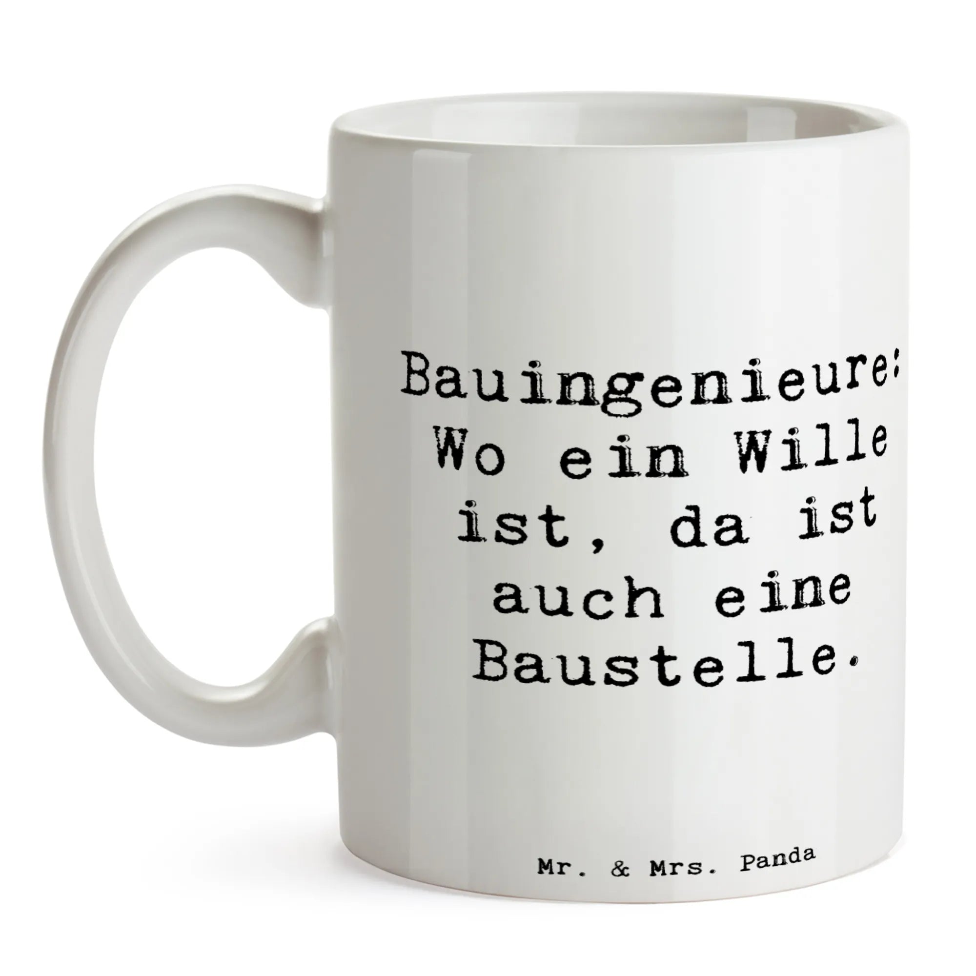 Tasse Spruch Bauingenieure: Wo ein Wille ist, da ist auch eine Baustelle. - Weiß