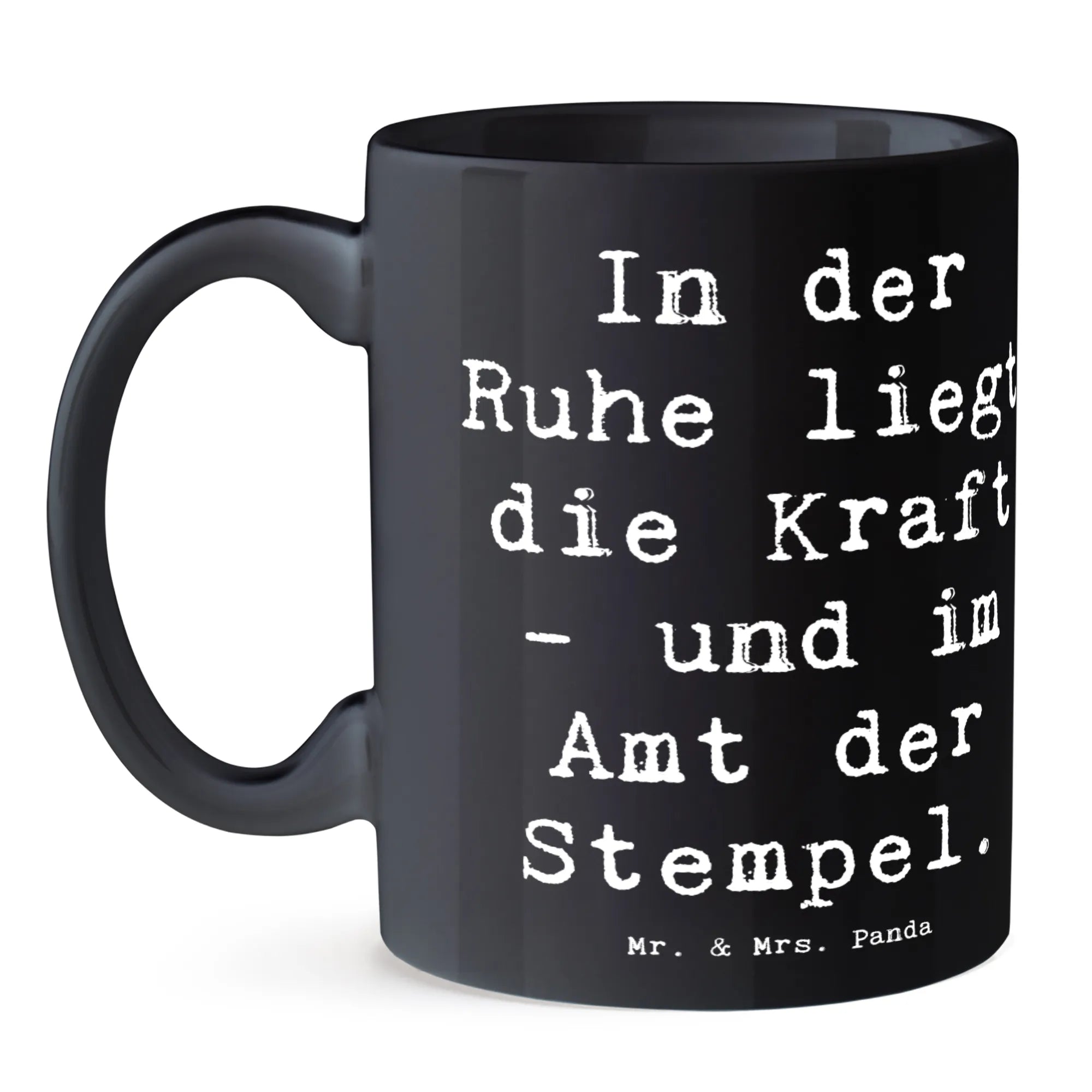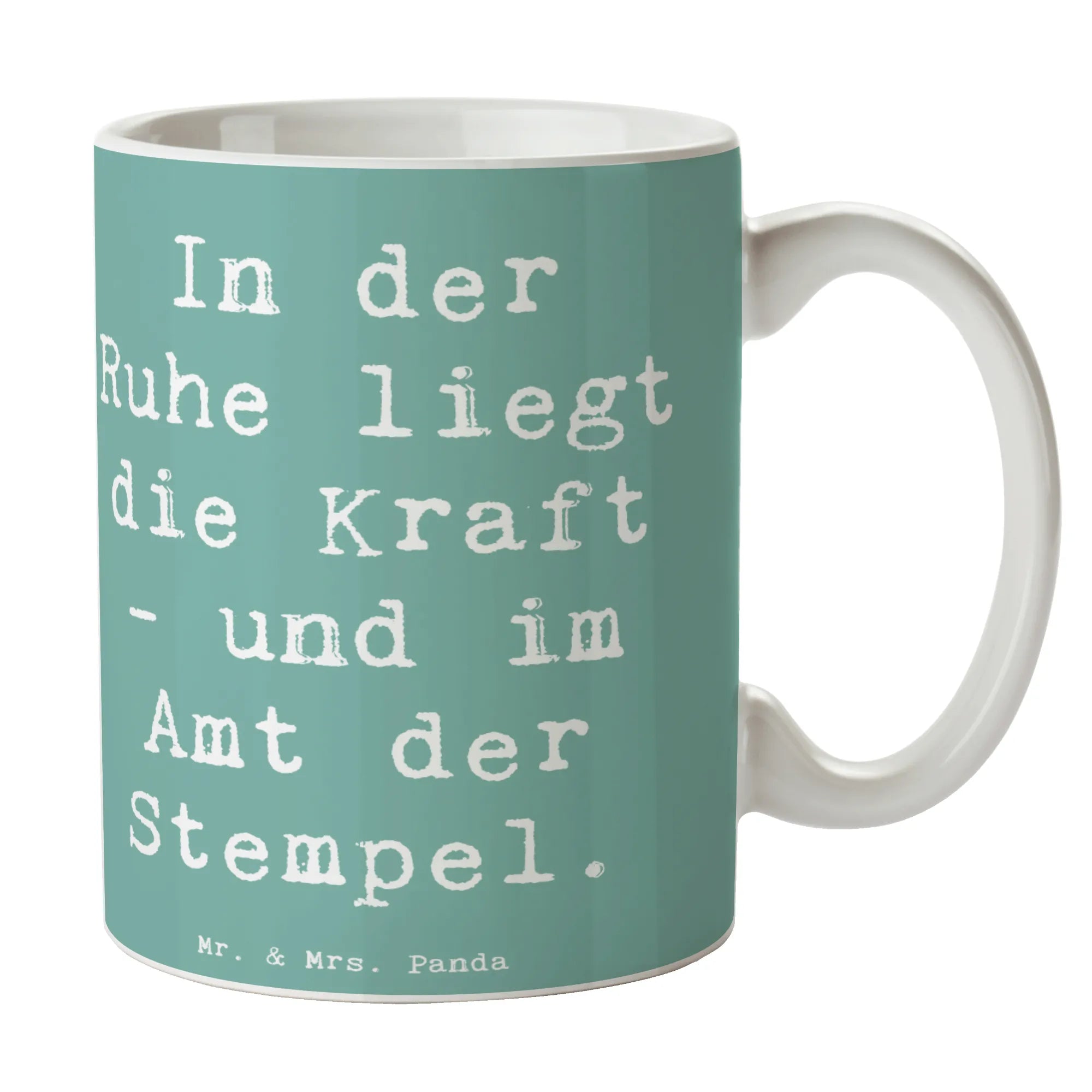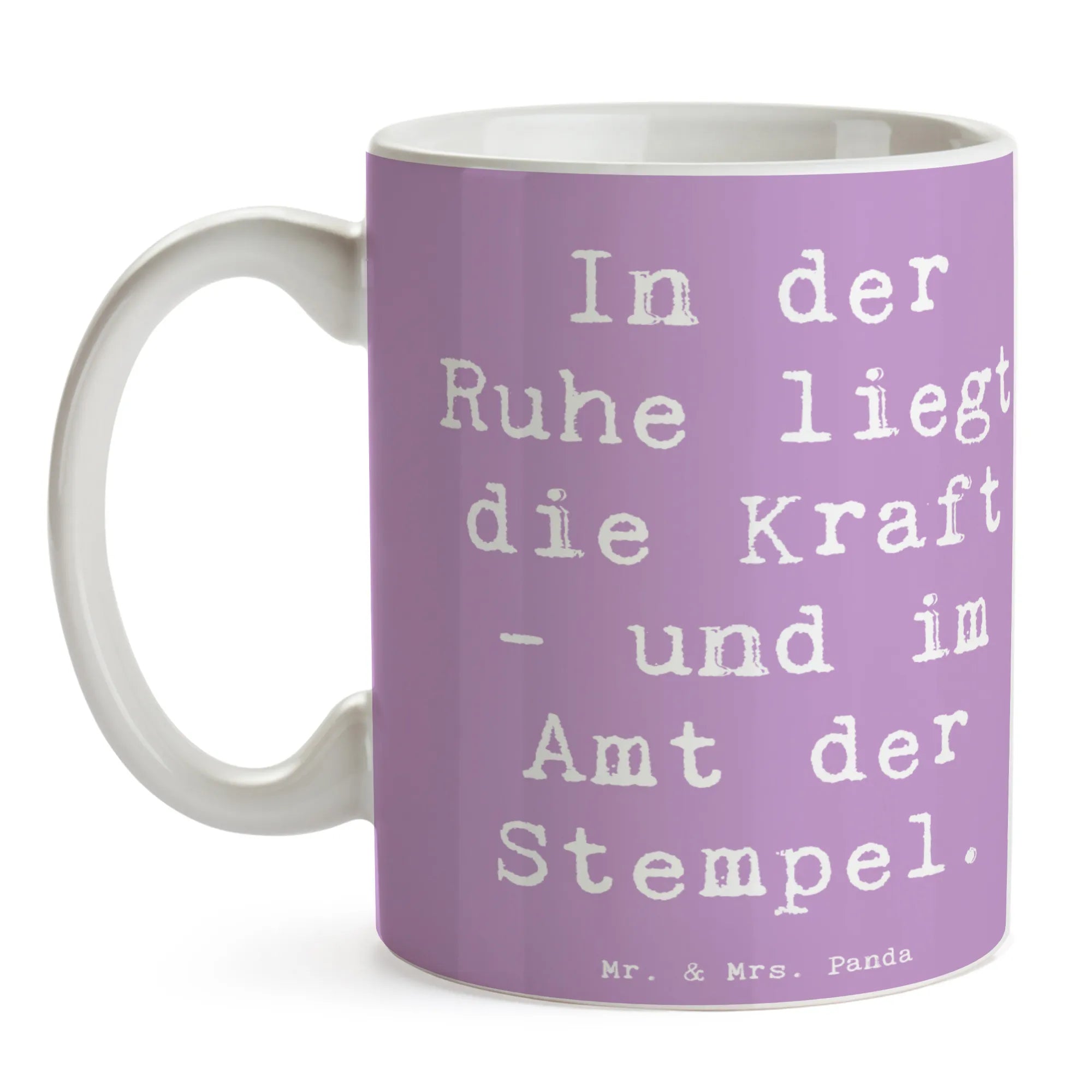 Mit einem zarten Hintergrund in Lavendeltraum und dem Spruch 'In der Ruhe liegt die Kraft - und im Amt der Stempel.' bringt sie eine Portion gute Laune in jeden Büro-Alltag. Egal, ob als Kaffeetasse oder Teetasse, sie lässt sich perfekt für Deine Lieblingsgetränke nutzen. Die Tasse fasst bis zu 325 ml und ist zudem mikrowellen- und spülmaschinenfest, sodass sie praktisch und einfach im Alltag zu handhaben ist.