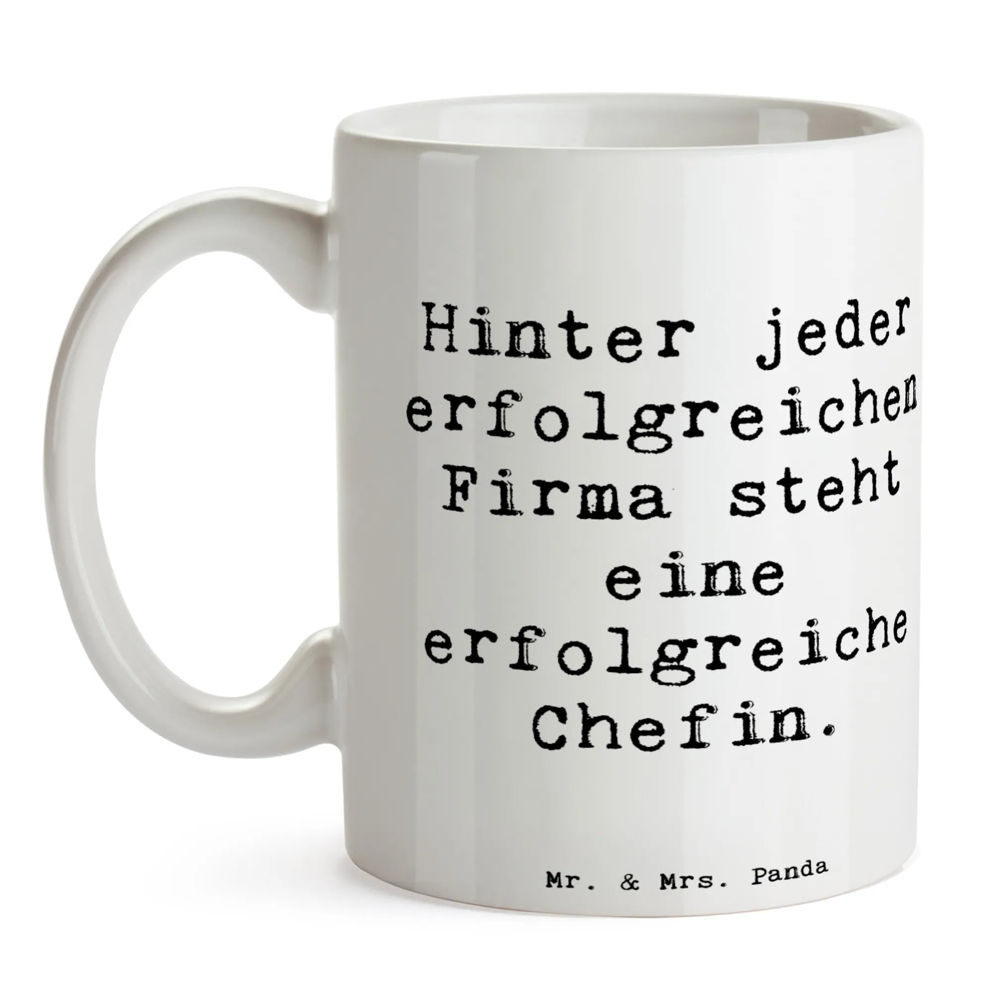 Für alle starken Frauen im Job: Die Mr. & Mrs. Panda Kaffeetasse „Chefin“ aus der liebevollen Berufe-Kollektion ist das perfekte Geschenk für die Frau, die das Büro mit Kompetenz und Herz führt. Auf schwarzem Hintergrund steht der prägnante Spruch „Hinter jeder erfolgreichen Firma steht eine erfolgreiche Chefin.“ – ein Statement, das Anerkennung ausdrückt und täglich motiviert.