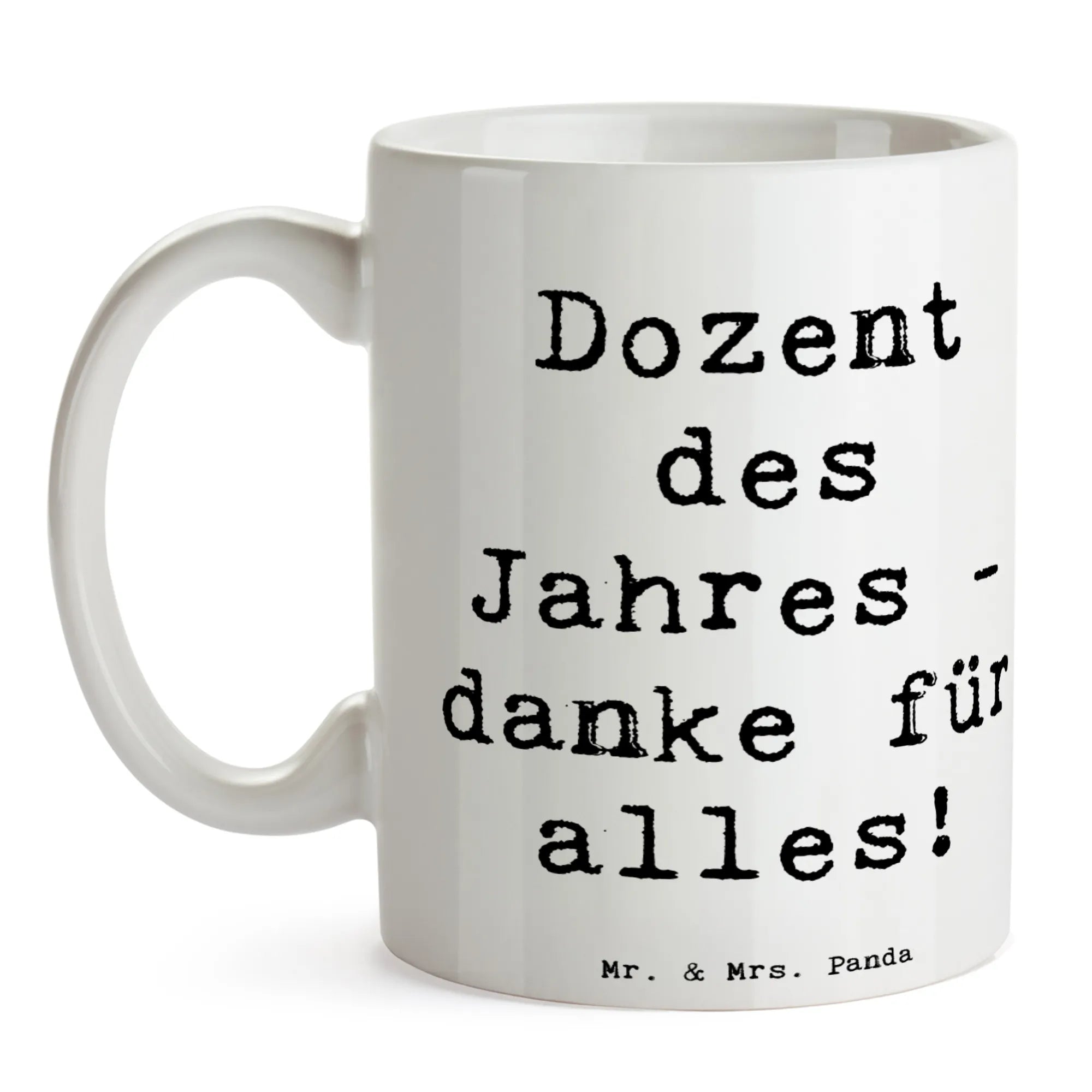 Suchst du ein liebevolles Dankeschön für einen besonderen Dozenten? Unsere Mr. & Mrs. Panda Tasse „Dozent“ aus der Danke-Kollektion ist genau das richtige Geschenk, um Anerkennung mit Herz und Humor auszudrücken. Mit dem klaren Spruch „Dozent des Jahres - danke für alles!“ setzt diese Kaffeetasse ein sympathisches Zeichen: Wertschätzung, Respekt und ein Lächeln in einem.