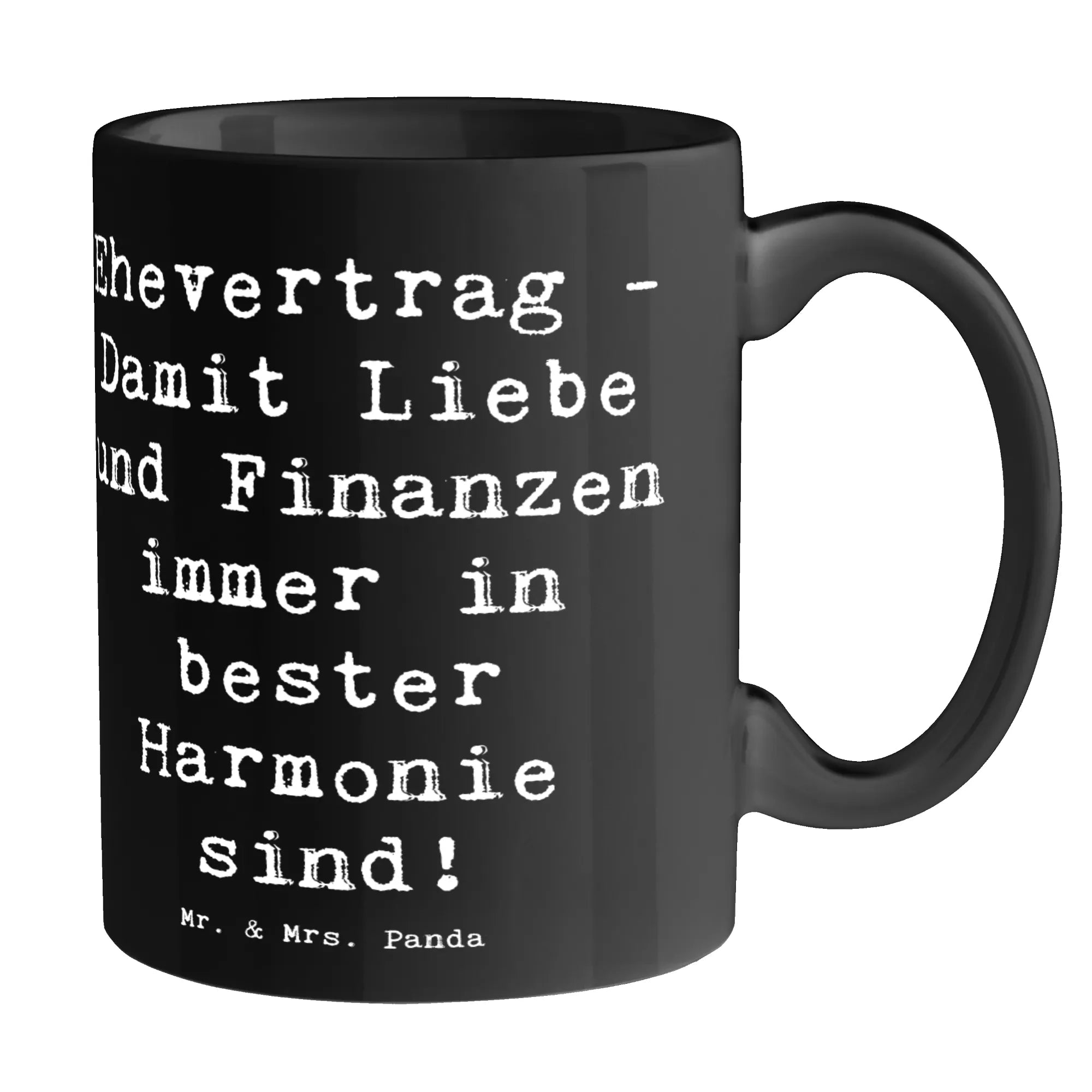 Du suchst nach dem perfekten Geschenk für frisch vermählte Paare oder diejenigen, die es bald werden? Die wunderschöne Kaffeetasse "Ehevertrag - Damit Liebe und Finanzen immer in bester Harmonie sind!" von Mr. & Mrs. Panda ist genau das Richtige für jeden Hochzeitsanlass!