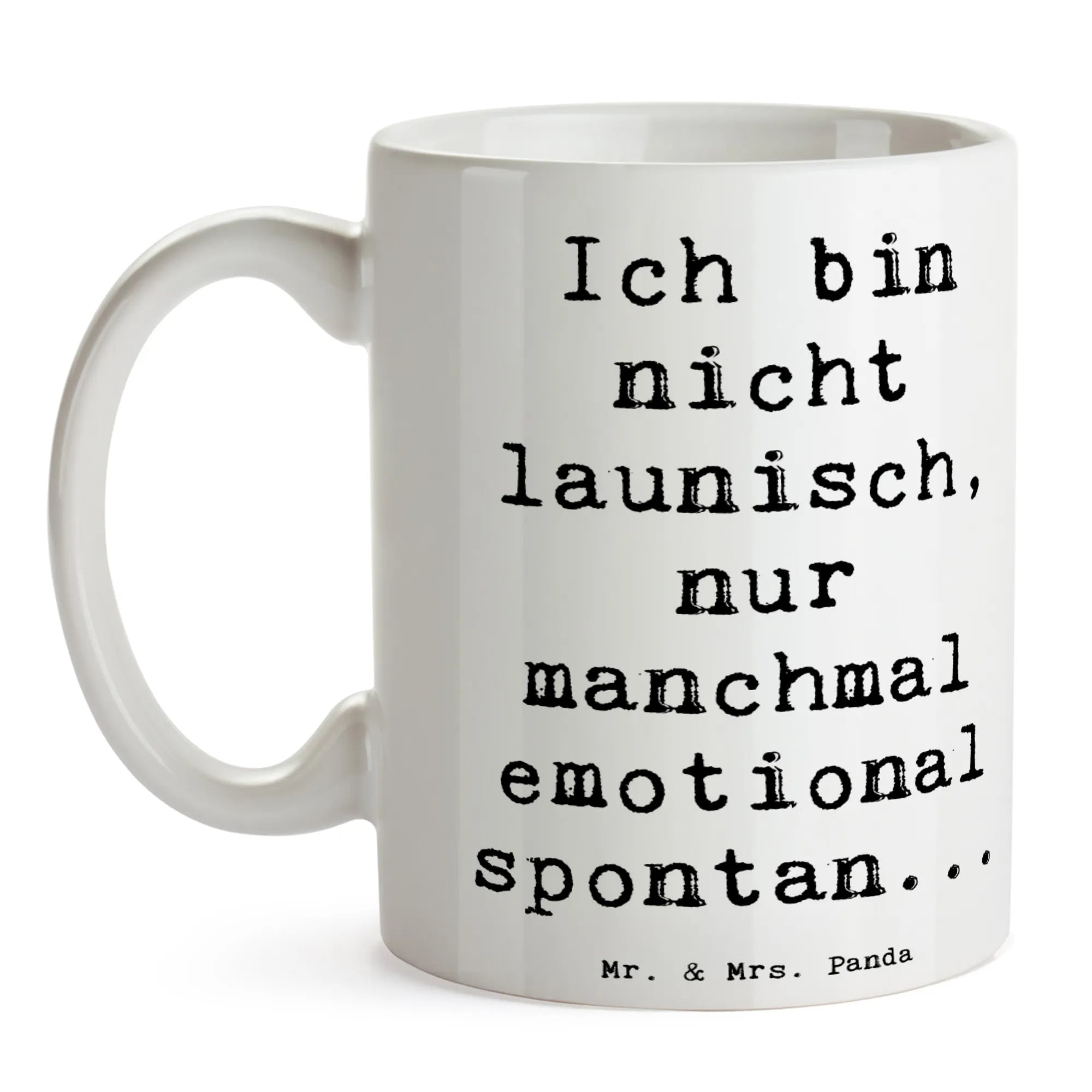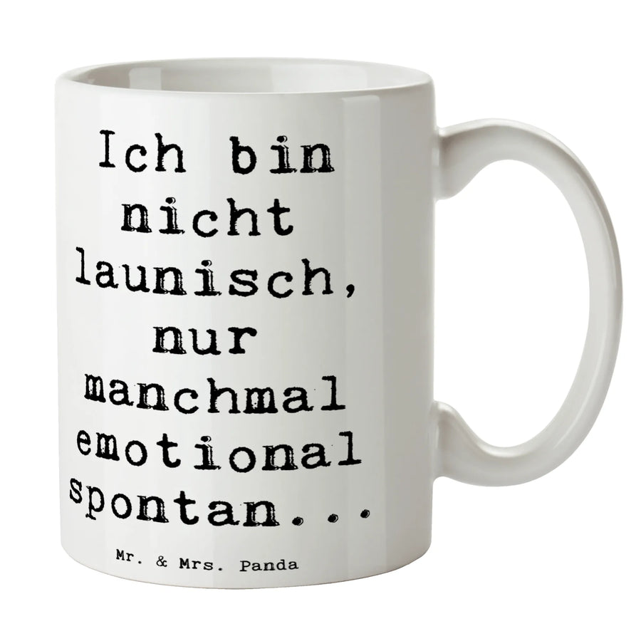 Die wunderschöne Keramiktasse "Emotionen ausdrücken" aus der Mutmacher-Kollektion von Mr. & Mrs. Panda ist das perfekte Geschenk für all jene, die Empathie und Zuversicht schätzen. Mit dem charmanten Spruch "Ich bin nicht launisch, nur manchmal emotional spontan..." bringt diese Tasse nicht nur ein Lächeln auf die Lippen, sondern auch eine Portion humorvollen Trost in jeden Tag.