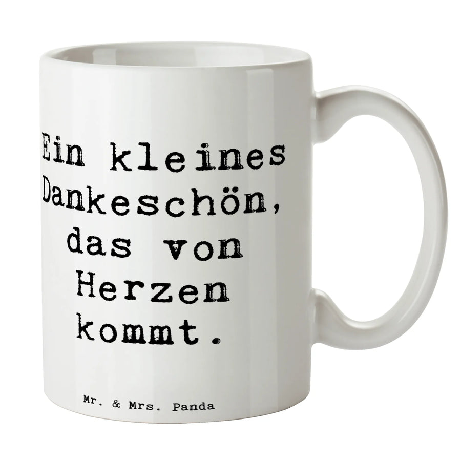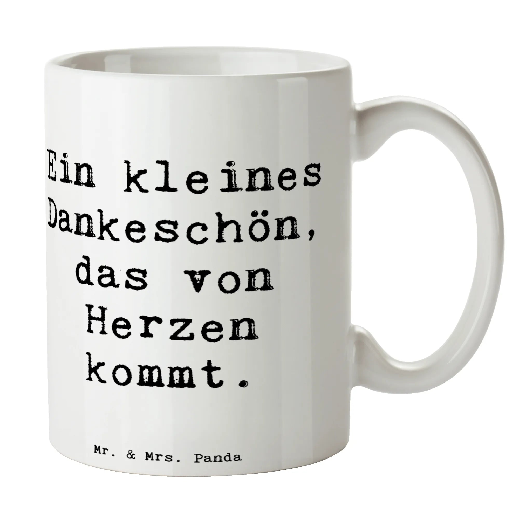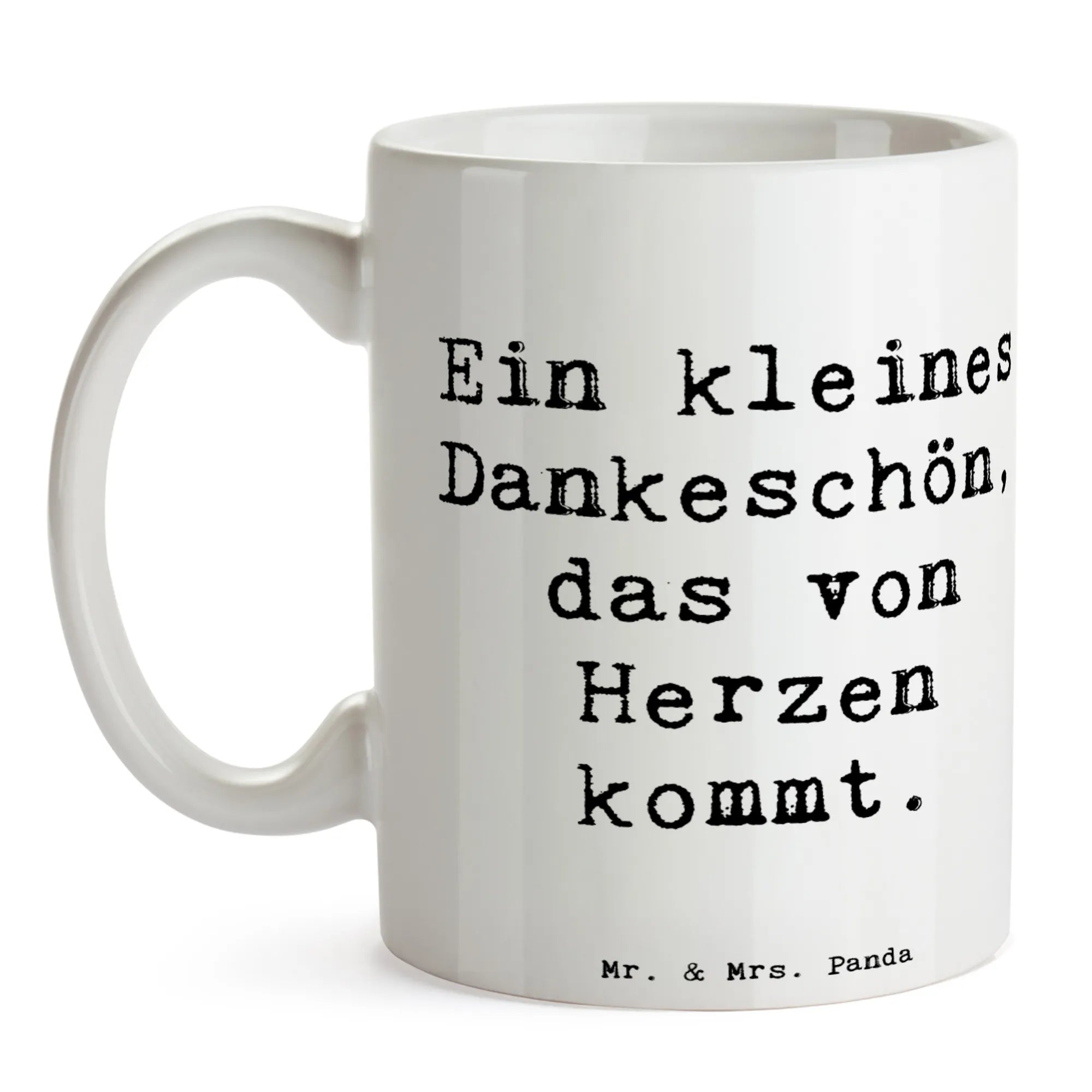 Die wunderschöne Keramiktasse von Mr. & Mrs. Panda ist das ideale Geschenk für jeden Anlass, besonders für Hochzeiten! Mit ihrem bezaubernden Spruch 'Ein kleines Dankeschön, das von Herzen kommt.', wird sie zu etwas ganz Besonderem für Deine Hochzeitsgäste. Diese Kaffeetasse hat eine Füllmenge von 325 ml und ist perfekt für einen belebenden Kaffee oder einen zarten Tee.