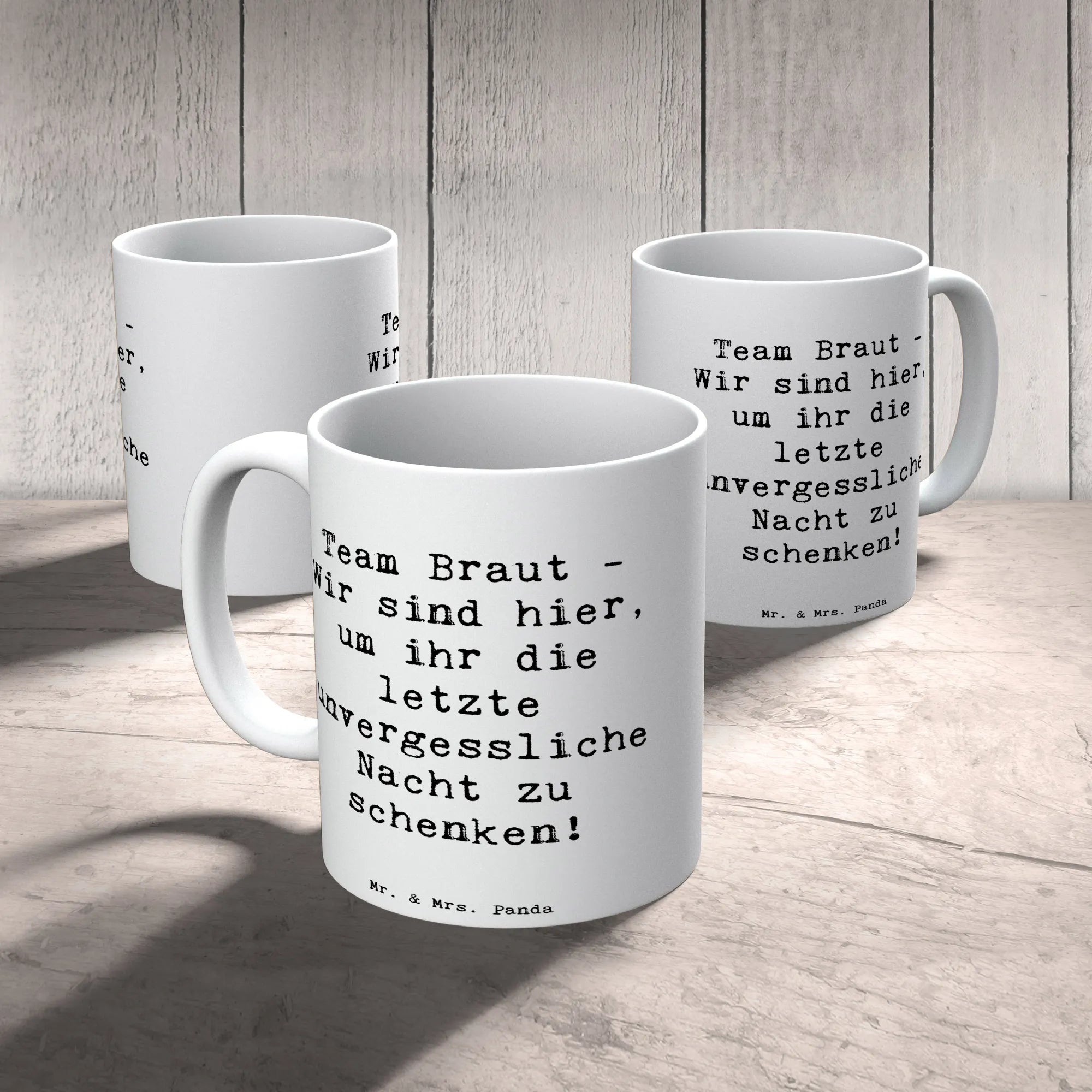 Suchst du nach dem perfekten Geschenk für einen Junggesellinnenabschied? Dann ist die wunderschöne Keramiktasse von Mr. & Mrs. Panda genau das Richtige! Mit ihrem strahlenden Design und dem liebevollen Spruch "Team Braut - Wir sind hier, um ihr die letzte unvergessliche Nacht zu schenken!" wird diese Tasse zum idealen Begleiter für die Braut und ihre Mädels in der letzten Nacht der Freiheit.