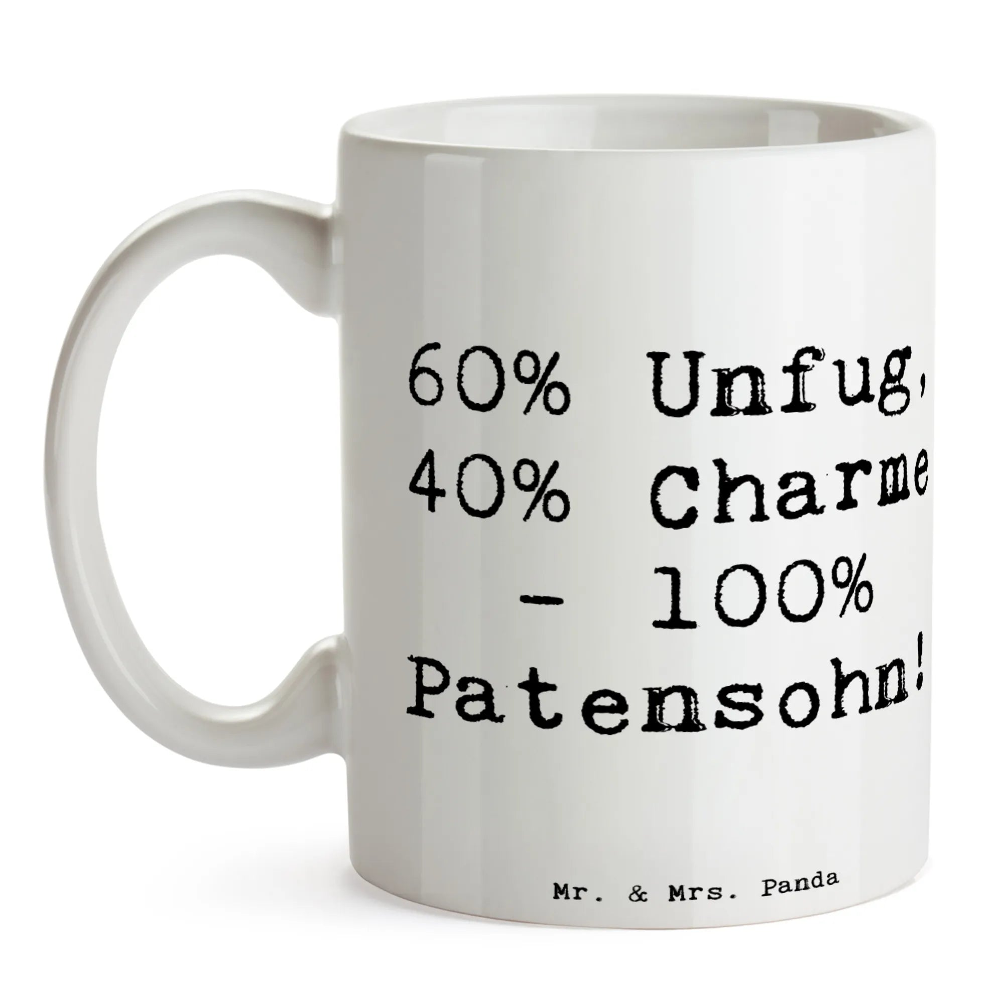60% Unfug und 40% Charme – genau die richtige Mischung, um das Herz eines jeden Patenonkels und jeder Patentante zu erobern. Dein Patensohn bringt Freude, Lachen und manchmal auch ein wenig Chaos in dein Leben. Diese zauberhafte Mischung macht ihn zu einem einzigartigen und unersetzlichen Teil deiner Welt.