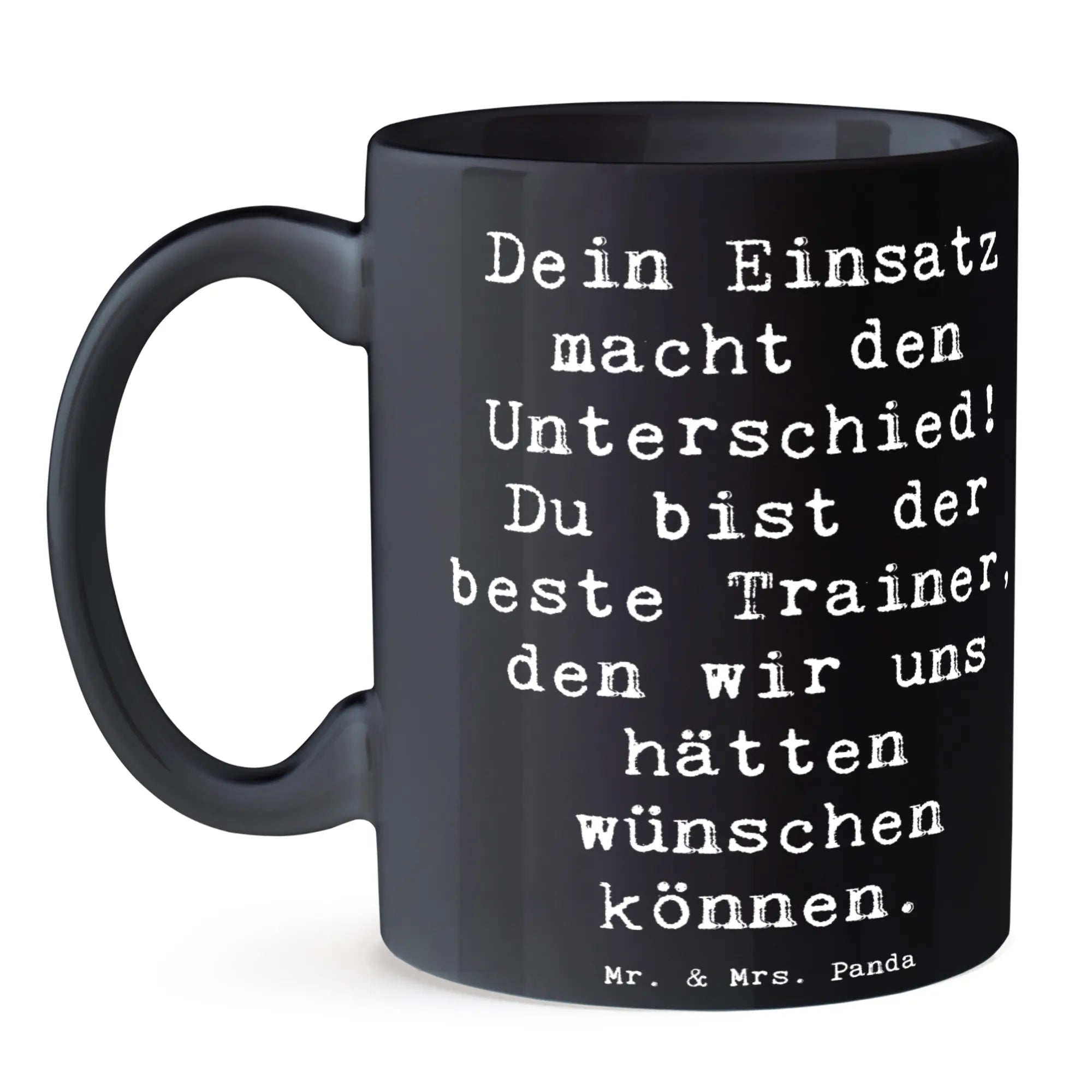 Sie ist ein emotionales Geschenk und gleichzeitig praktisch – ideal als Kaffeetasse, Teetasse oder Bürotasse. Der schwarze Hintergrund mit dem klaren Spruch wirkt elegant und herzlich zugleich. Ob auf der Trainerbank, im Vereinsheim oder am Schreibtisch: diese Tasse erinnert jeden Tag an das Engagement und die Motivation.