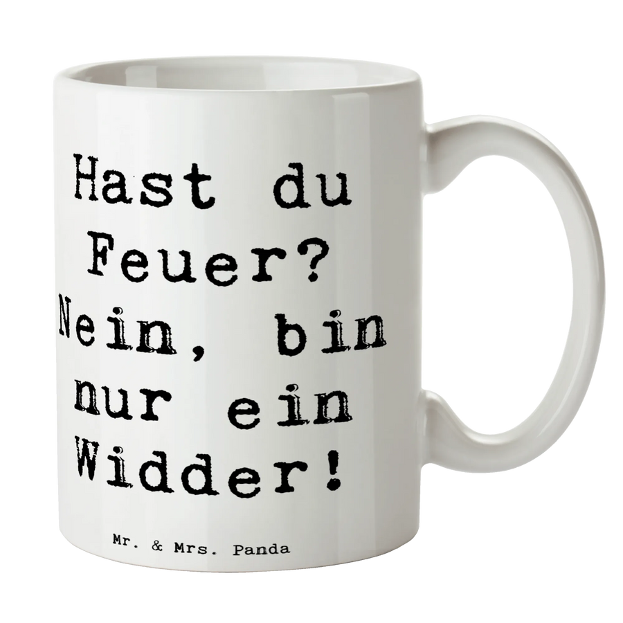 Entdecke die charmante Widder Tasse aus der zauberhaften Sternzeichen-Kollektion von Mr. & Mrs. Panda! Diese wunderschöne, spülmaschinenfeste Keramiktasse ist nicht nur ein praktisches Accessoire für dein Zuhause, sondern auch das perfekte Geschenk für alle Astrologie-Liebhaber. Die Tasse trägt den lustigen Spruch "Hast du Feuer? Nein, bin nur ein Widder!", der garantiert jeden Widder zum Schmunzeln bringt.
