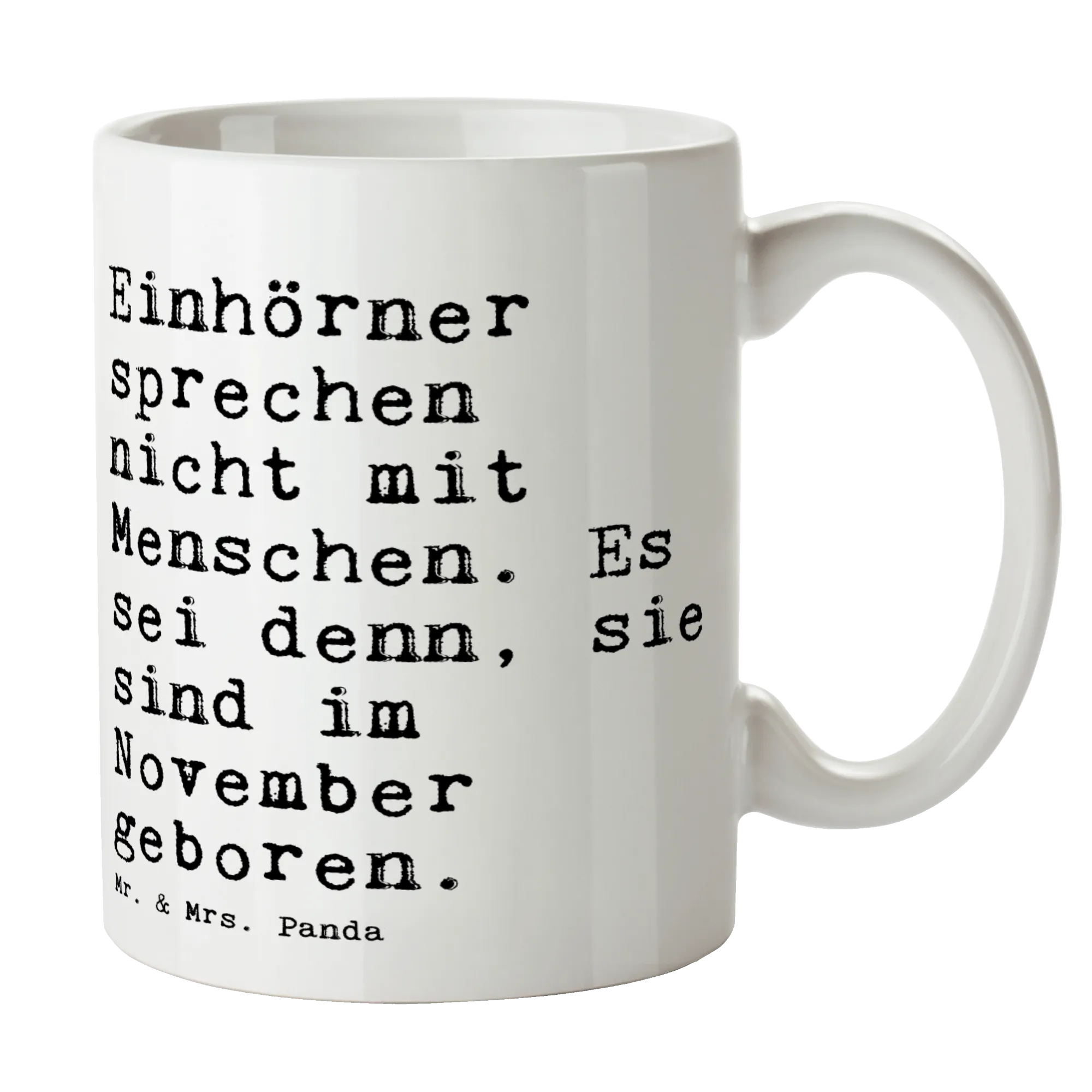 Tasse Sprüche und Zitate Einhörner sprechen nicht mit Menschen. Es sei denn, sie sind im November geboren. - Keramik - Weiß