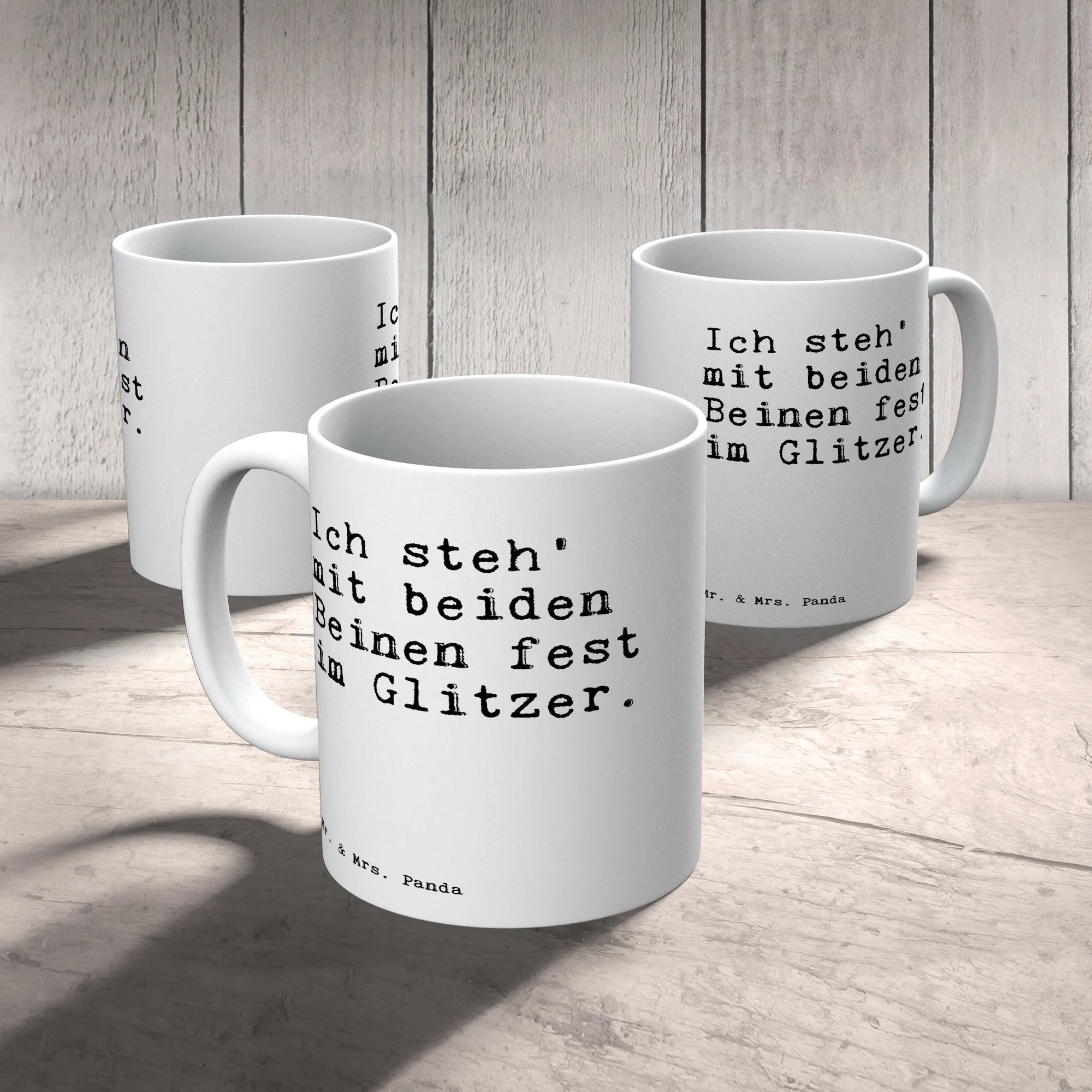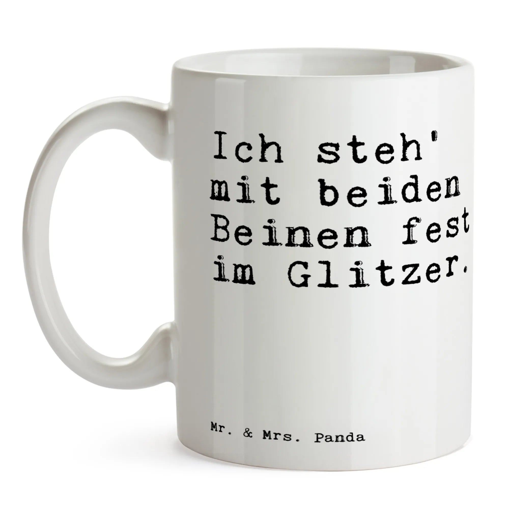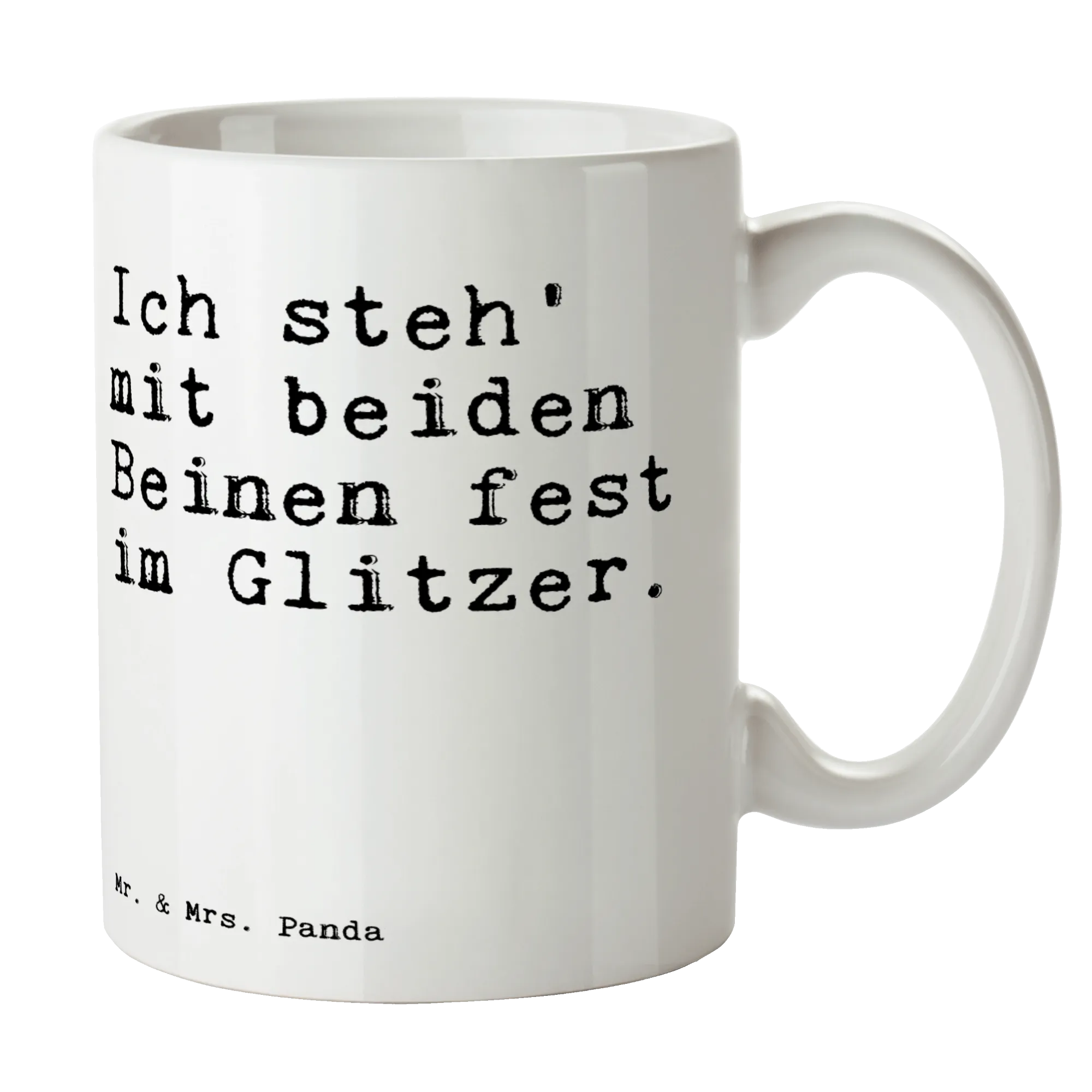 Tasse Sprüche und Zitate Ich steh' mit beiden Beinen fest im Glitzer. - Keramik - Weiß
