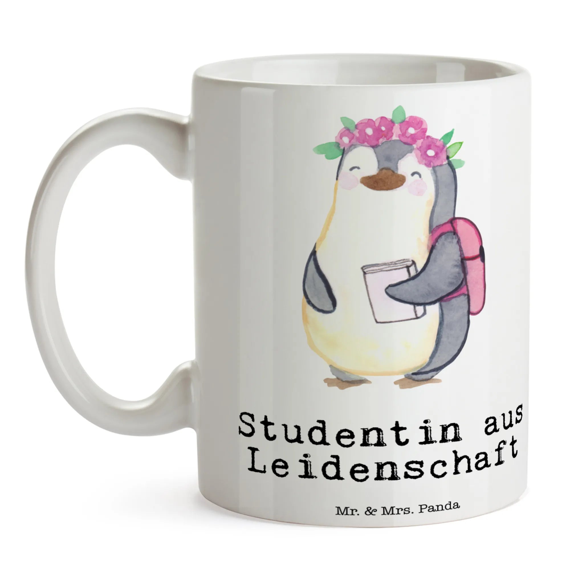Verschenke kreative Momente und mache jemandem eine Freude mit der Tasse "Studentin aus Leidenschaft"! Diese tolle Tasse ist Teil der Berufe Kollektion, in der du viele weitere liebevoll gestaltete Produkte findest, die sich speziell an verschiedene Berufe richten. Jedes Design in dieser Kollektion wurde mit viel Liebe zum Detail von Mrs. Panda kreiert und wird im Alltag begeistert genutzt. Die Tasse ist nicht personalisierbar, aber gerade das macht sie perfekt als universelles Geschenk. Ein echtes Must-Have für jeden Studierenden!