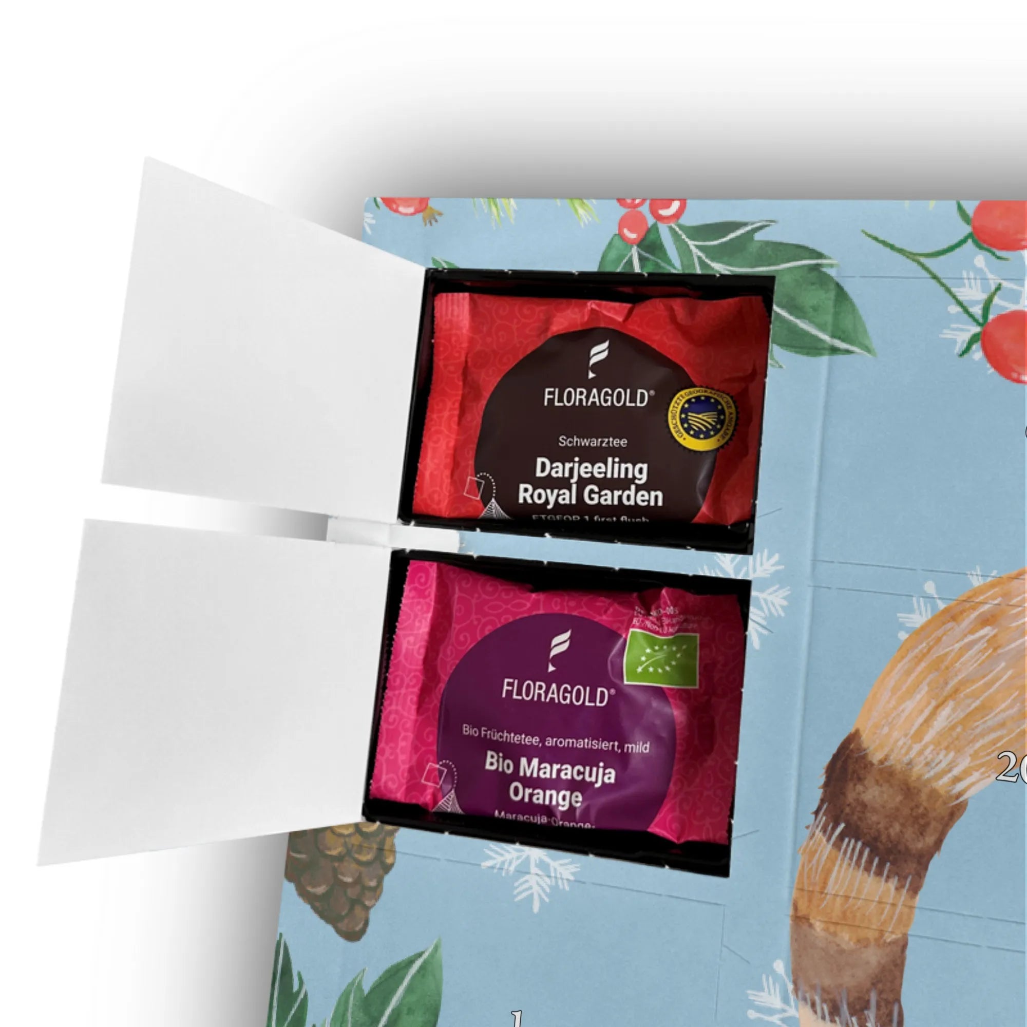 🐼 ADVENTSKALENDER TEE: 24 Einzeln verpackte Tees, brillante Druckqualität.