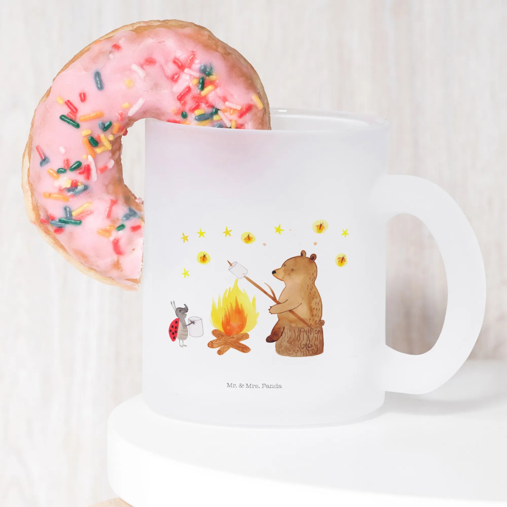 Diese edle und einzigartige Teetasse besteht aus robustem, extra starkem Premiumglas und ist der ideale Begleiter für jede Art von Heißgetränken, ob Tees, Kaffee oder Glühwein. Mit ihrem zauberhaften Motiv, das einen fröhlichen Bären und einen Marienkäfer an einem Lagerfeuer zeigt, sorgt sie für Gemütlichkeit und eine wohlige Atmosphäre. Der Bär sitzt auf einem umgedrehten Baumstumpf und genießt einen lecker gerösteten Marshmallow über den Flammen. Umgeben von einem nächtlichen Himmel und glühenden Sternen lädt diese Tasse dazu ein, das Glück einfach zu genießen.