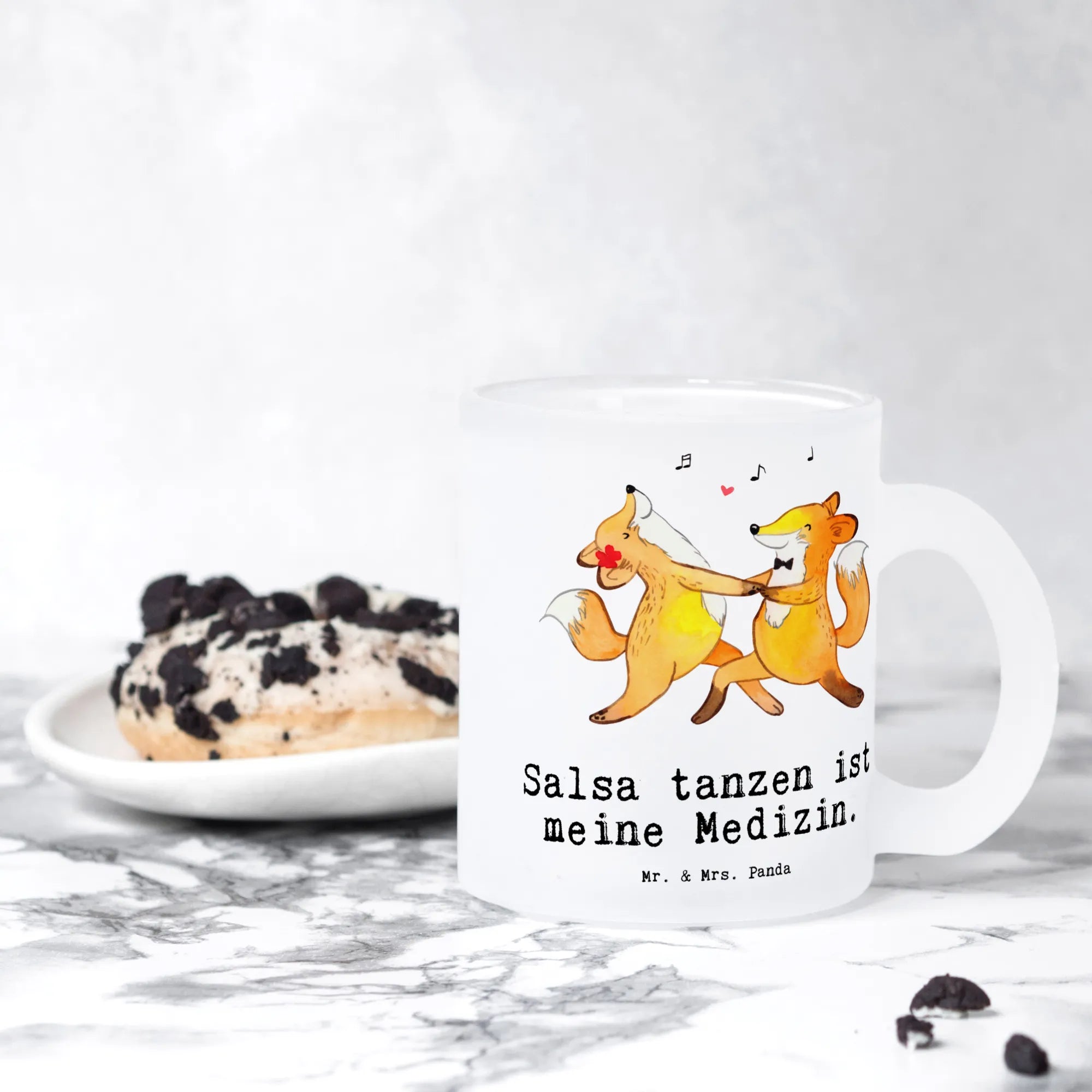 Mit dem charmanten Motiv von zwei Füchsen, die voller Lebensfreude Salsa tanzen, wird jede Tasse Tee zu einem besonderen Erlebnis. Der humorvolle Spruch "Salsa tanzen ist meine Medizin" auf der Tasse spricht nicht nur Tänzer:innen an, sondern auch alle, die das Tanzen als ein gesundes Ventil erleben. Sie ist ideal für jede Art von Heißgetränk – vom klassischen Tee bis hin zu einem belebenden Kaffee oder sogar einem wohlschmeckenden Glühwein in der kälteren Jahreszeit.