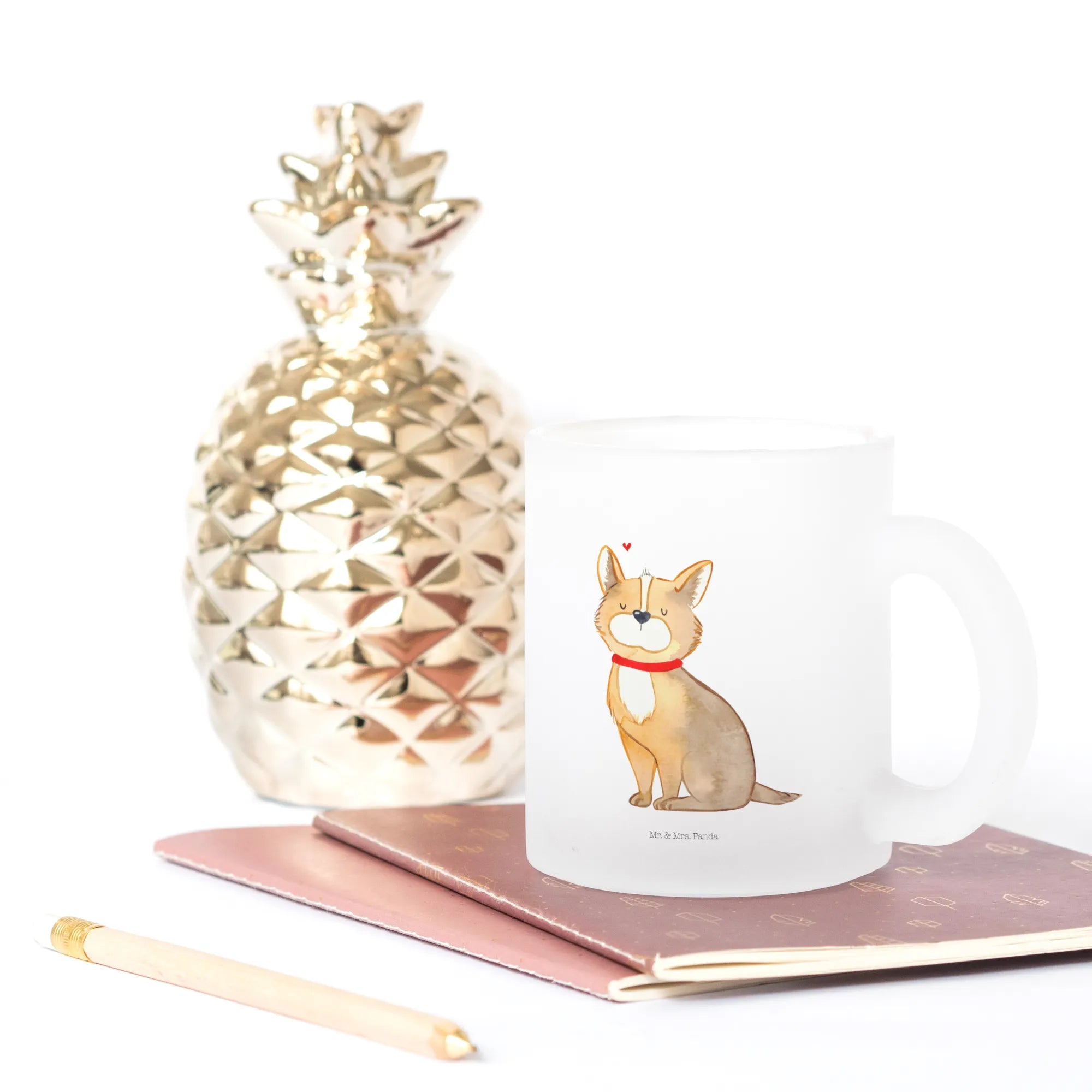 Die Teetasse "Hundeglück" aus der Hunde Kollektion von Mr. & Mrs. Panda ist das perfekte Geschenk für alle Hundeliebhaber und Hundebesitzer. Mit ihrem niedlichen Motiv eines fröhlichen Hundes mit rotem Halsband bringt sie jeden Teeliebhaber zum Schmunzeln. Diese exklusive Teetasse aus robustem Premiumglas ist besonders vielseitig und eignet sich für warmen Tee, duftenden Kaffee oder sogar ein Glas Glühwein.