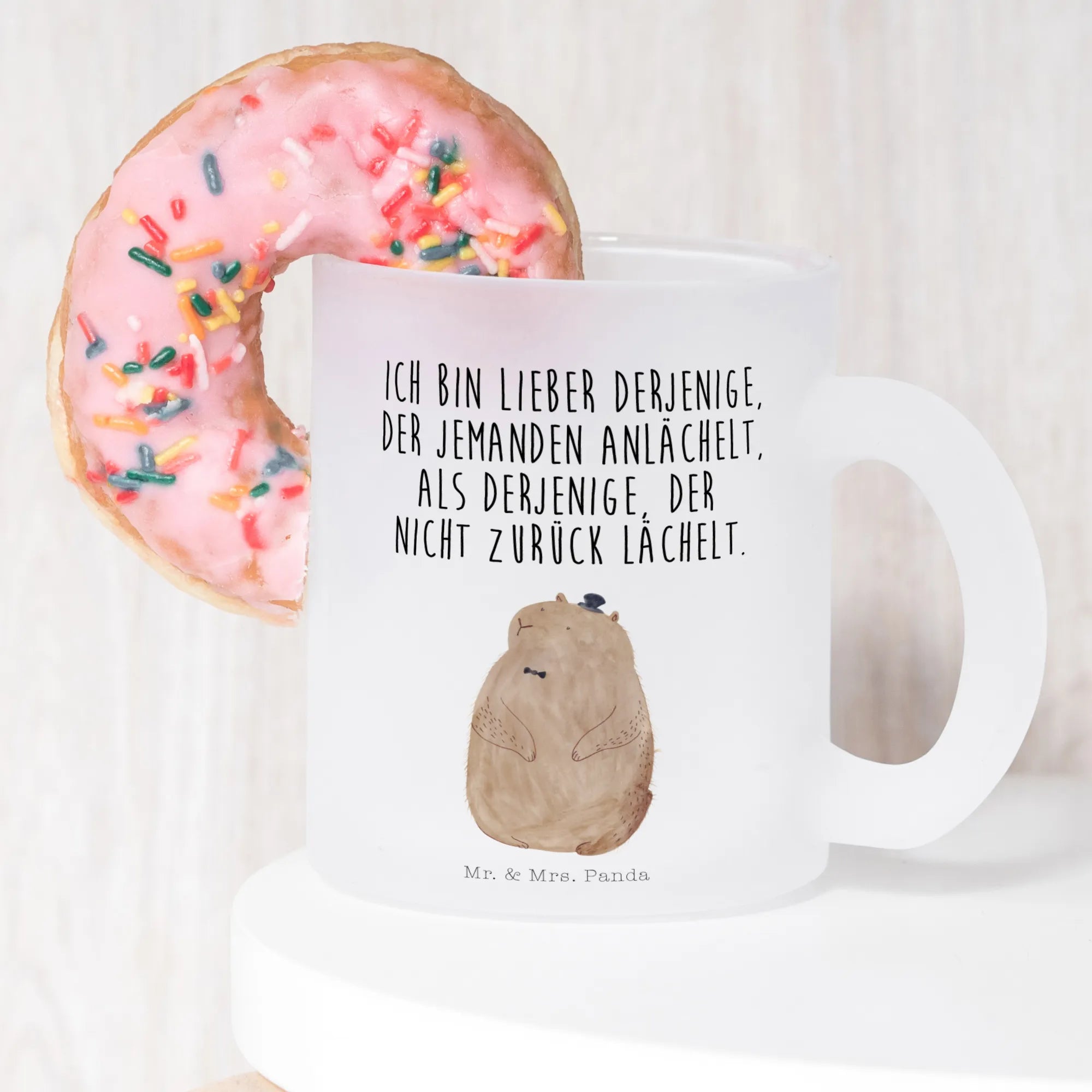 Die Teetasse von Mr. & Mrs. Panda ist nicht nur funktional, sondern auch ein echter Hingucker. Mit ihren 95 mm Höhe und 80 mm Durchmesser, wiegt sie 390 g und liegt perfekt in der Hand. Das robuste und extra starke Premiumglas sorgt dafür, dass deine liebsten heißen Getränke wie Tee, Kaffee oder Glühwein stilvoll serviert werden. Als besonderes Highlight betont die elegante matte Oberfläche die niedlichen Motive und Sprüche, die beim Teetrinken ein Lächeln ins Gesicht zaubern. Der kratzfeste und hitzebeständige Aufdruck sorgt dafür, dass du lange Freude an dieser besonderen Tasse hast. Ein sanftes Handwaschen wird empfohlen, um die edle Satinierung und die wundervollen Motive zu schützen. Ein tolles Geschenk für alle Teeliebhaber!